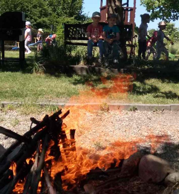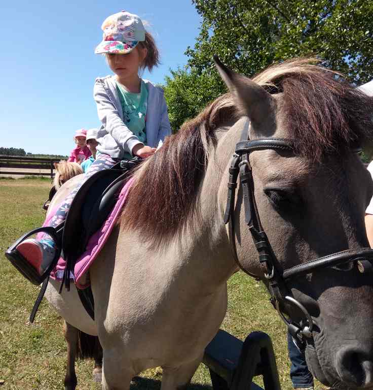 Wszystkie dzieci chętnie spróbowały jazdy konnej na kucykach. Dużą atrakcją na zakończenie pobytu było ognisko.