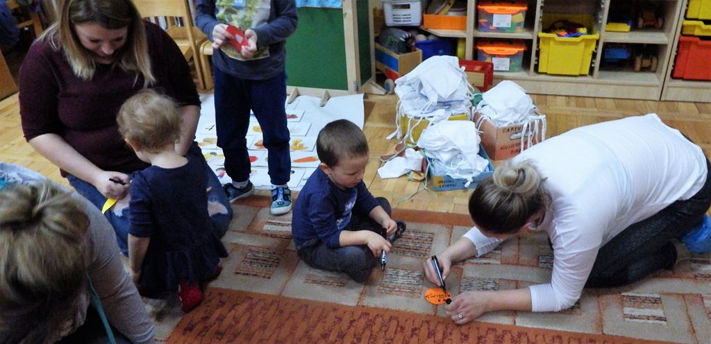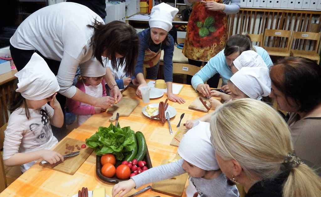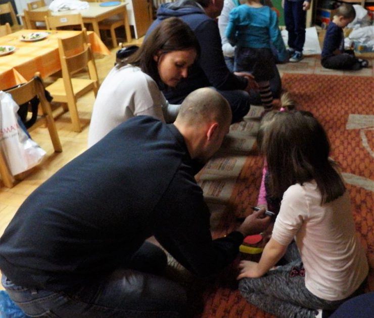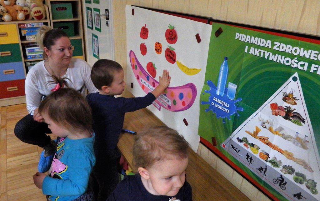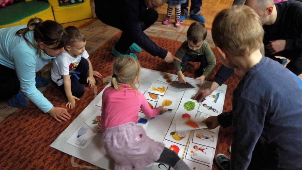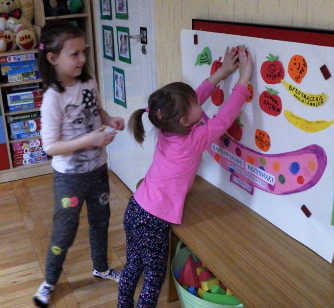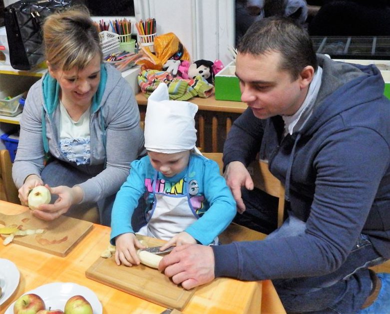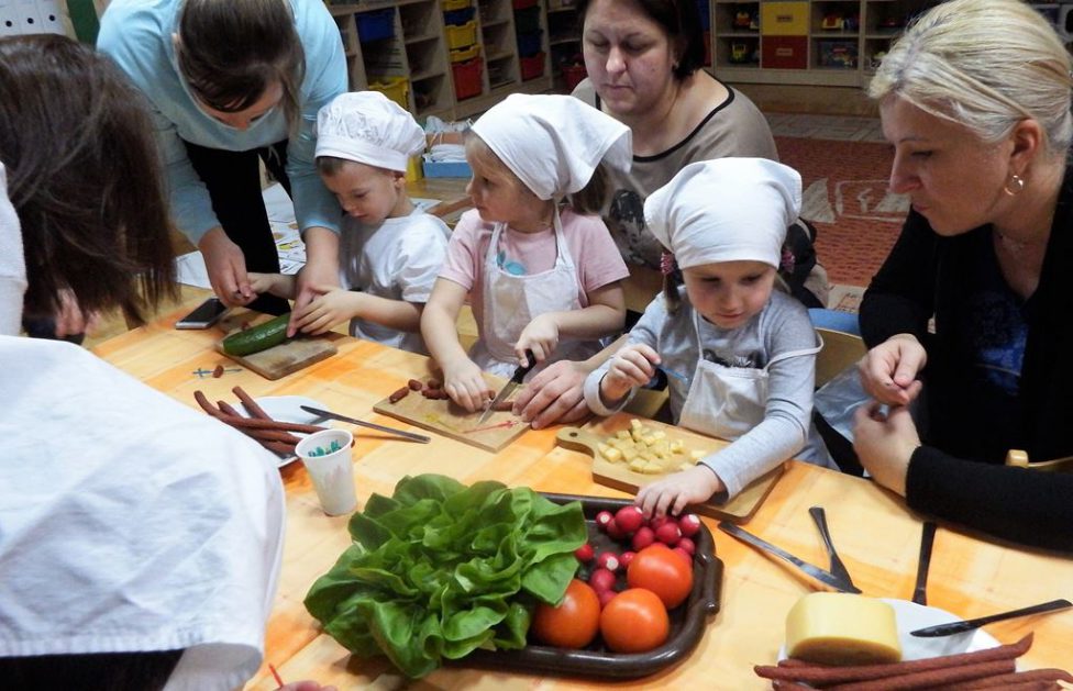 W grupie 3-4 latków P. Hani odbyło się spotkanie integracyjne, na którym w roli głównej były zdrowe produkty, z których dzieci wraz z rodzicami przygotowywały kolorowe szaszłyki. Żeby zachęcić dzieci do jedzenia warzyw, owoców najlepiej dać im możliwość działania w kuchni, więc w przedszkolnej sali dzieci ochoczo zabrały się do pracy. Najwięcej radości podczas robienia szaszłyków sprawiło dzieciom nadziewanie kolorowych kawałeczków na wykałaczki. Konsumowały z ciekawością jakie smaki połączyły na patyczkach.
