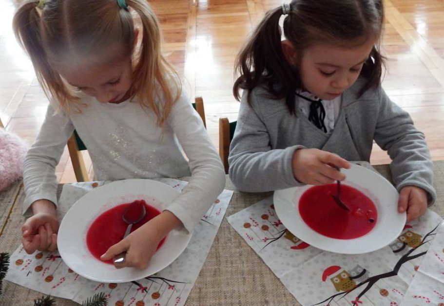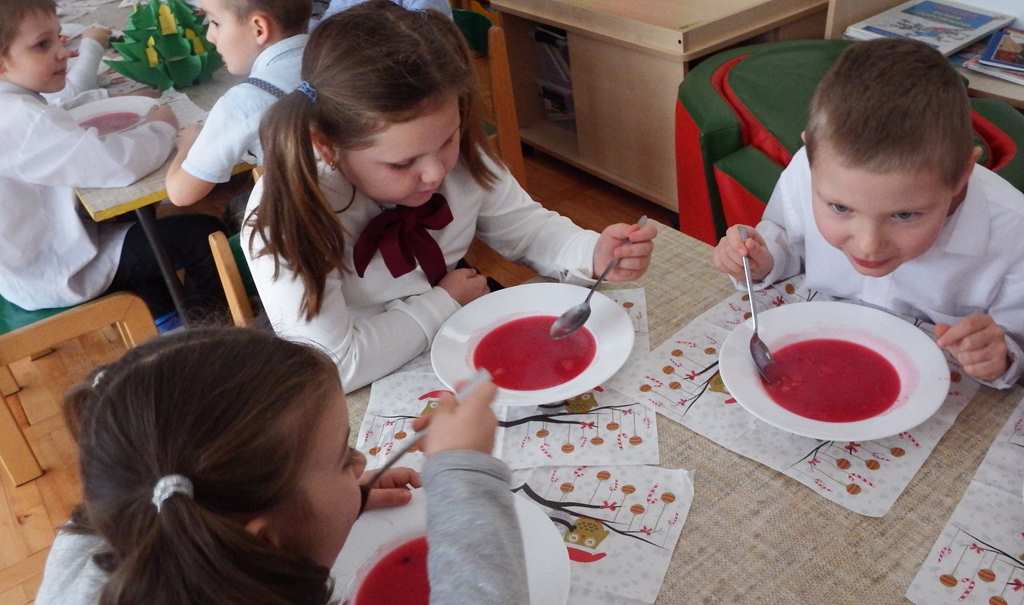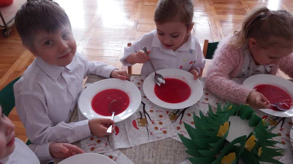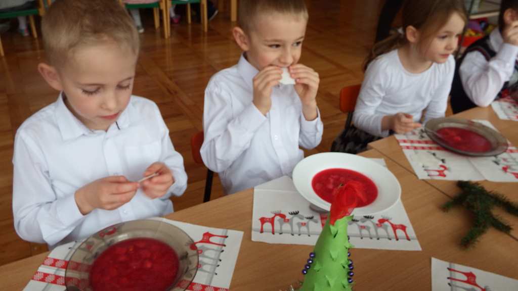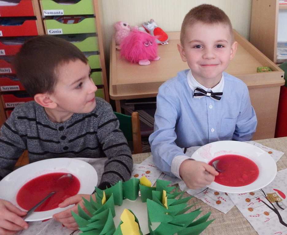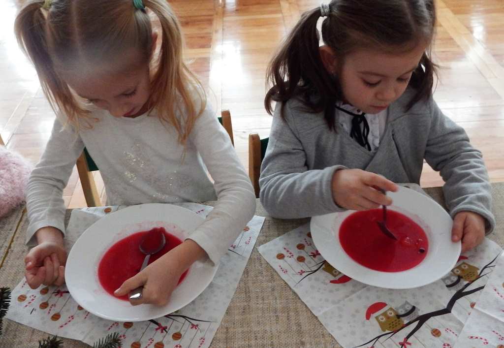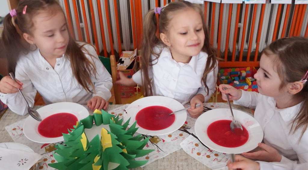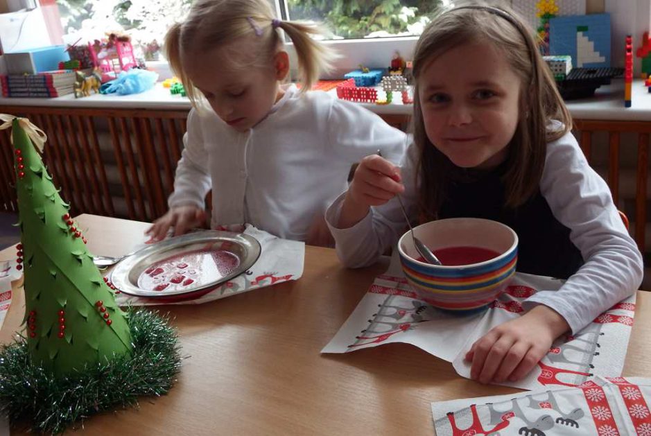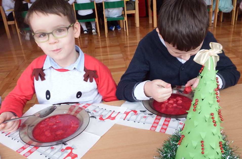 Grudzień niezmiennie kojarzy się ze świętami. Co roku o tej porze staramy się stworzyć magiczną atmosferę bliskości i szczęścia. Każdy z utęsknieniem czekał na ten magiczny czas, bo wtedy świąteczny obiad w przedszkolu łączy nas, a ciepło rodzinnej atmosfery otacza wszystkich. W święta każdy sobie szczerze uśmiech śle i życzy tego co najlepsze.