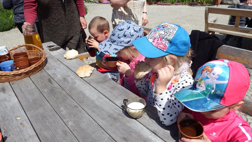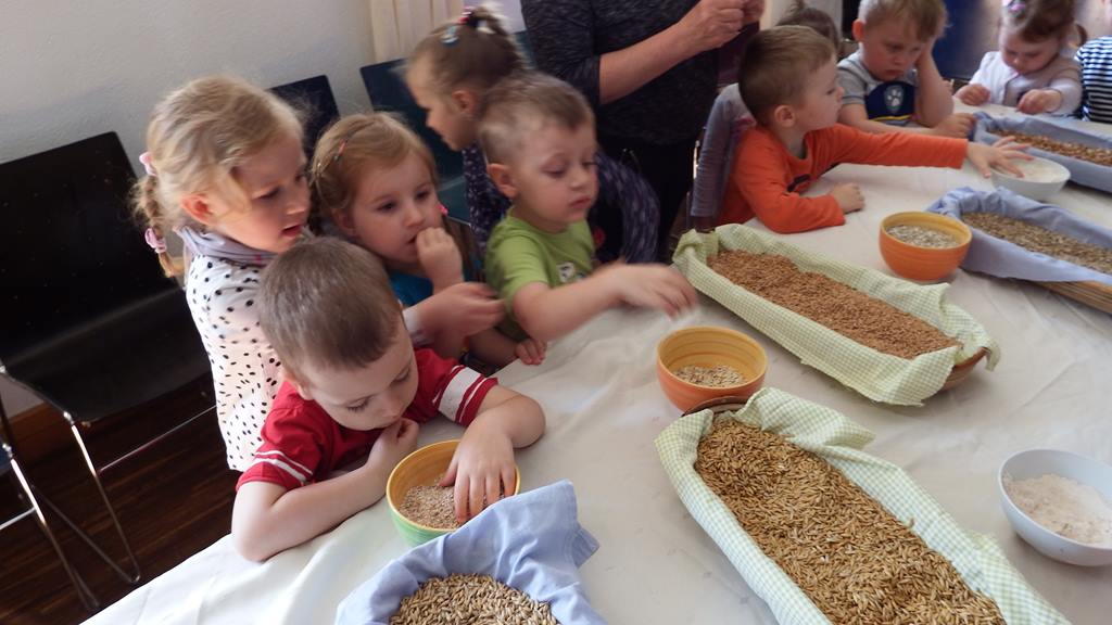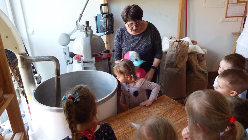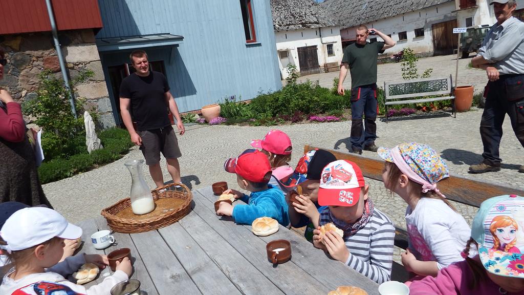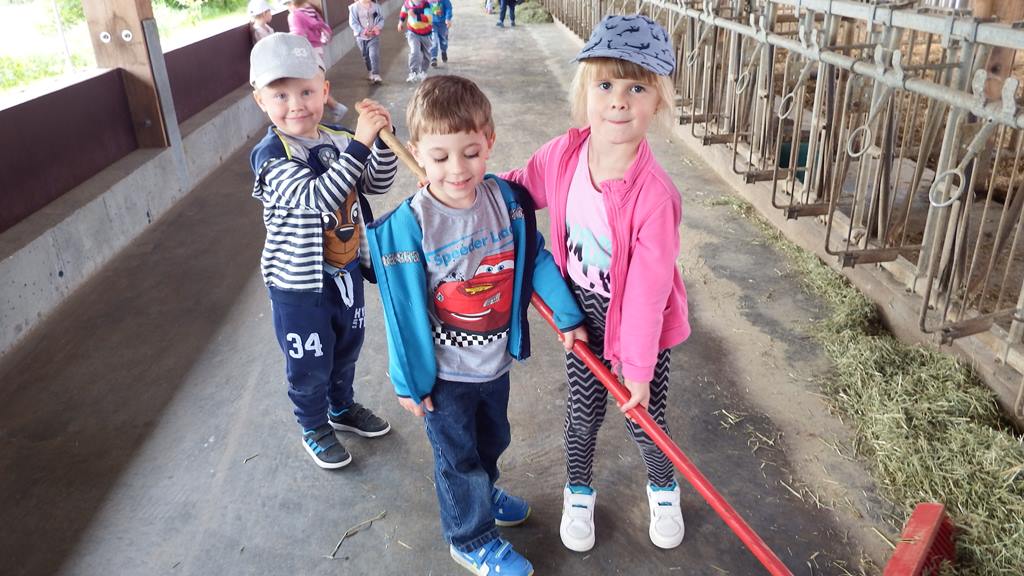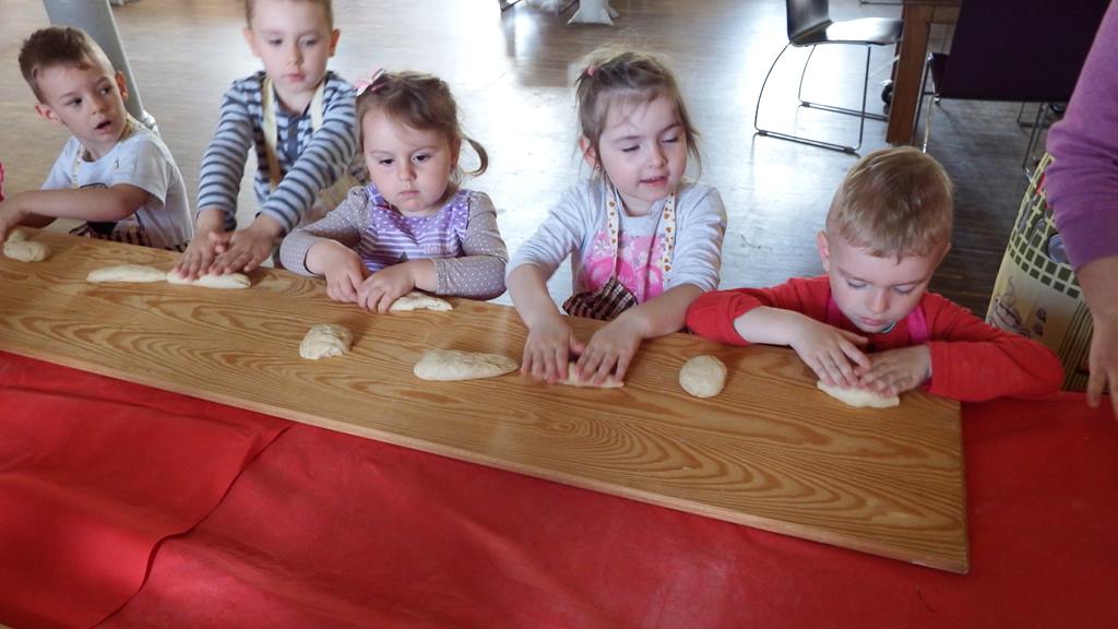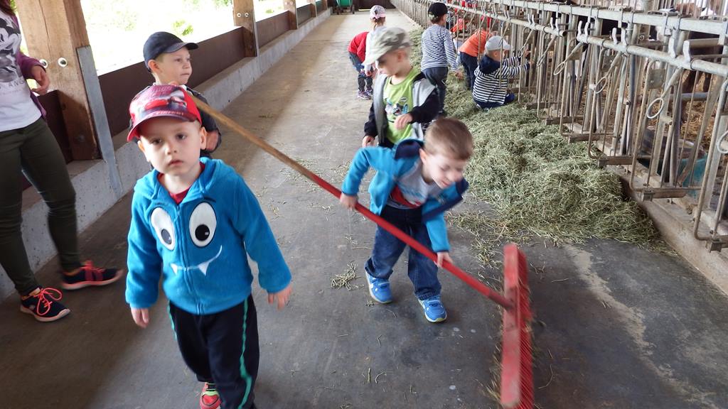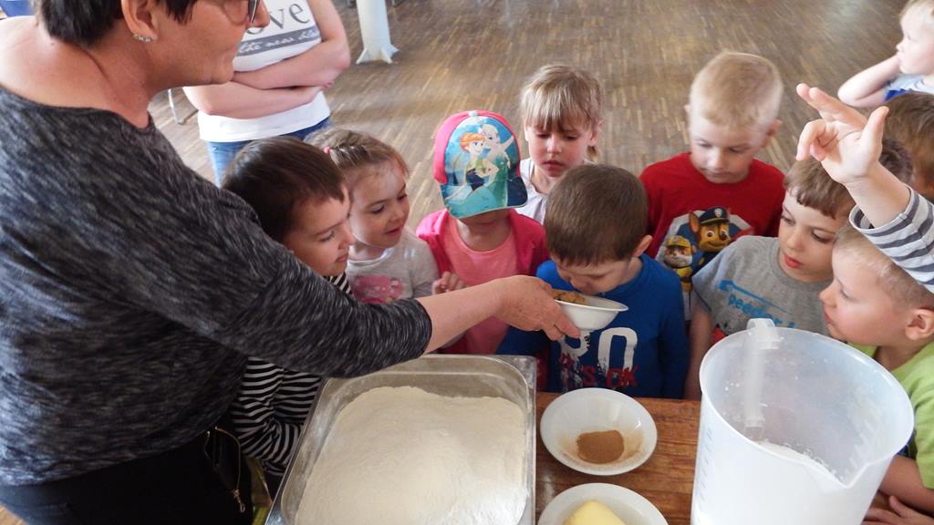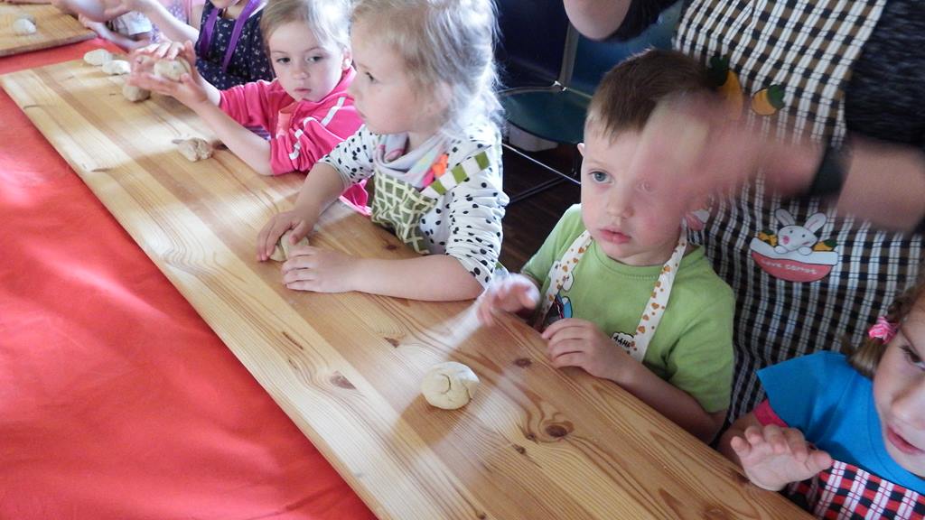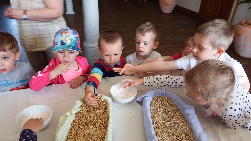 Grupa P. Hani wybrała się na wycieczkę do Juchowa, gdzie odwiedziła gospodarstwo ekologiczne. Dzieci na miejscu poznały kolejne etapy wypieku chleba, rodzaje ziaren, samodzielnie wyrabiały i formowały swoje pierwsze bułeczki. W oczekiwaniu na wypieki dzieci zwiedzały oborę i podziwiały jej mieszkańców – krowy i małe cielaczki, próbowały nakarmić krówki i pomóc przy codziennych czynnościach porządkowych. Po wyczerpującej pracy dzieci wróciły, aby na powietrzu skosztować własnych wypieków popijając pysznym mleczkiem.