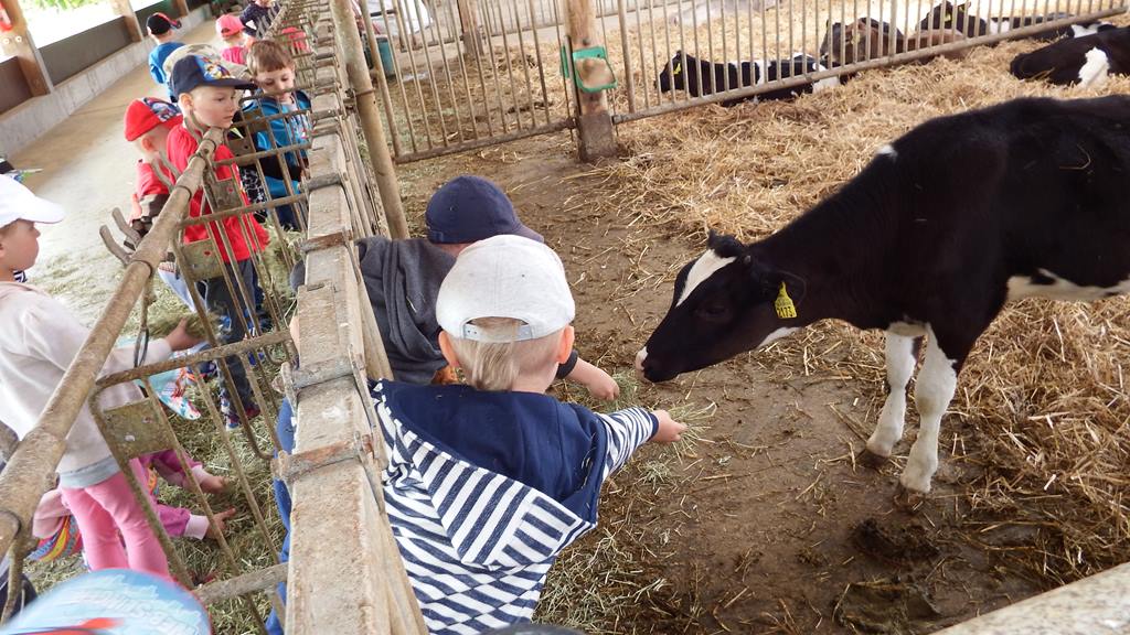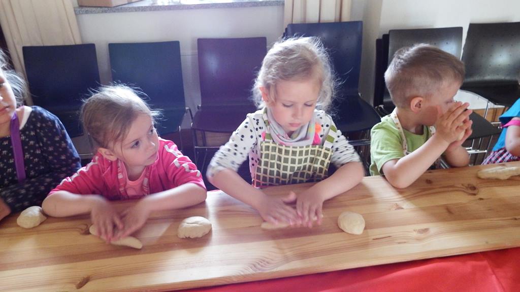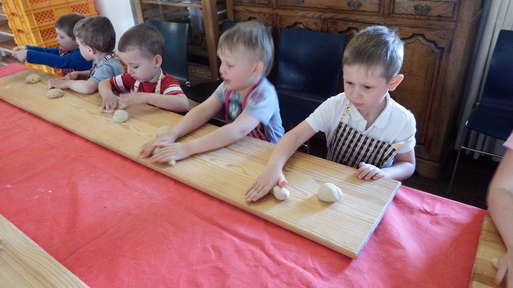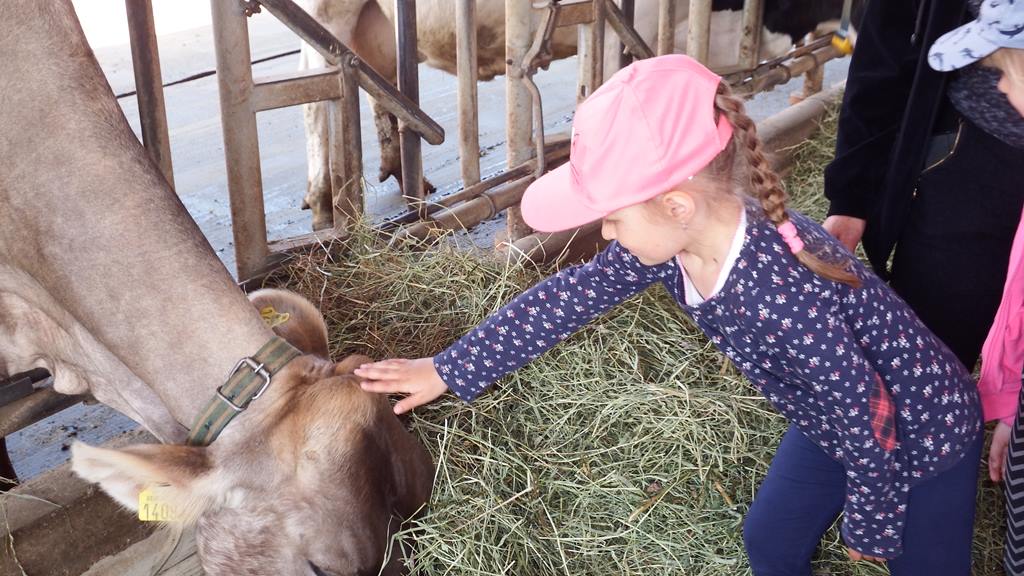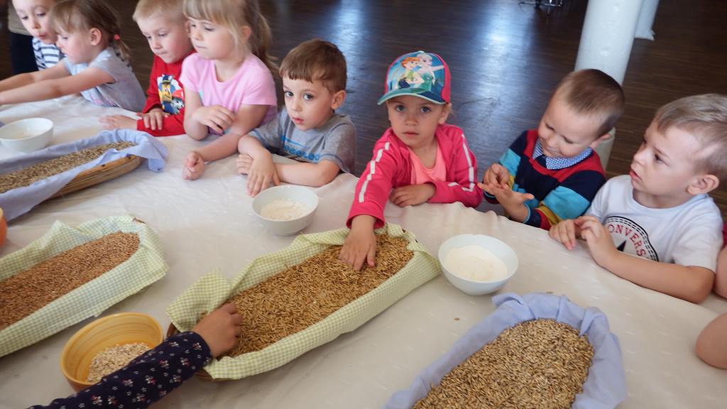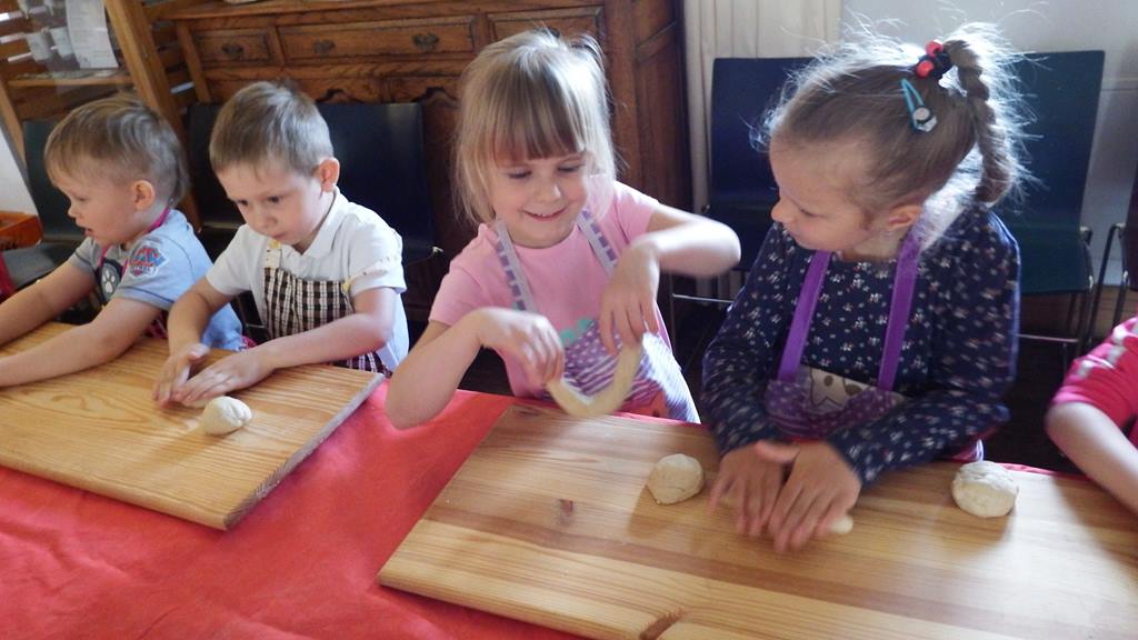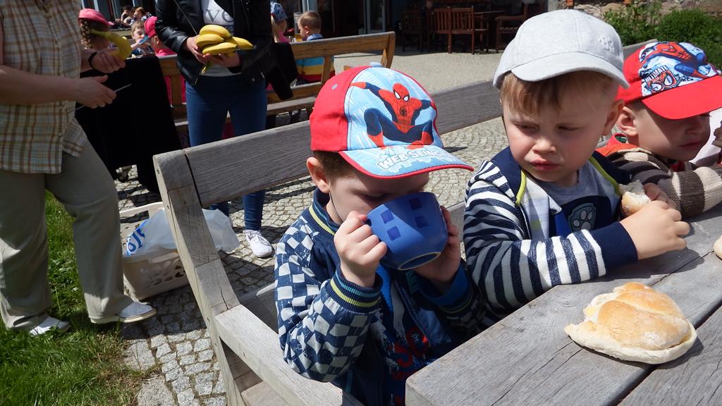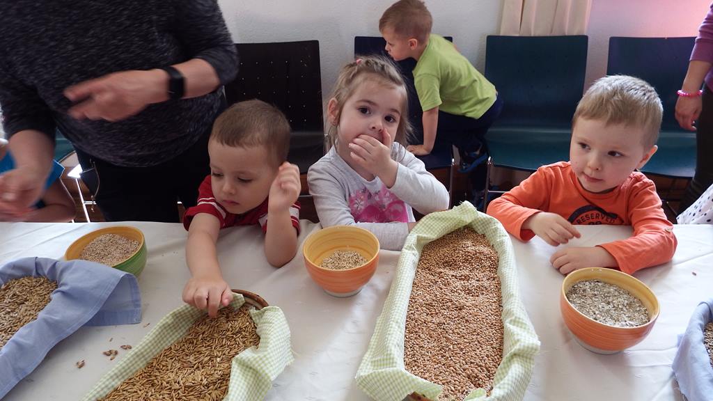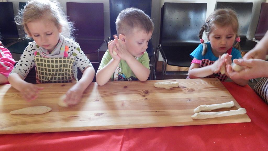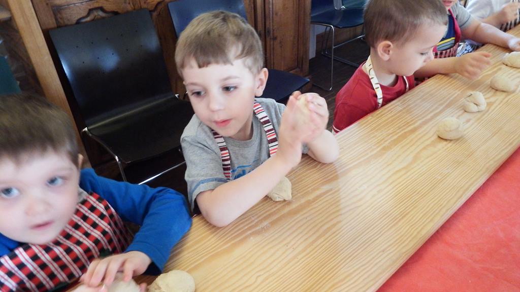 Grupa P. Hani wybrała się na wycieczkę do Juchowa, gdzie odwiedziła gospodarstwo ekologiczne. Dzieci na miejscu poznały kolejne etapy wypieku chleba, rodzaje ziaren, samodzielnie wyrabiały i formowały swoje pierwsze bułeczki. W oczekiwaniu na wypieki dzieci zwiedzały oborę i podziwiały jej mieszkańców – krowy i małe cielaczki, próbowały nakarmić krówki i pomóc przy codziennych czynnościach porządkowych. Po wyczerpującej pracy dzieci wróciły, aby na powietrzu skosztować własnych wypieków popijając pysznym mleczkiem.