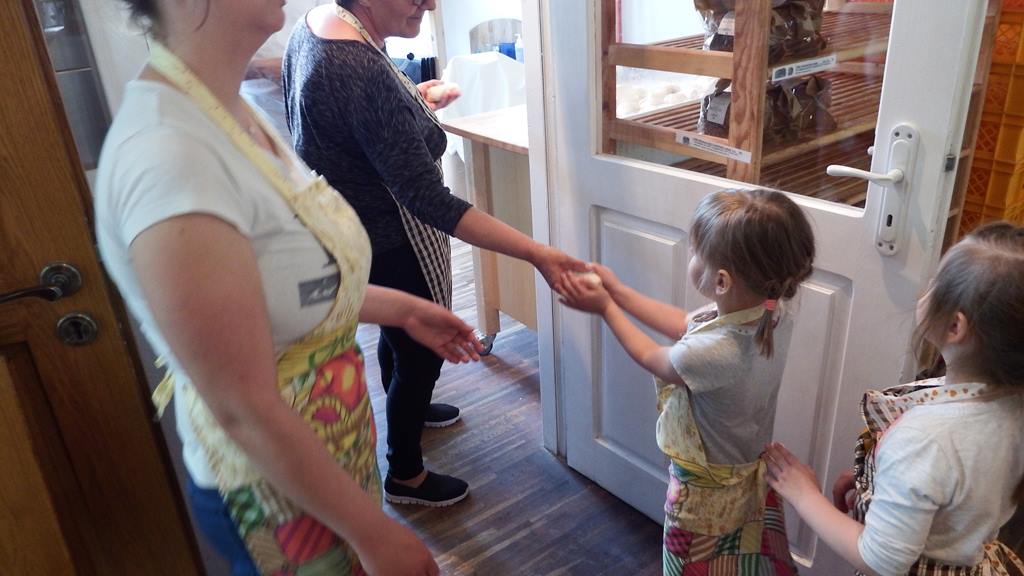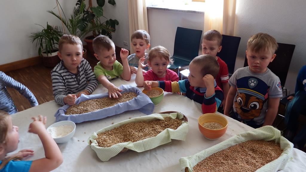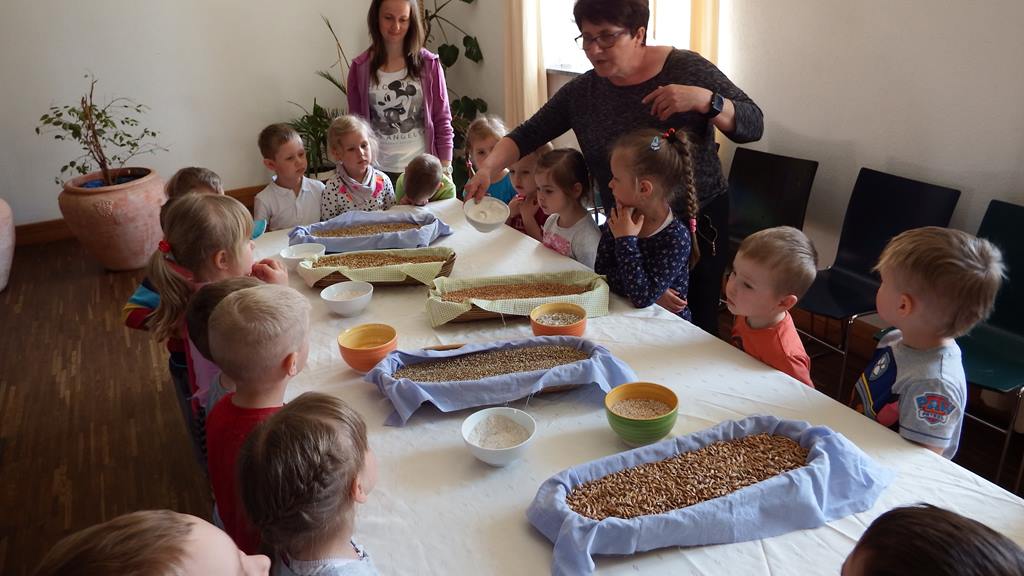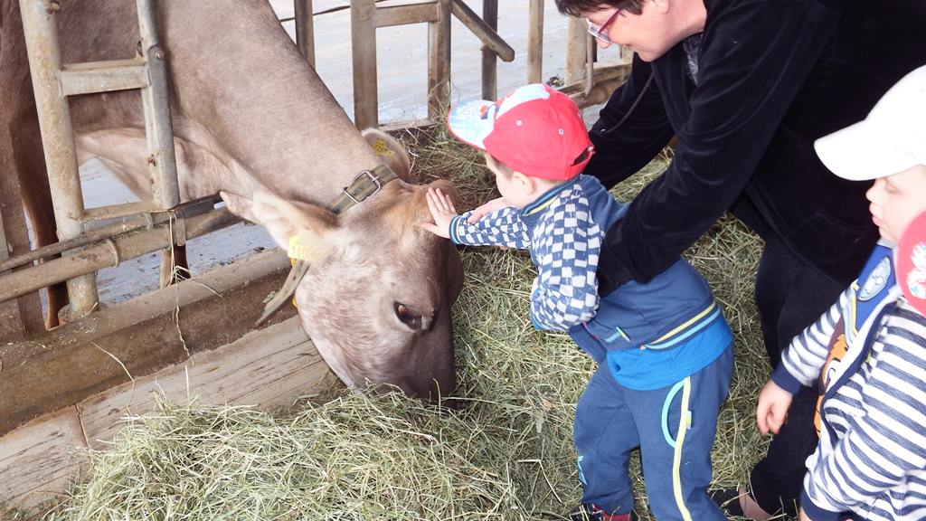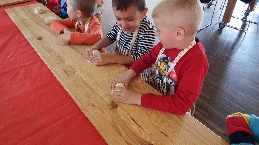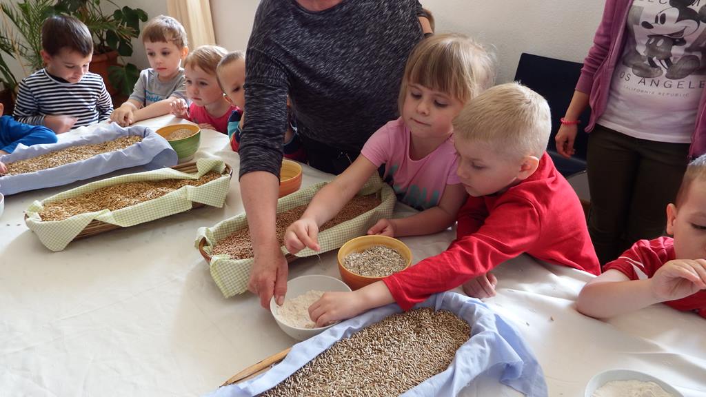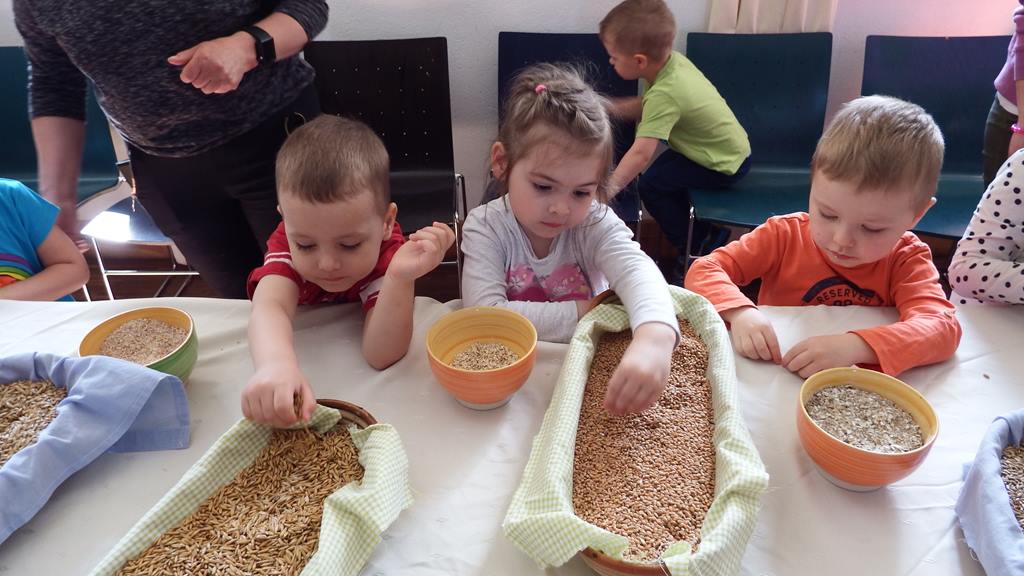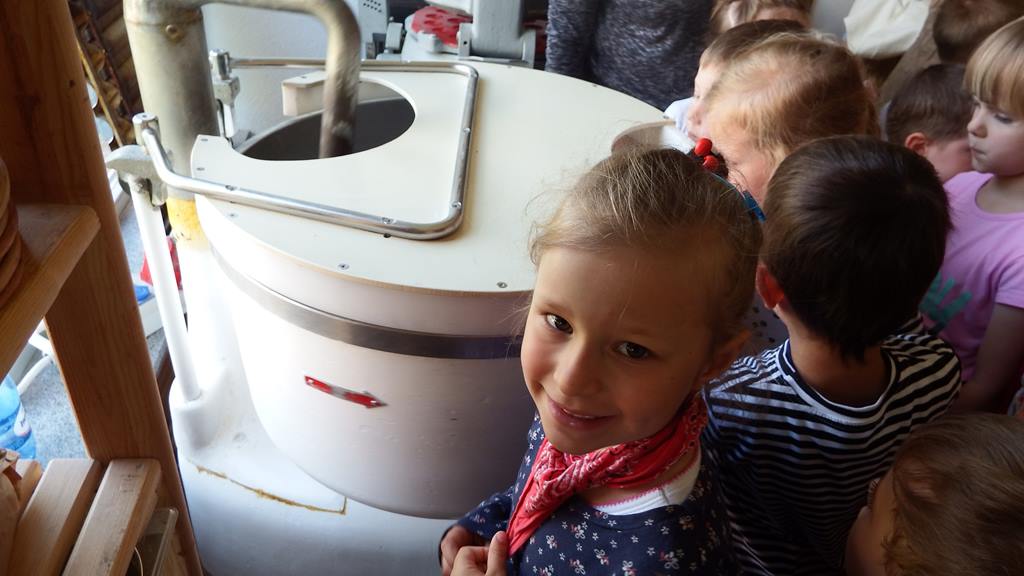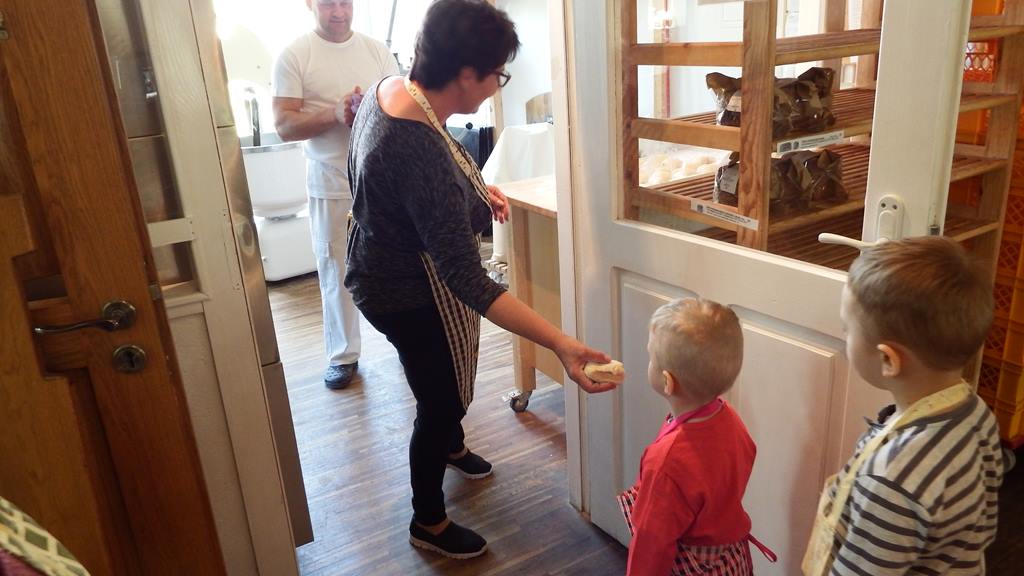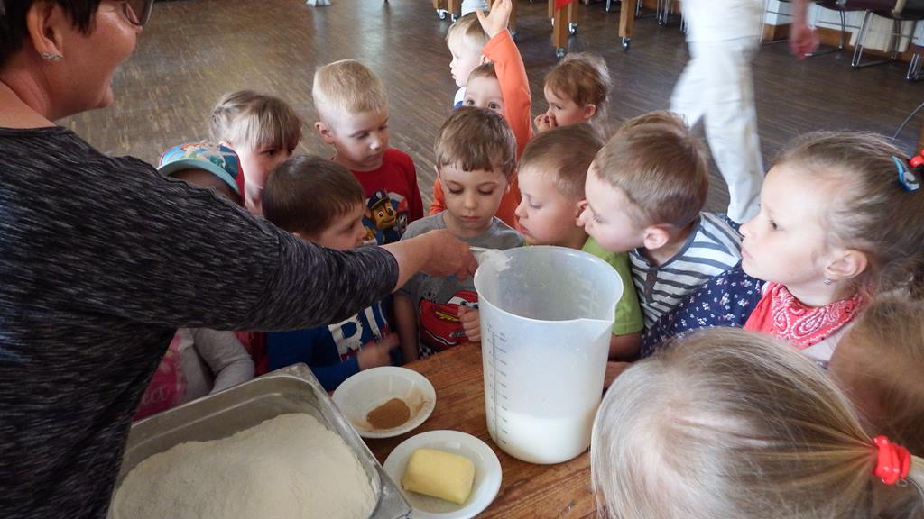 Grupa P. Hani wybrała się na wycieczkę do Juchowa, gdzie odwiedziła gospodarstwo ekologiczne. Dzieci na miejscu poznały kolejne etapy wypieku chleba, rodzaje ziaren, samodzielnie wyrabiały i formowały swoje pierwsze bułeczki. W oczekiwaniu na wypieki dzieci zwiedzały oborę i podziwiały jej mieszkańców – krowy i małe cielaczki, próbowały nakarmić krówki i pomóc przy codziennych czynnościach porządkowych. Po wyczerpującej pracy dzieci wróciły, aby na powietrzu skosztować własnych wypieków popijając pysznym mleczkiem.