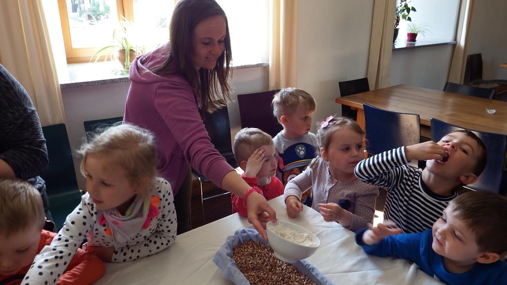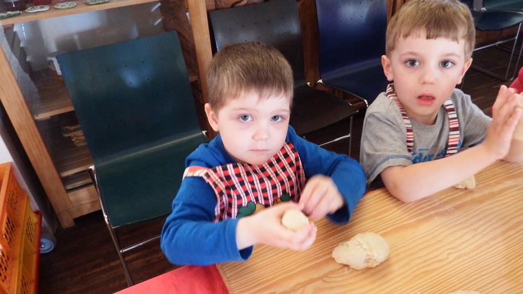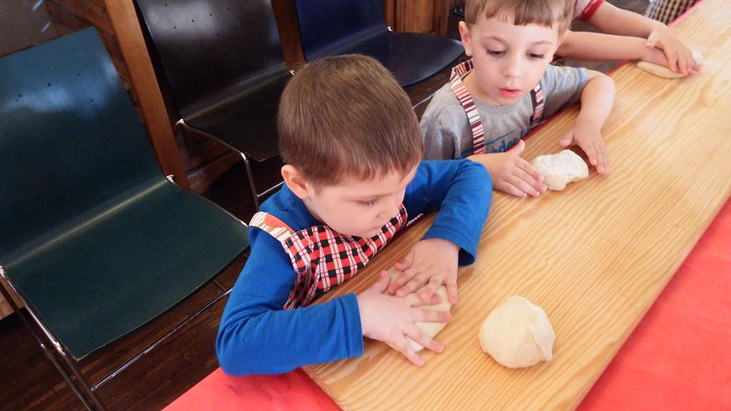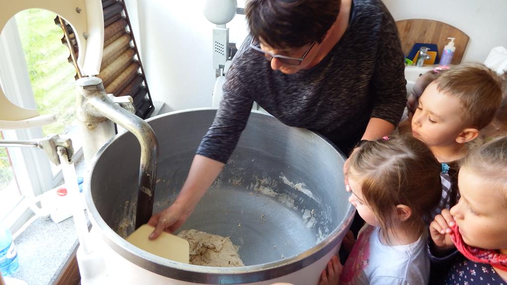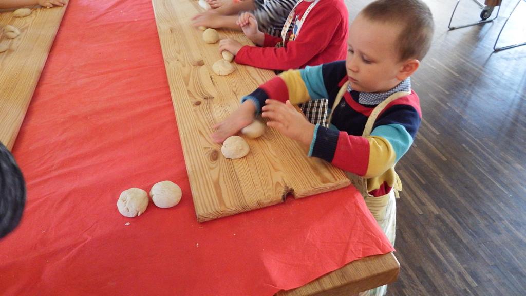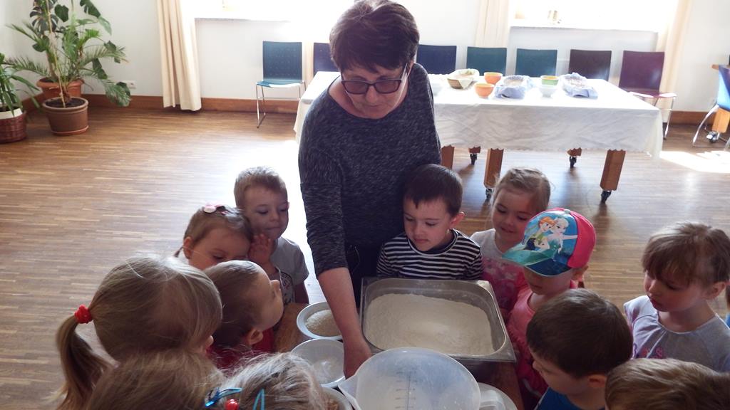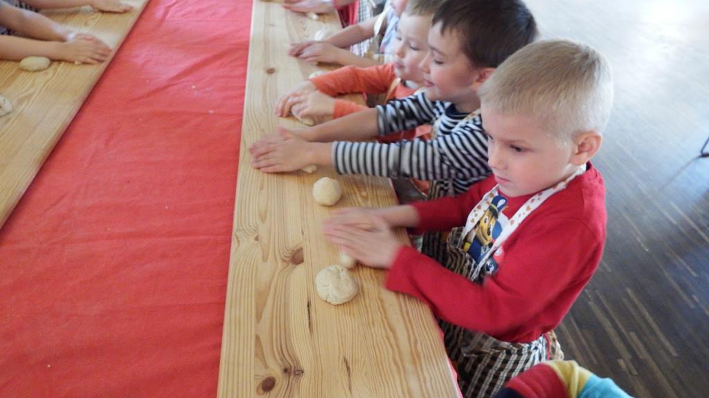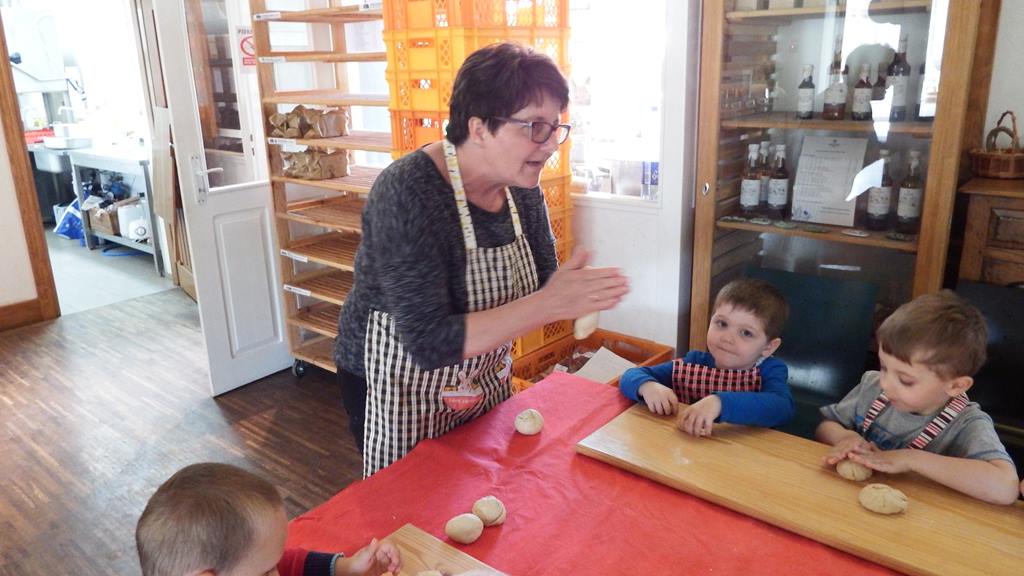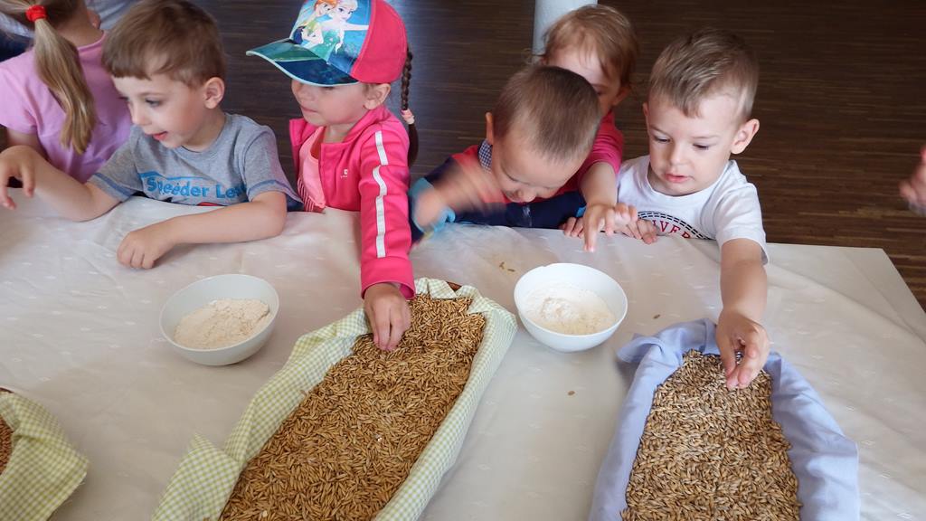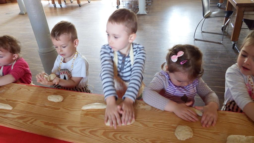 Grupa P. Hani wybrała się na wycieczkę do Juchowa, gdzie odwiedziła gospodarstwo ekologiczne. Dzieci na miejscu poznały kolejne etapy wypieku chleba, rodzaje ziaren, samodzielnie wyrabiały i formowały swoje pierwsze bułeczki. W oczekiwaniu na wypieki dzieci zwiedzały oborę i podziwiały jej mieszkańców – krowy i małe cielaczki, próbowały nakarmić krówki i pomóc przy codziennych czynnościach porządkowych. Po wyczerpującej pracy dzieci wróciły, aby na powietrzu skosztować własnych wypieków popijając pysznym mleczkiem.