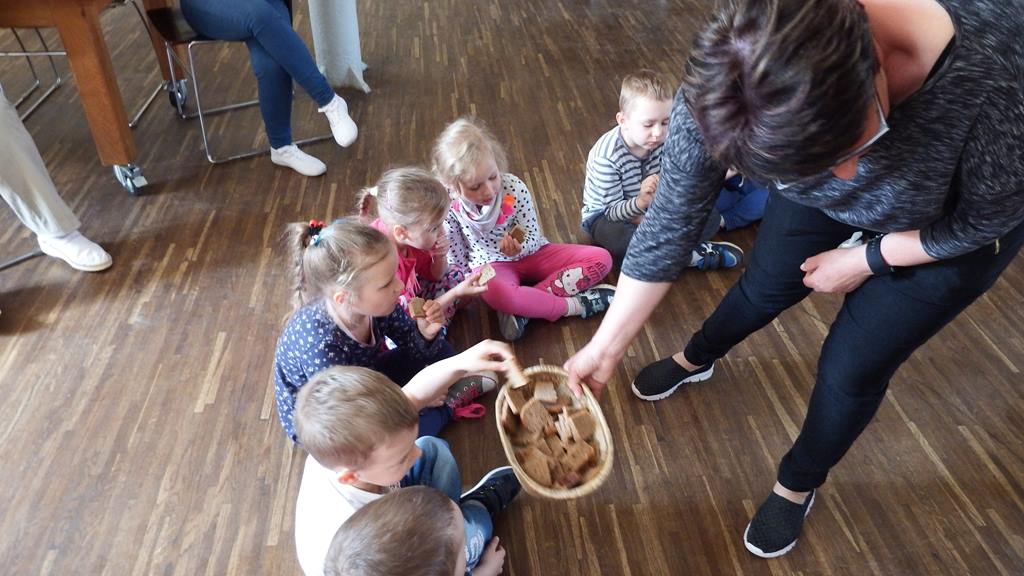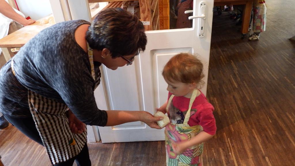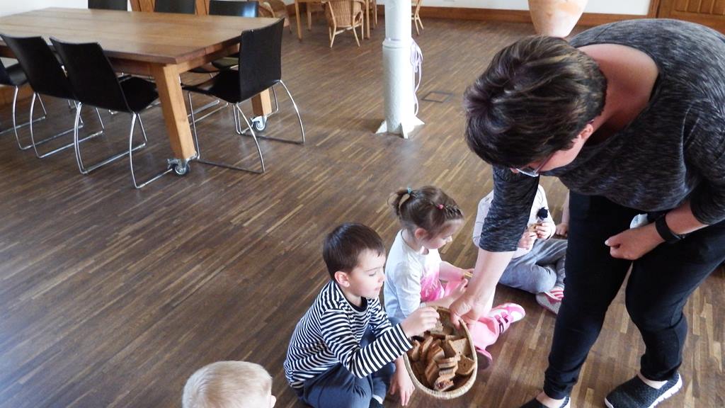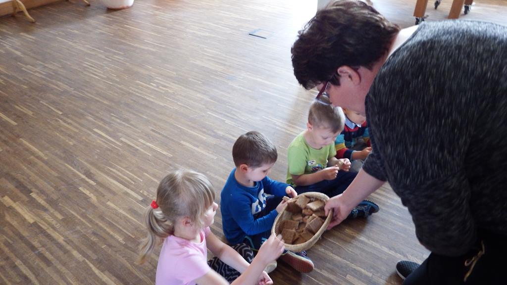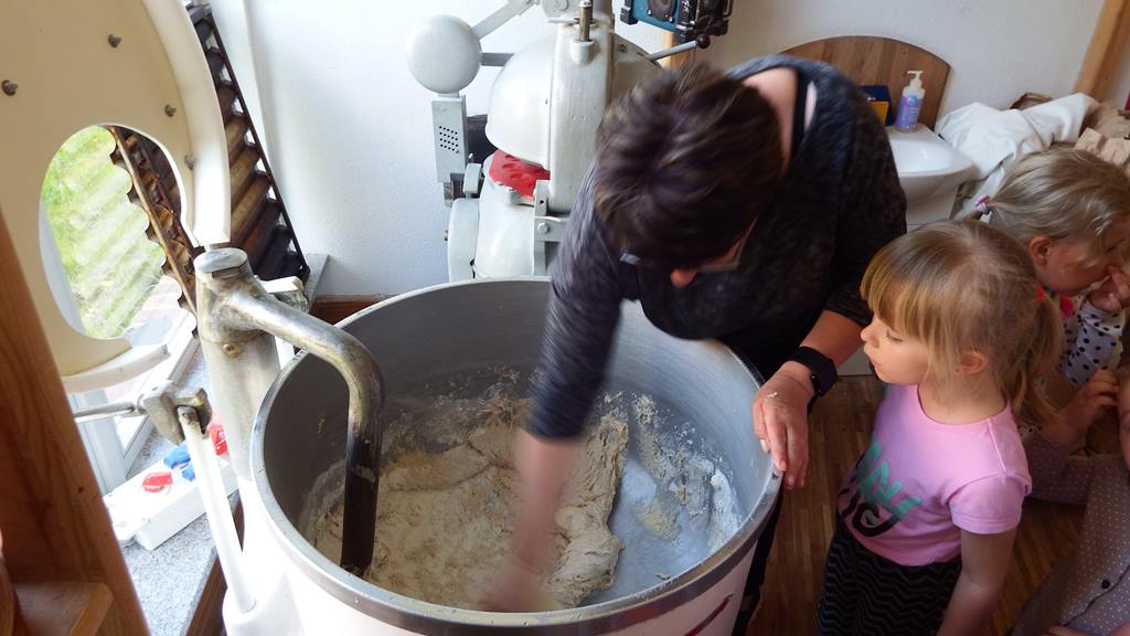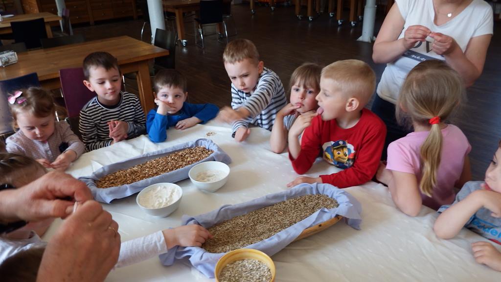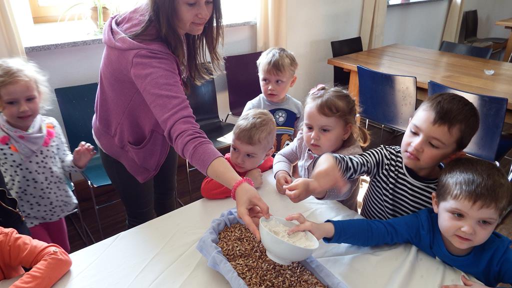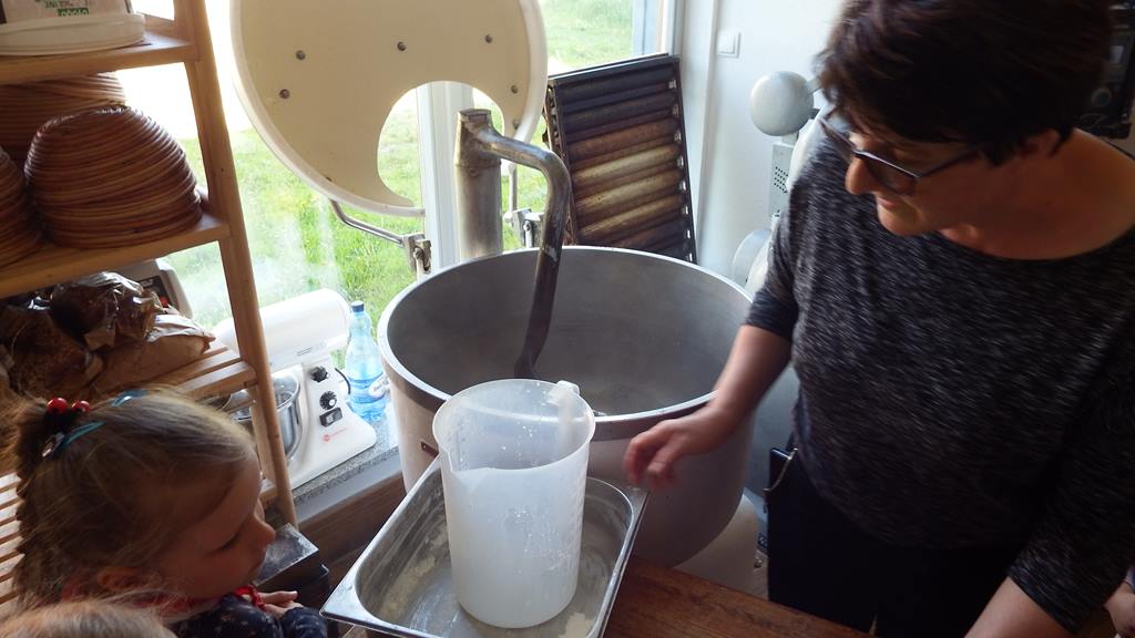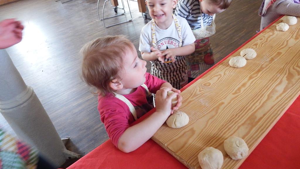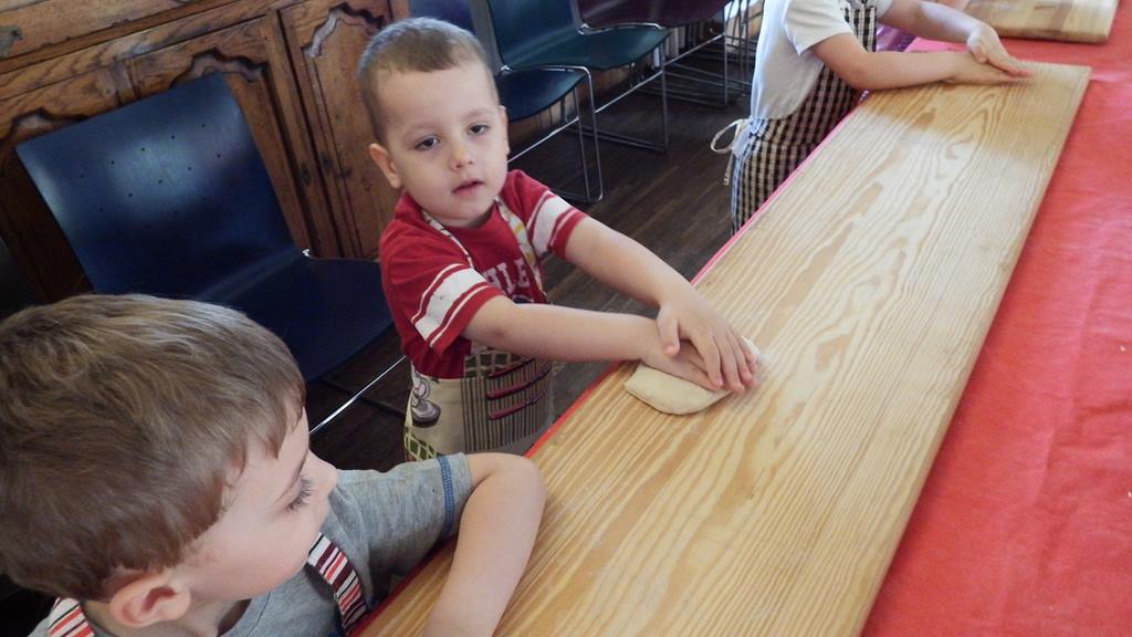 Grupa P. Hani wybrała się na wycieczkę do Juchowa, gdzie odwiedziła gospodarstwo ekologiczne. Dzieci na miejscu poznały kolejne etapy wypieku chleba, rodzaje ziaren, samodzielnie wyrabiały i formowały swoje pierwsze bułeczki. W oczekiwaniu na wypieki dzieci zwiedzały oborę i podziwiały jej mieszkańców – krowy i małe cielaczki, próbowały nakarmić krówki i pomóc przy codziennych czynnościach porządkowych. Po wyczerpującej pracy dzieci wróciły, aby na powietrzu skosztować własnych wypieków popijając pysznym mleczkiem.