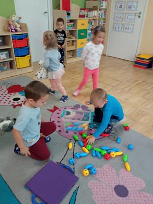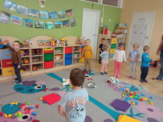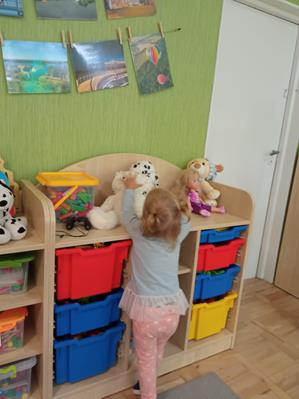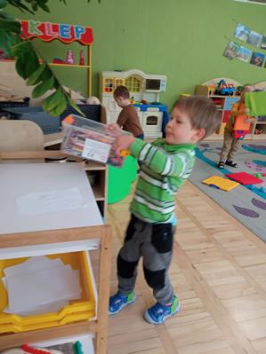 Dzisiaj do sali 3 latków pani Karoliny wkradł się nieproszony gość, chciał się zadomowić Pan Bałagan. Na szczęście to nie taka prosta sprawa i dzieciaczki z pomocą Pani Oli pokazały mu gdzie jest jego miejsce. Dziś najmłodsi poznali zasady bezpiecznej zabawy oraz sposoby naporządek w sali.