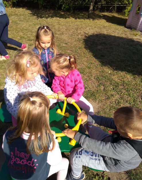 Miła atmosfera, życzliwość każdego dnia, uśmiech na twarzy, wspólne zabawy i tańce pozwalają zapomnieć o rozstaniu z rodzicami. Każdy kolejny dzień jest łatwiejszy dla maluszków.