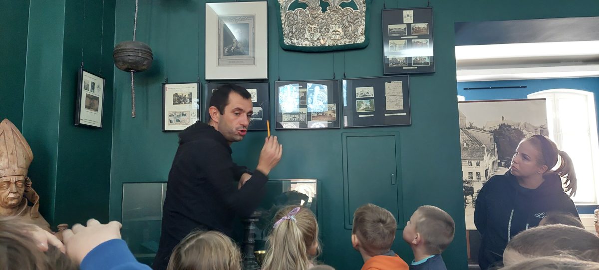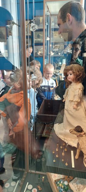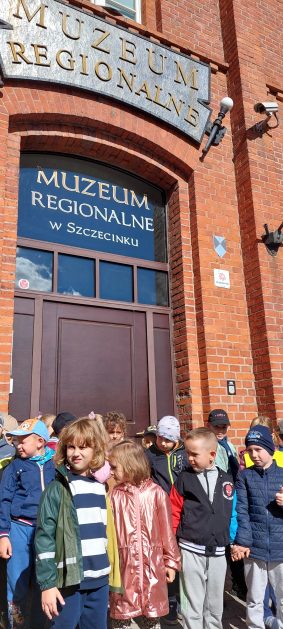 Mamy szczęście, że w Szczecinku jest muzeum, gdzie już od najmłodszych lat można zaszczepić u dzieci bakcyla do historycznych ciekawostek. Celem spotkań muzealnych dla dzieci będzie rozwijanie ciekawości świata, kształtowanie wrażliwości estetycznej i kulturowej, poszerzanie wiedzy o dziedzictwie historycznym, przyrodniczym czy artystycznym, a także rozwijanie umiejętności społecznych, manualnych i logicznego myślenia. Na pierwszym spotkaniu 6 latki A poznały pojęcie „muzeum”, zwiedziły sale muzealne, poznały zasady zachowania się w muzeum, zasady obchodzenia się z eksponatami. Z niecierpliwością oczekujemy kolejnych spotkań.