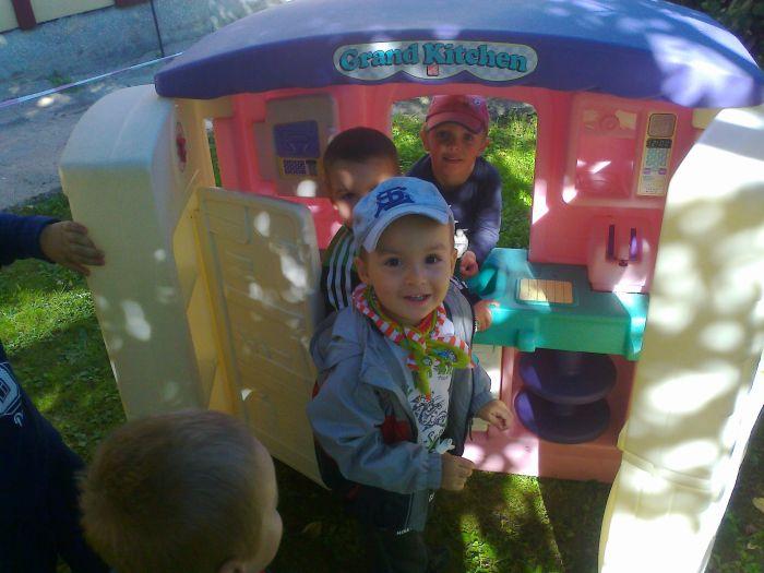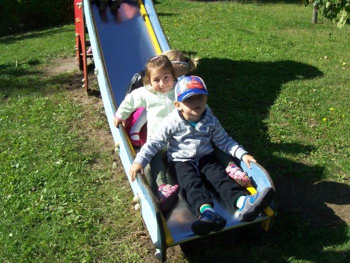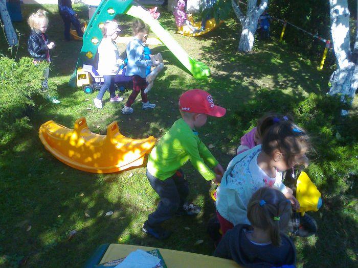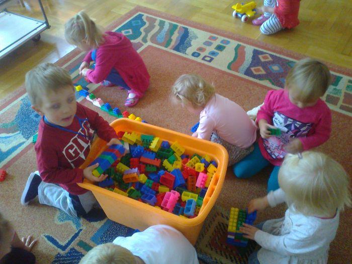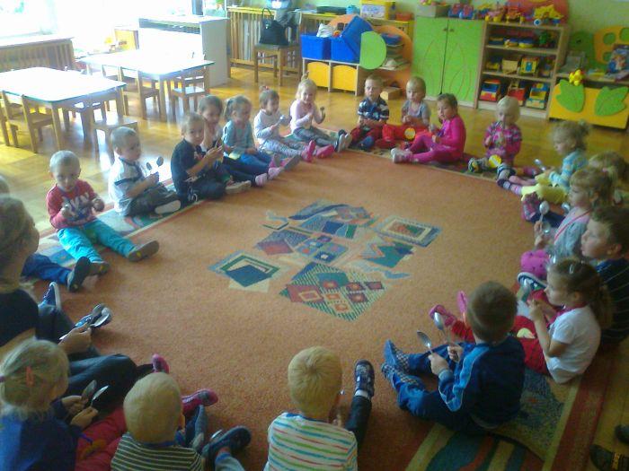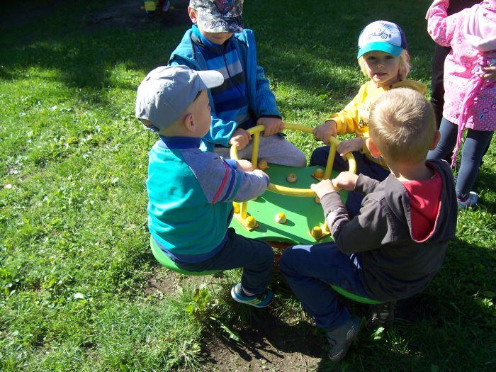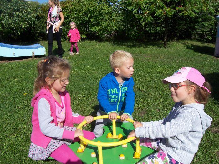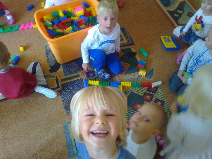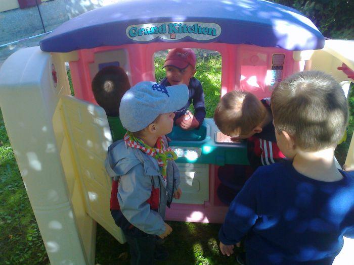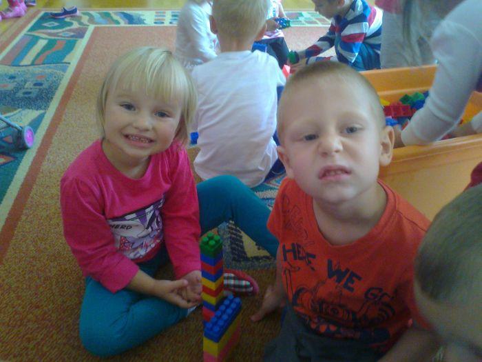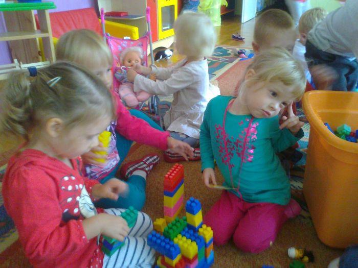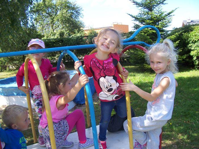 3 latki bardzo dobrze zaadaptowały się do warunków przedszkola. Spędzają wesoło czas ze swoją Panią Agnieszką, która proponuje im szereg ciekawych zabaw. Nie mają czasu na nudę i płacz. Na placu często bawią się ze starszymi kolegami, którzy uczą ich korzystania ze sprzętów.