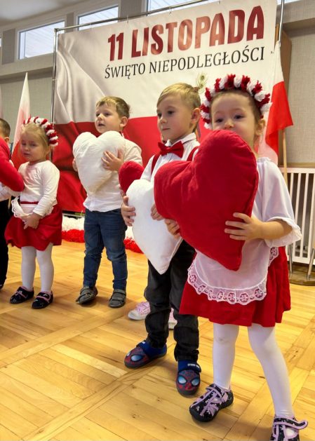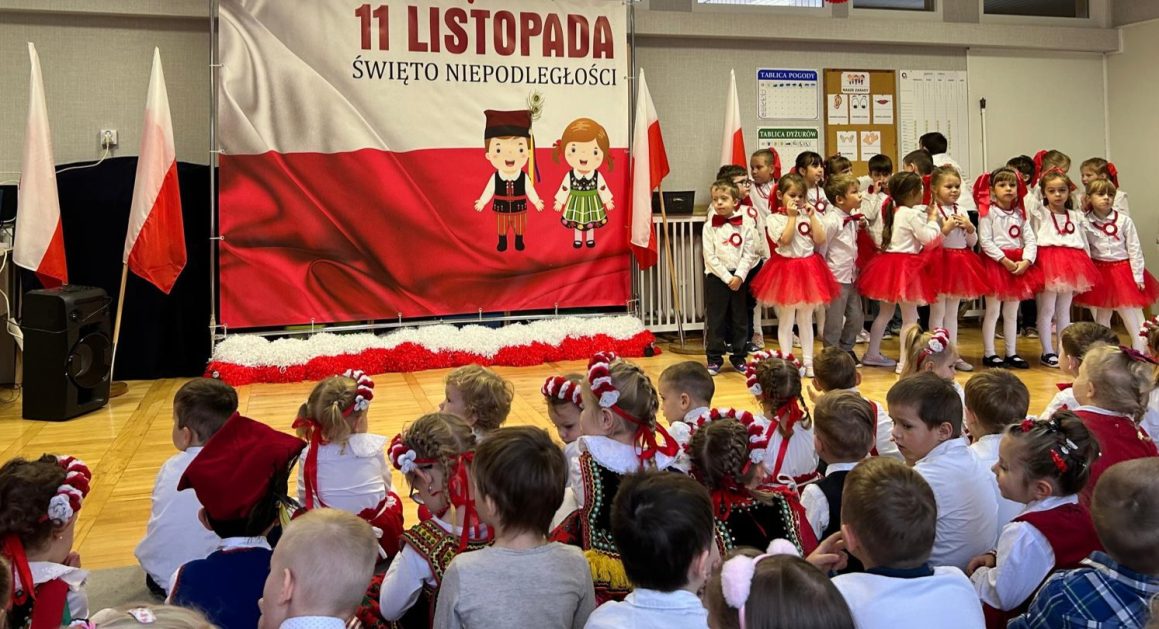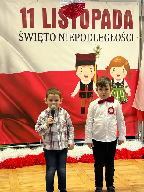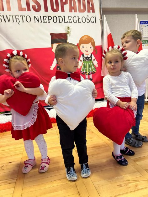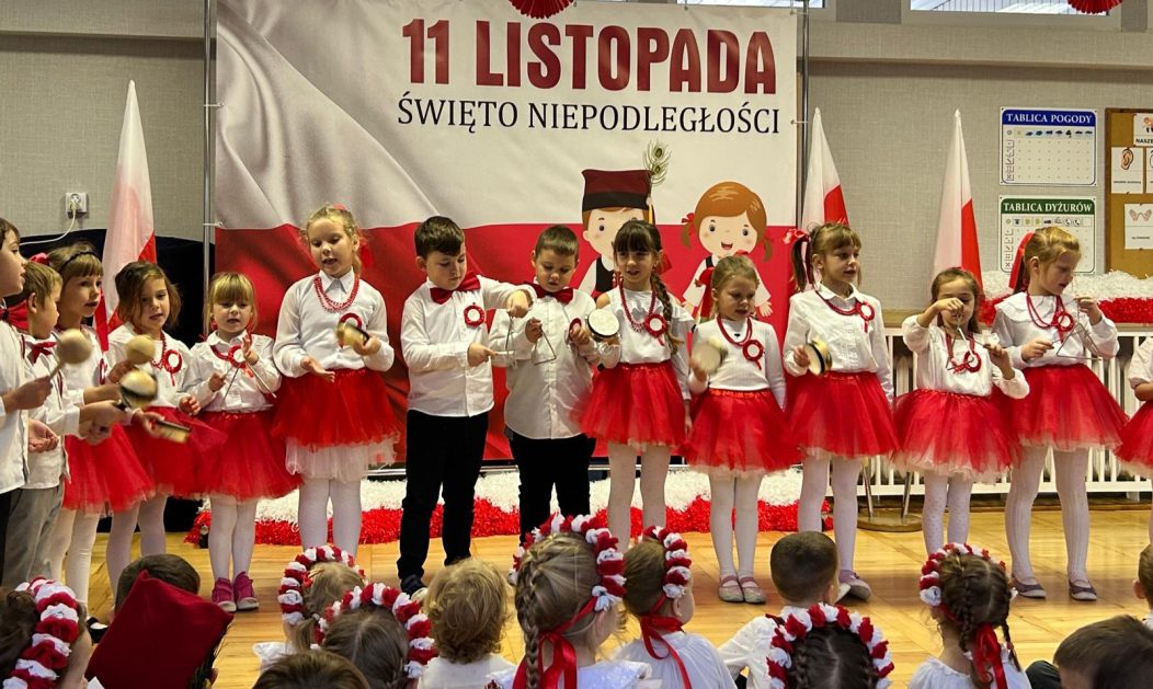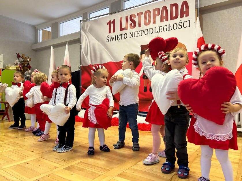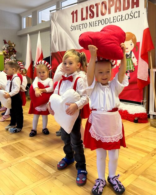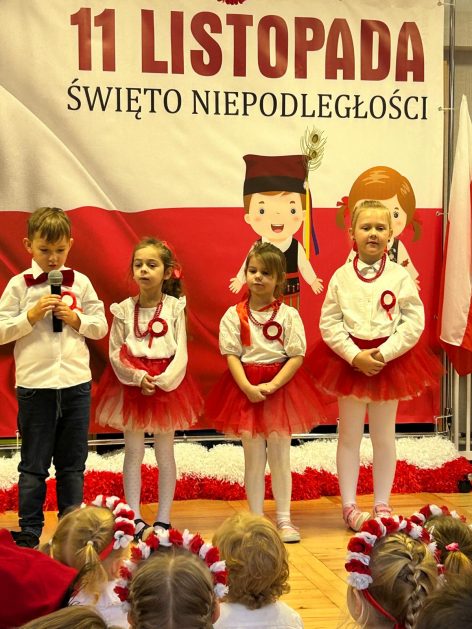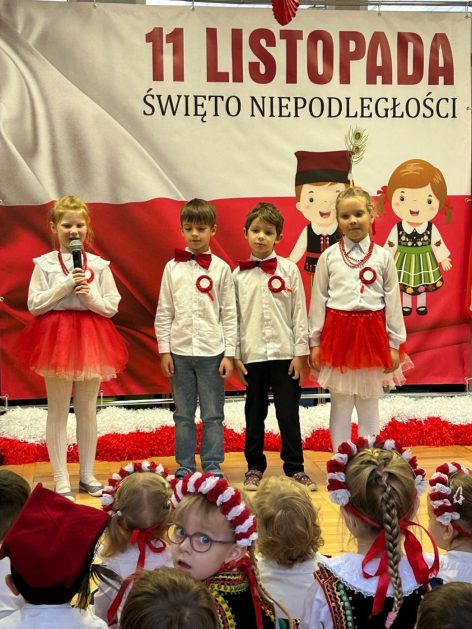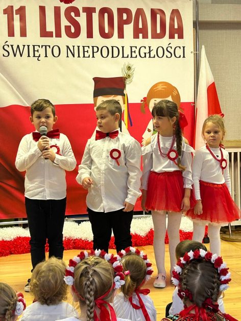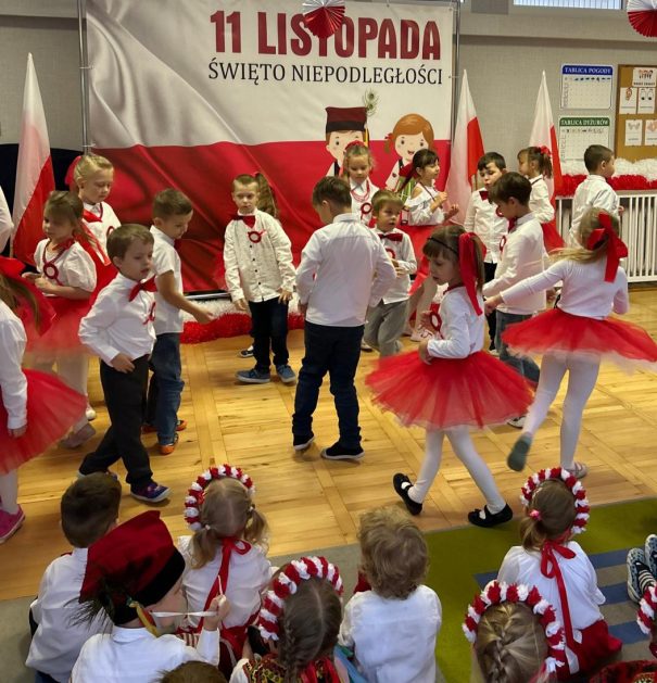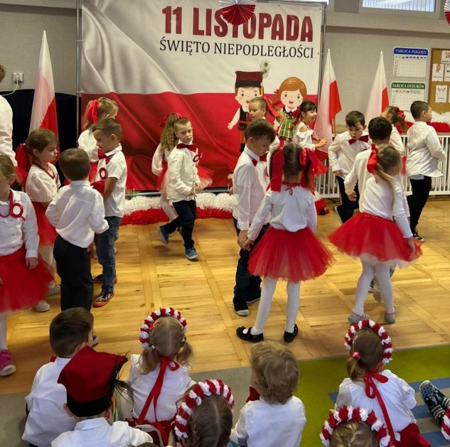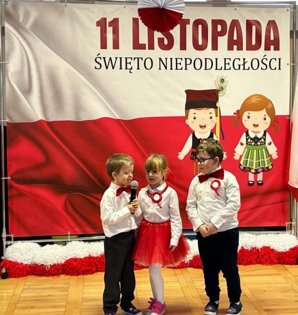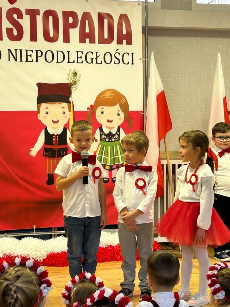 8 listopada – to kolejny dzień, w którym świętowaliśmy Dzień Niepodległości, wyjątkowy dla Nas – Polaków dzień. Tym razem cała społeczność przedszkolna, wszystkie dzieci i pracownicy przedszkola uczestniczyli w wyjątkowym przedstawieniu zorganizowanym przez 6 latki. Recytatorskie, wokalne i taneczne umiejętności najstarszej grupy dzieci nagrodzone zostały gromkimi brawami. 6 latki z wielką powagą recytowały patriotyczne wiersze, nie zabrakło również naszego hymnu narodowego zaśpiewanego wspólnie przez dzieci i dorosłych. Na zakończenie akademii, głos zabrała Pani Dyrektor dziękując dzieciom za przygotowanie tak pięknej uroczystości.