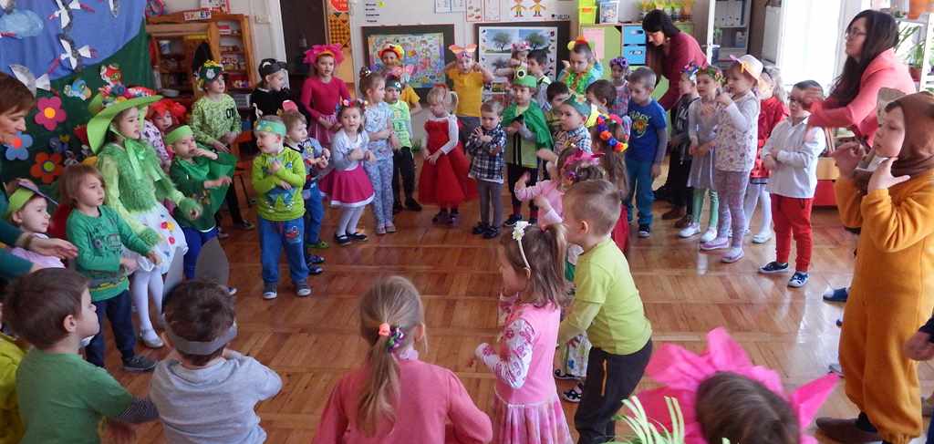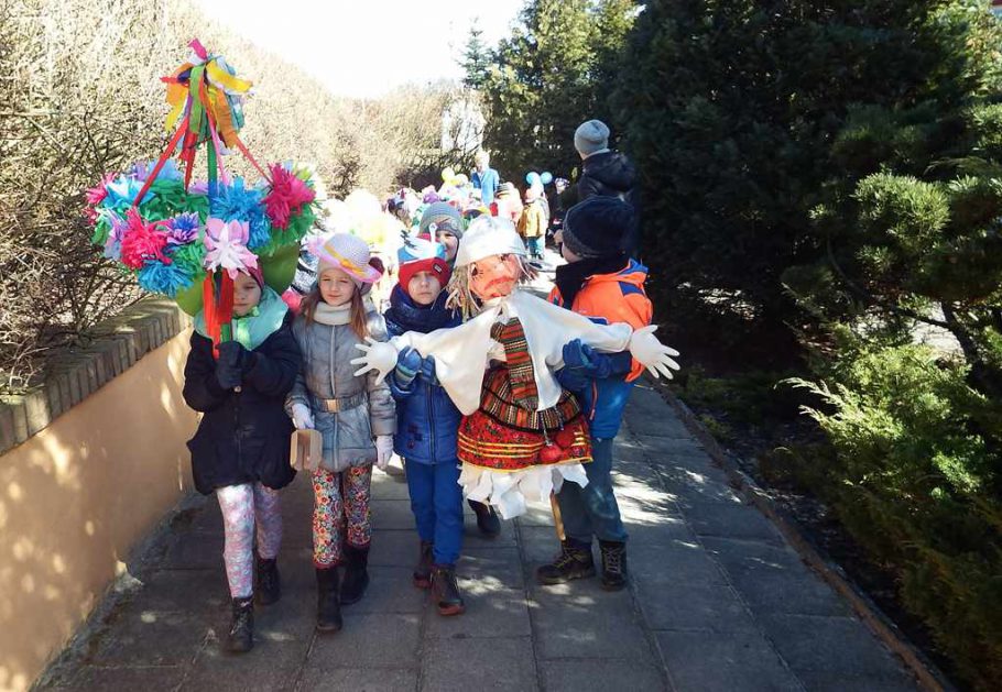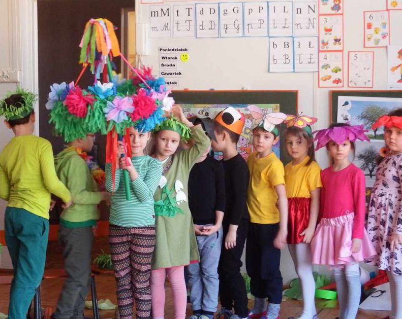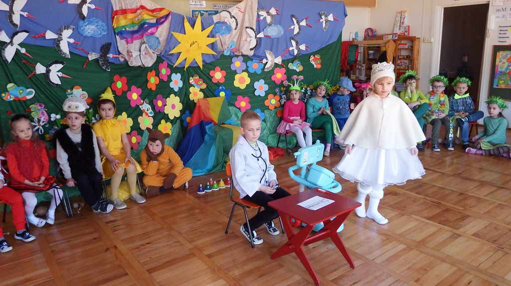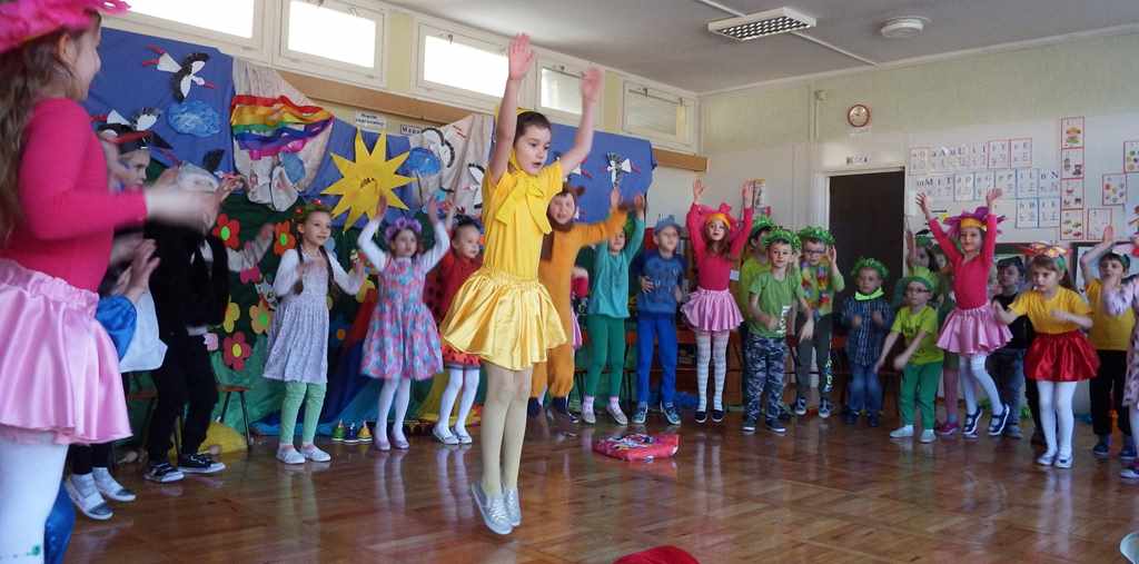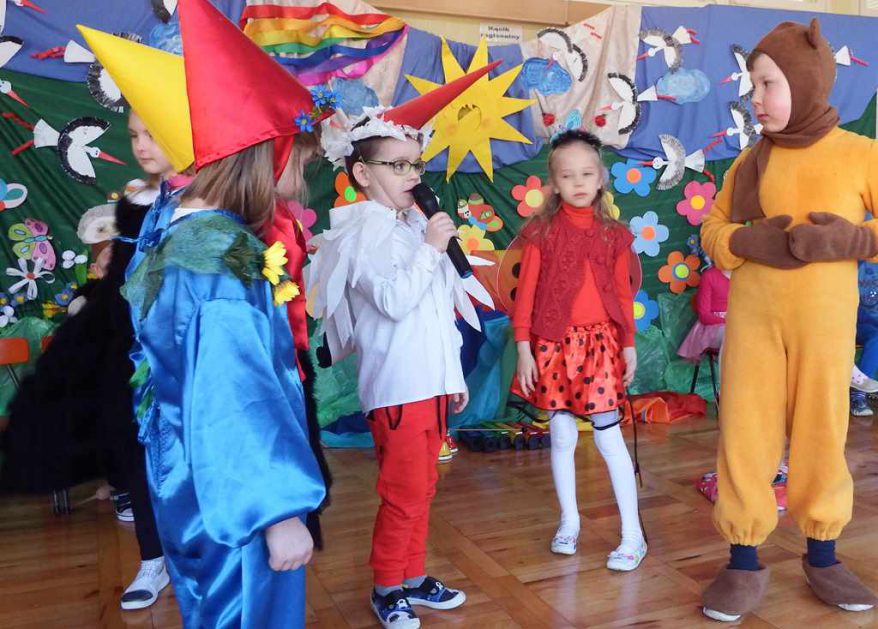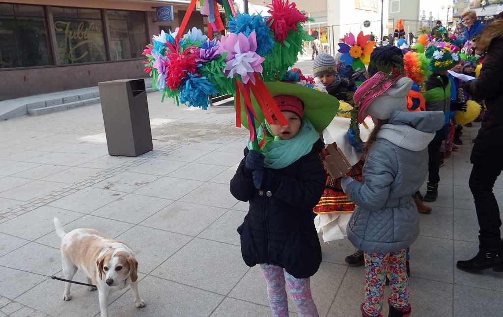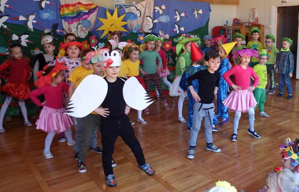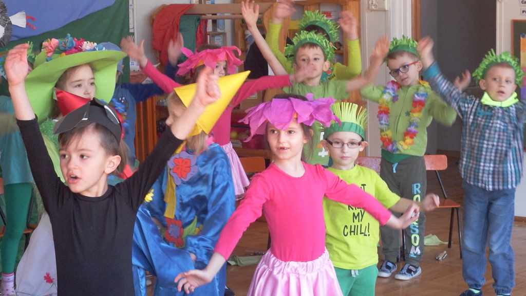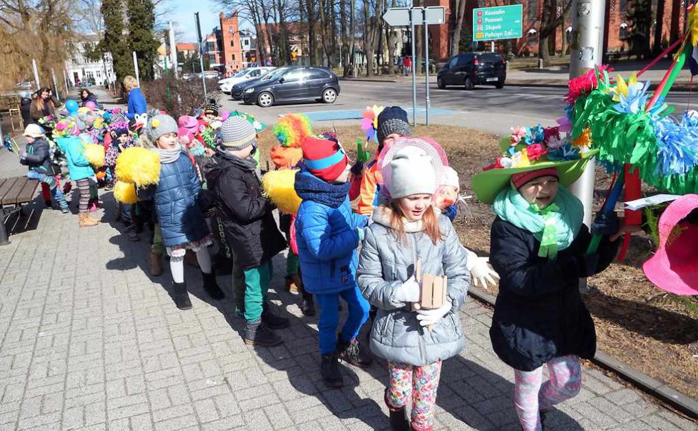 Starszaki zaprosiły wszystkie przedszkolaki na kolorowe przedstawienie ukazujące jak przyjemna to pora roku – Zielona Wiosna. Przy dźwiękach piosenek, z uśmiechem na ustach dzieci ruszyły barwnym korowodem po ulicach naszego miasta, grając i śpiewają rozgłaszały wszem i wobec, że wszystko budzi się do życia, więc cieszmy się i przekazujmy sobie pozytywną energię!