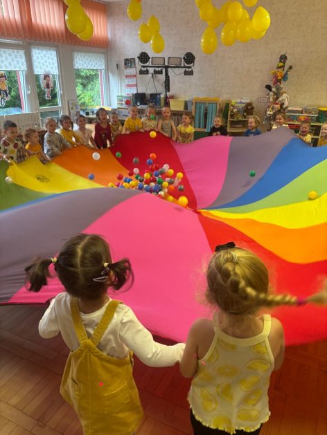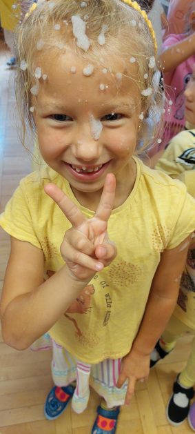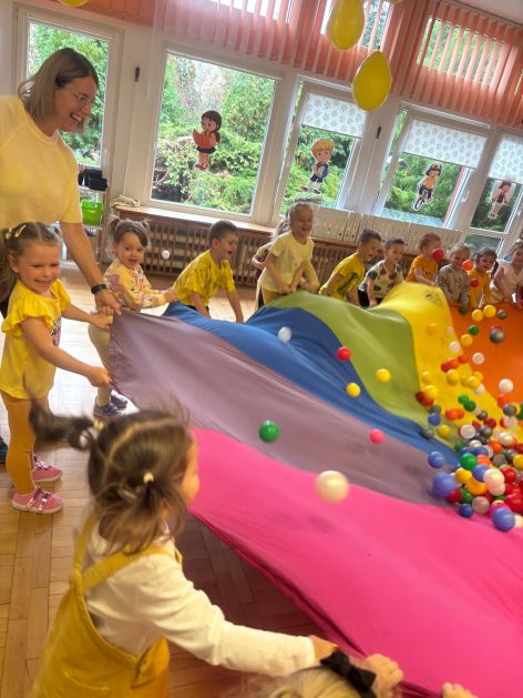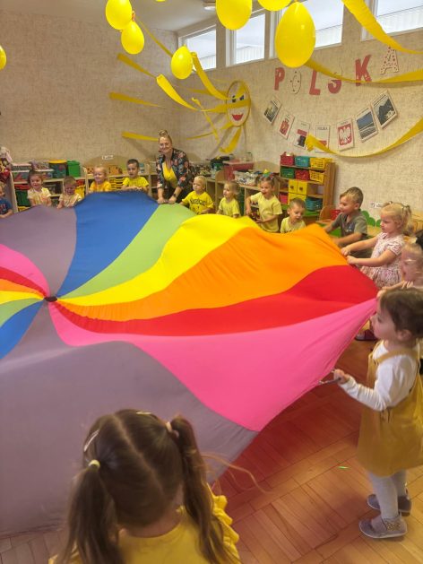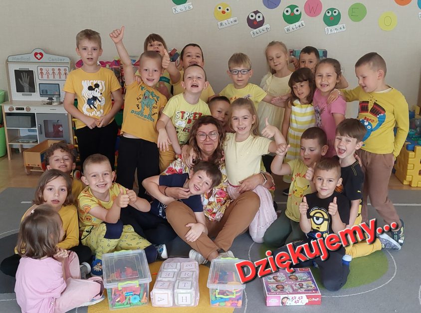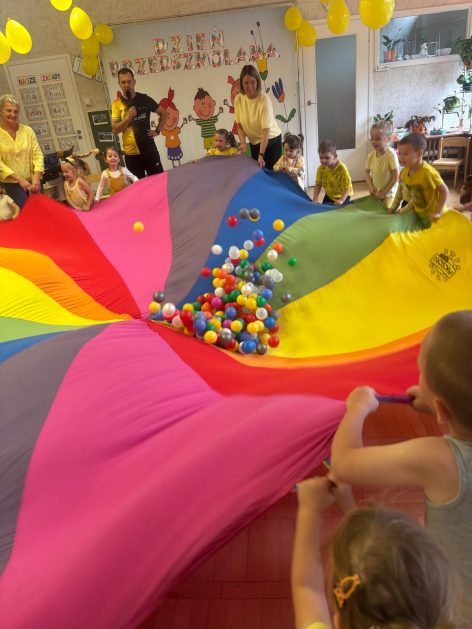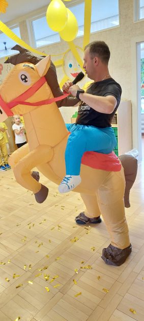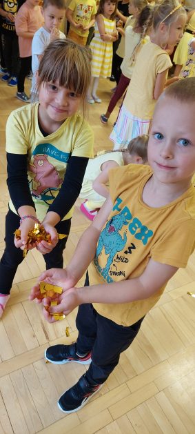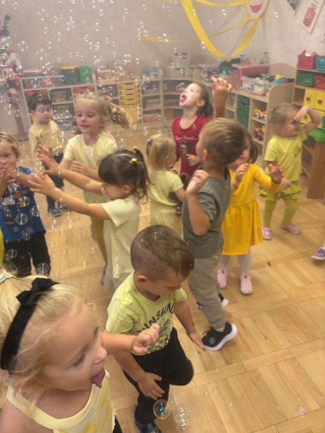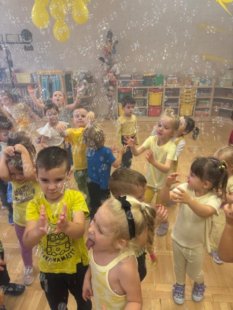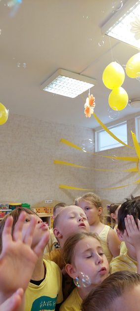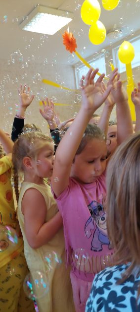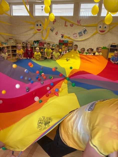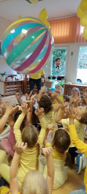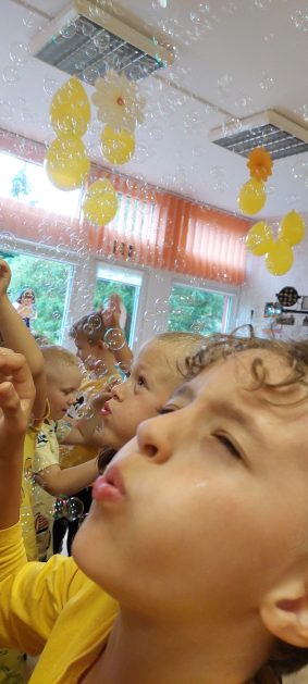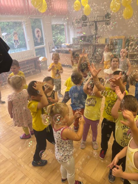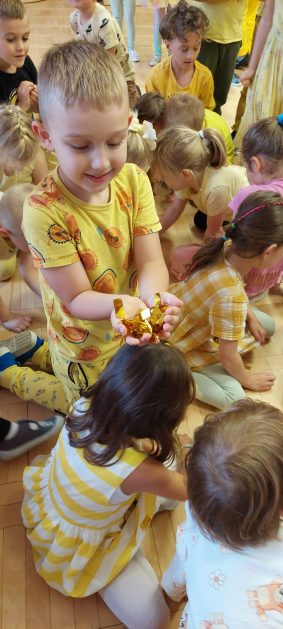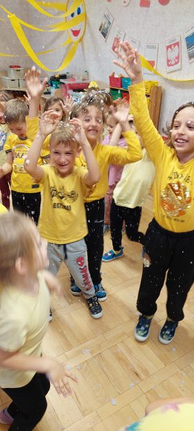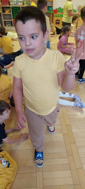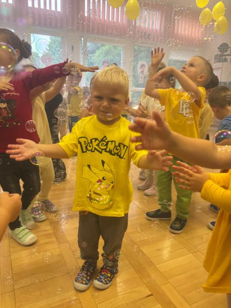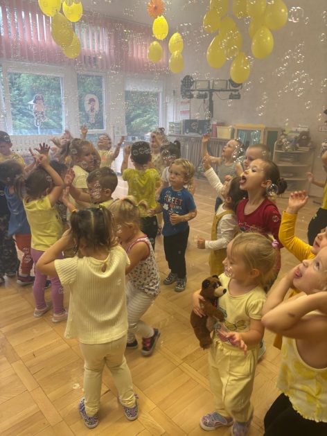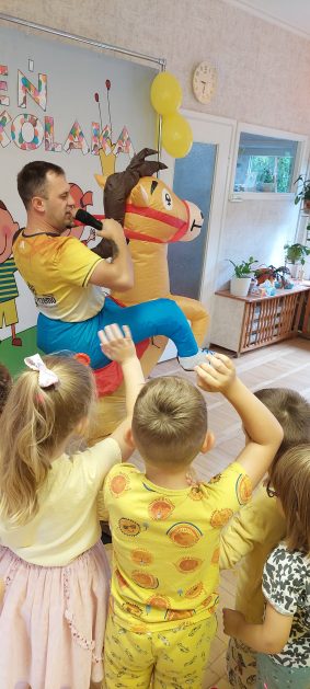W kalendarzu Ogólnopolski Dzień Przedszkolaka przypada 20 września, my świętowaliśmy 18 września. Święto zostało ustanowione przez Sejm, by podkreślić wagę edukacji przedszkolnej w rozwoju i edukacji dzieci oraz ma przyczynić się do popularyzacji wychowania przedszkolnego. Nasze wszystkie słoneczka od rana rozjaśniały przedszkole swoimi żółtymi strojami. Po śniadanku śmiech i tańce wraz z wodzirejem DJ Przemo. Wszyscy tańczyli… trochę lepiej, trochę gorzej ale to co wychodziło dzieciom doskonale to uśmiech od ucha do ucha! Po zabawie Pani dyrektor odwiedziła każdą salę i jeszcze raz złożyła wszystkim dzieciom życzenia: