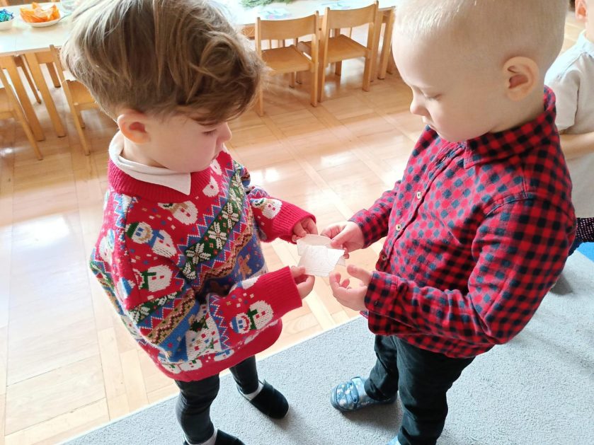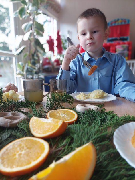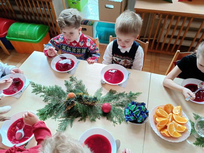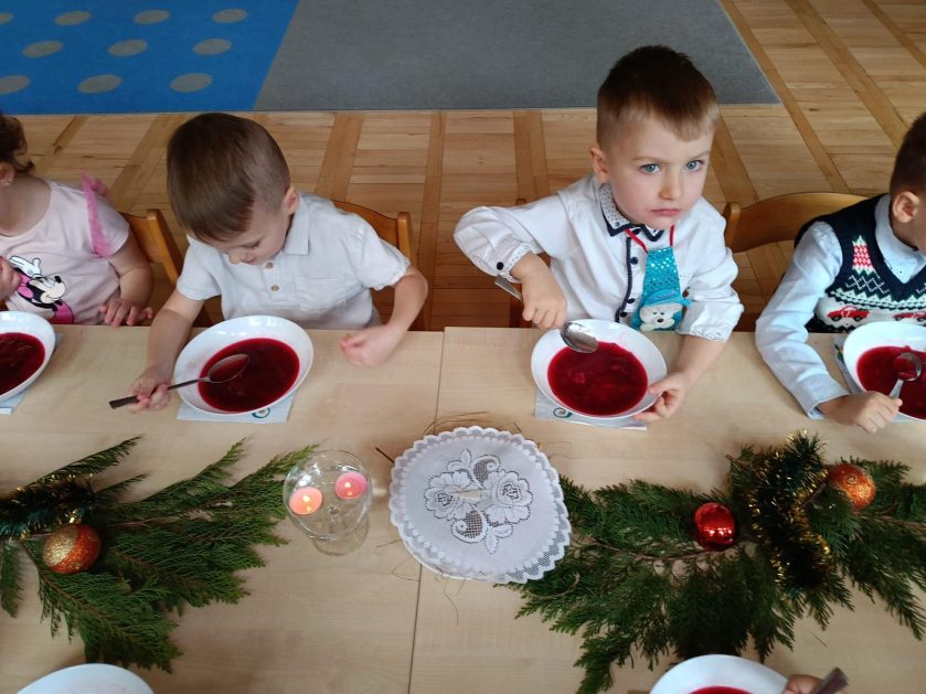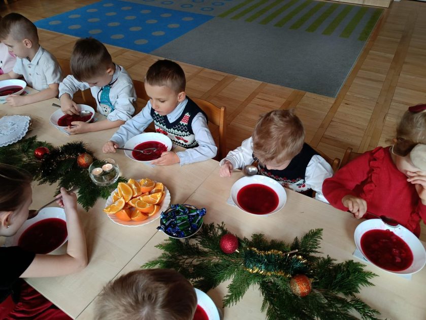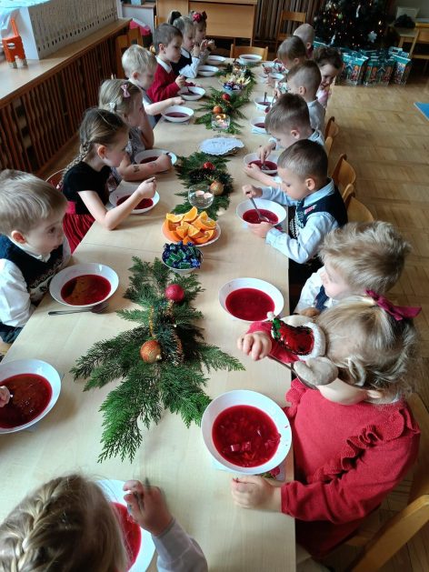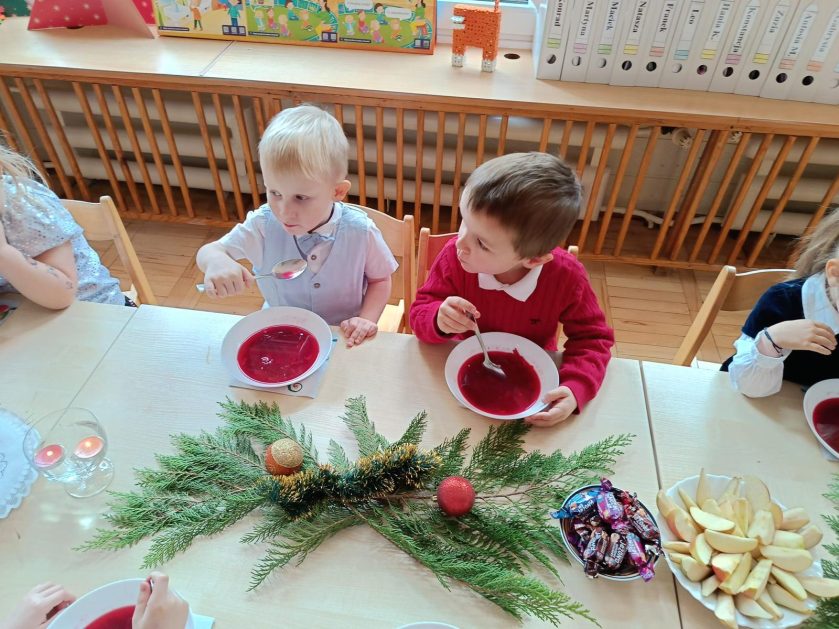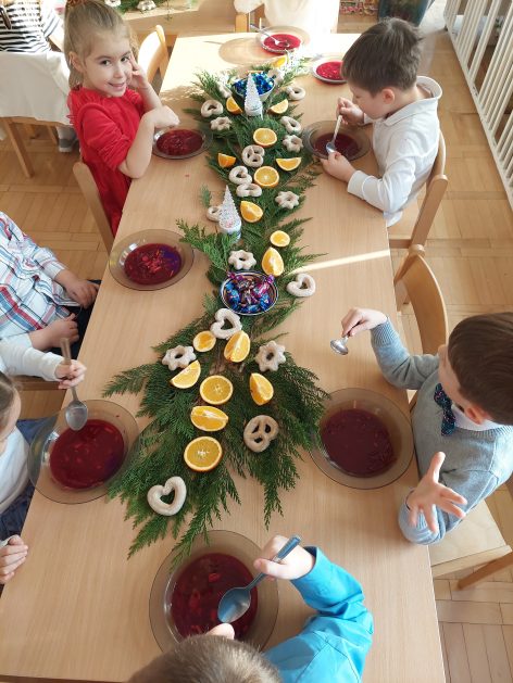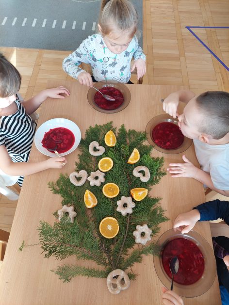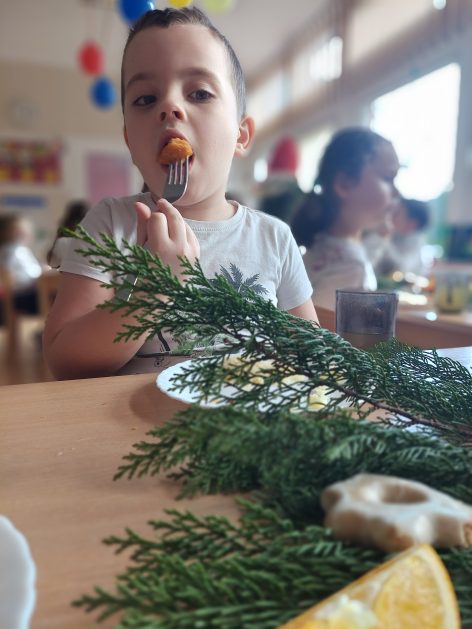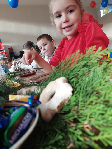 U nas pachnie już Świętami! Święta Bożego Narodzenia to jedne z najpiękniejszych dni w roku. Czas ten poprzedzają liczne przygotowania. Tak też było w naszym przedszkolu. Dzieci poznawały świąteczne tradycje, wykonywały ozdoby oraz uczyły się kolęd. W dzień przedszkolnej wigilii panowała radosna, ożywiona atmosfera. Świąteczne dekoracje oraz dzieci w galowych strojach wprowadzały nastrój oczekiwania na wyjątkowe, niecodzienne wydarzenie. Były wspólne życzenia i kolędowanie. Na stołach pojawiła się tradycyjna rybka, a także inne świąteczne przysmaki. Nie zabrakło również prezentów, które dzieci znalazły pod choinką.