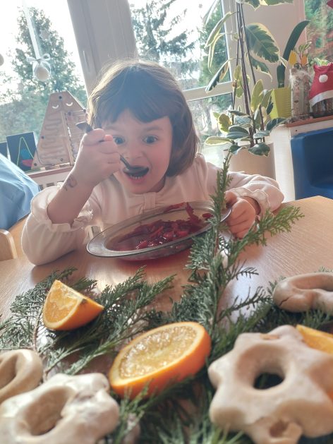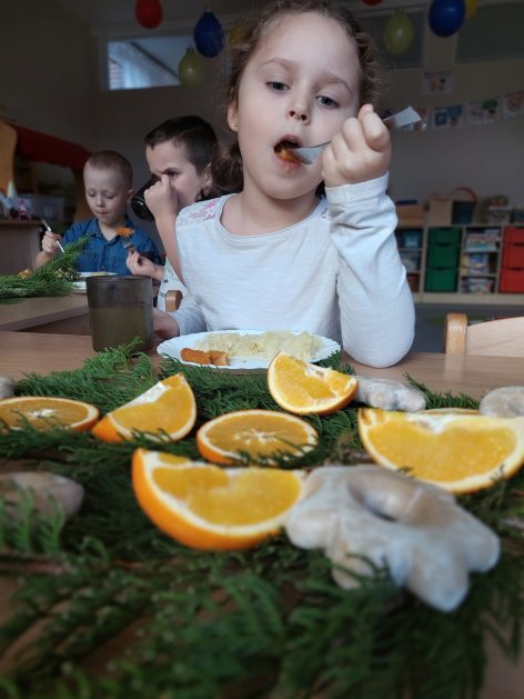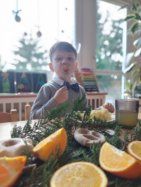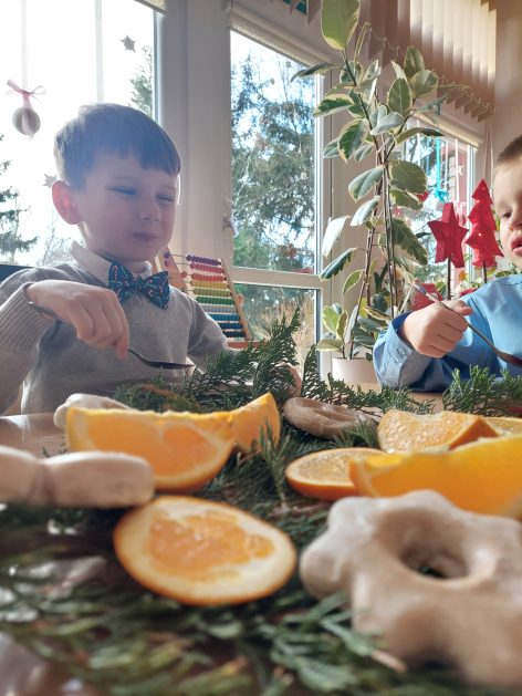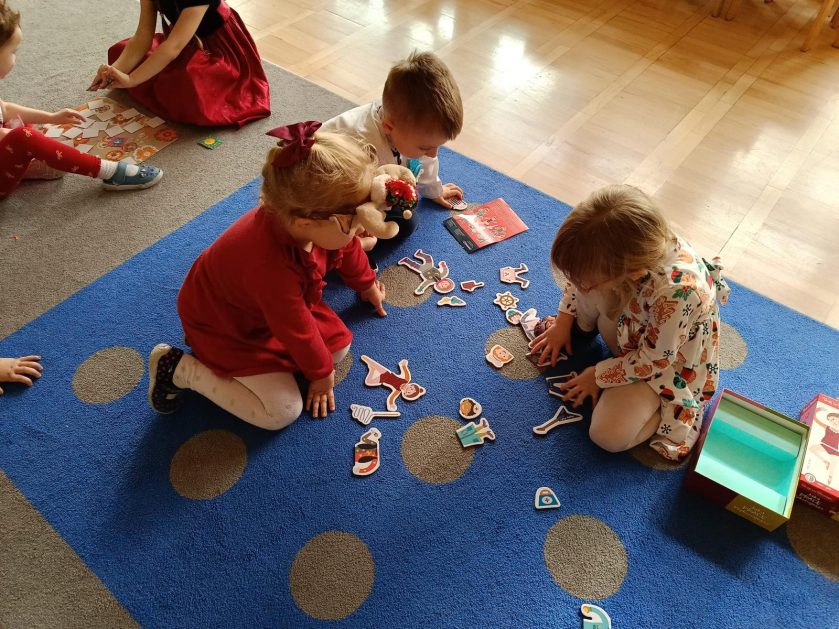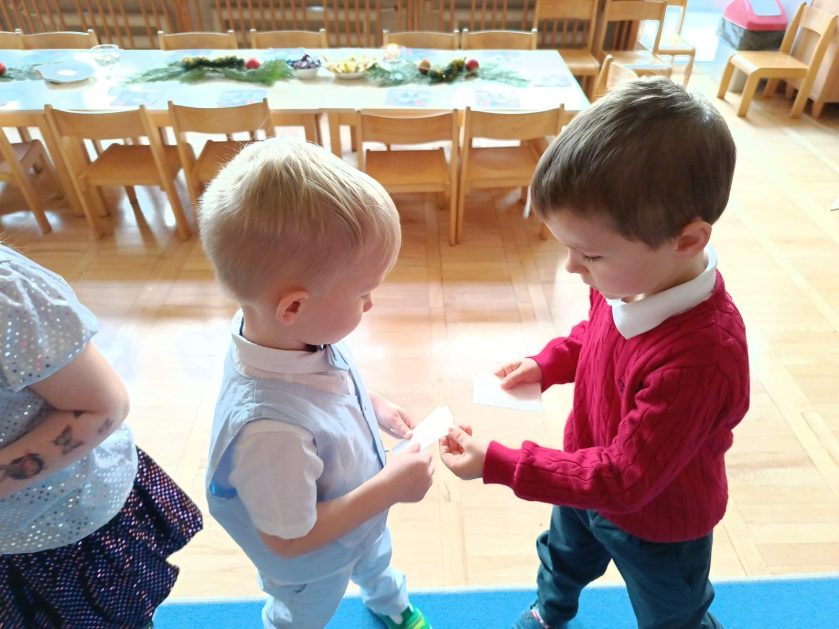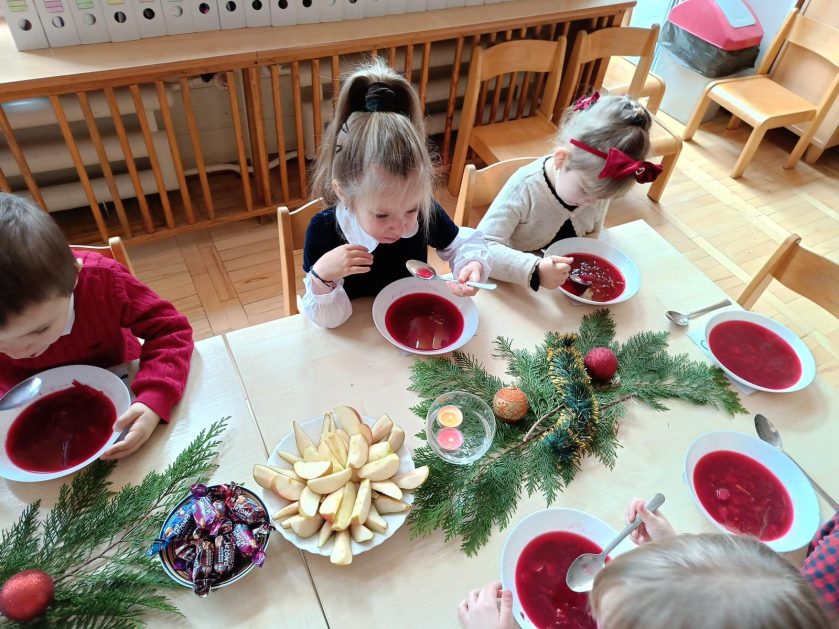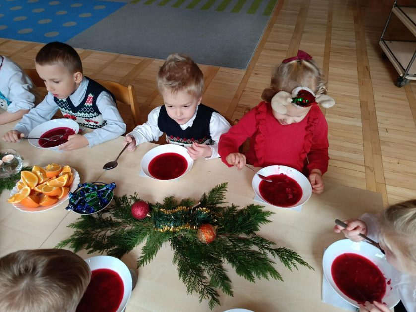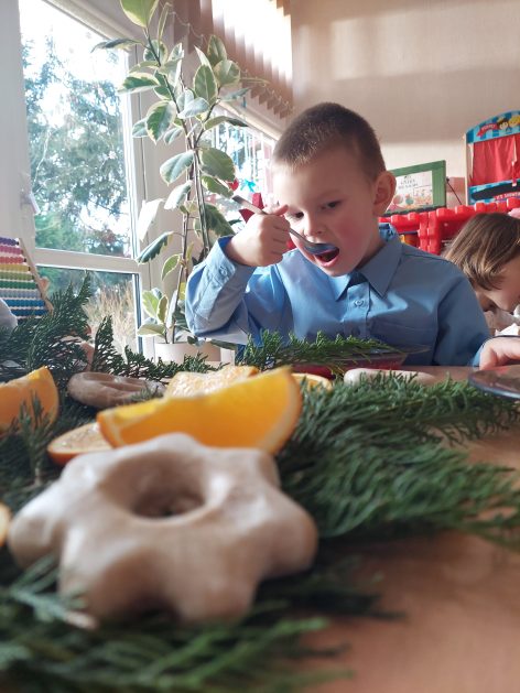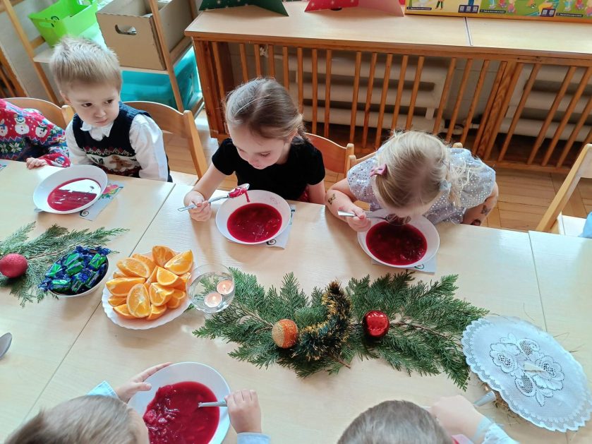 U nas pachnie już Świętami! Święta Bożego Narodzenia to jedne z najpiękniejszych dni w roku. Czas ten poprzedzają liczne przygotowania. Tak też było w naszym przedszkolu. Dzieci poznawały świąteczne tradycje, wykonywały ozdoby oraz uczyły się kolęd. W dzień przedszkolnej wigilii panowała radosna, ożywiona atmosfera. Świąteczne dekoracje oraz dzieci w galowych strojach wprowadzały nastrój oczekiwania na wyjątkowe, niecodzienne wydarzenie. Były wspólne życzenia i kolędowanie. Na stołach pojawiła się tradycyjna rybka, a także inne świąteczne przysmaki. Nie zabrakło również prezentów, które dzieci znalazły pod choinką.