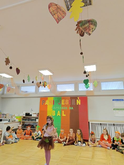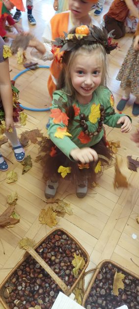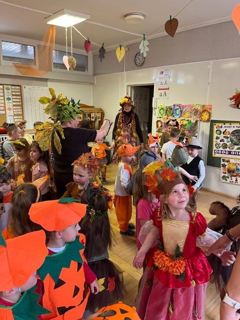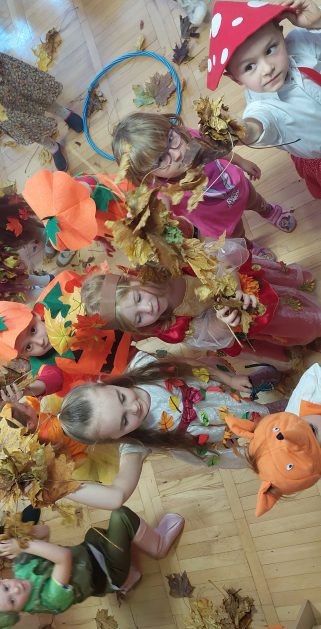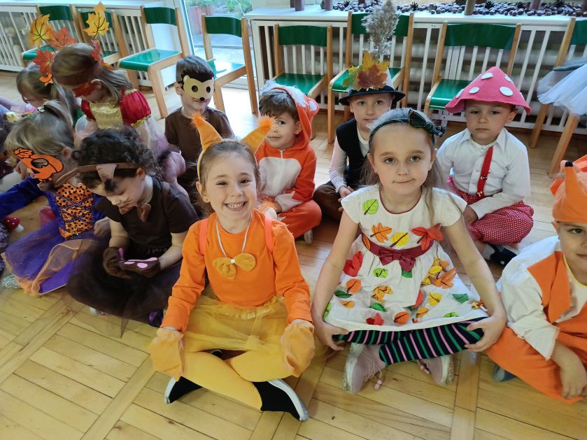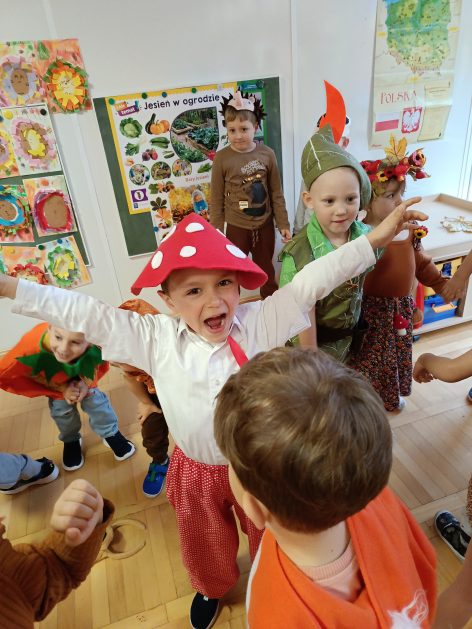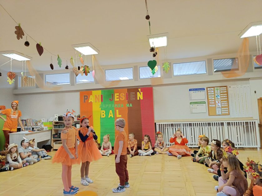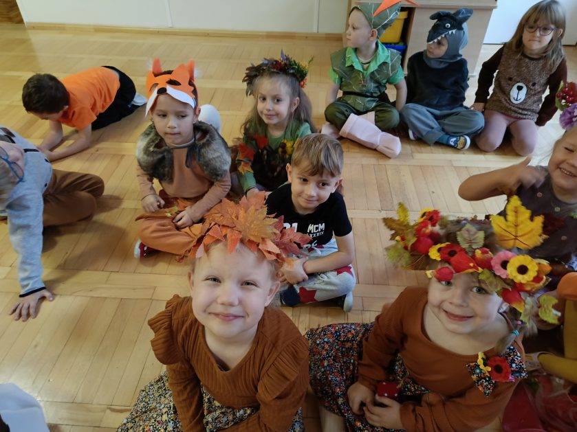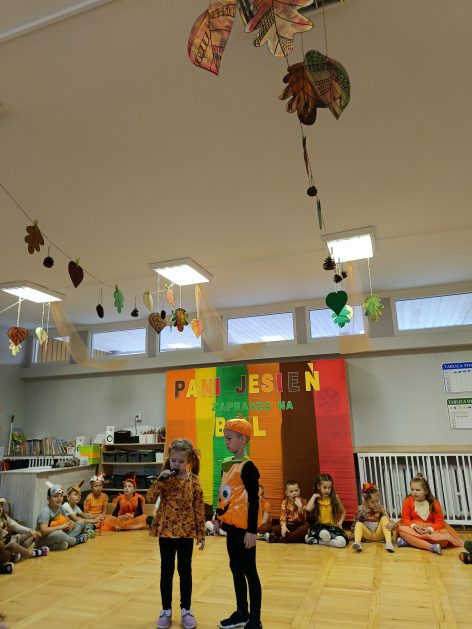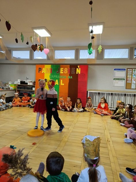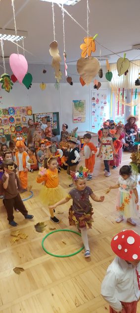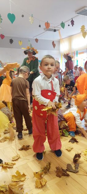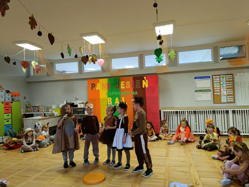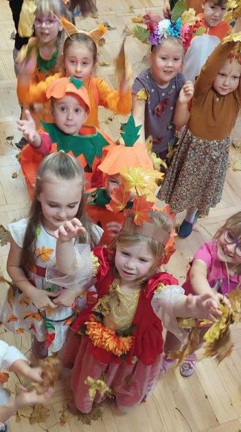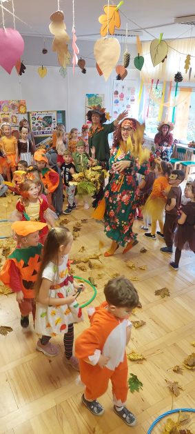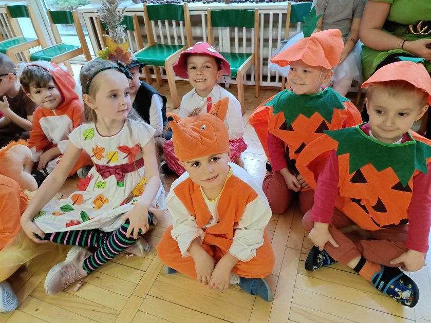 Liście opadają z drzew i jest chłodno, szaro, buro, brryy! A u nas cieplutko i kolorowo, Pani Jesień ma inne oblicze, jest kolorowa, do tańca i zabawy gotowa! Mimo, że to nie karnawał, u nas w przedszkolu bawiliśmy się na balu u Pani Jesieni. Starszaki przygotowały krótkie przedstawienie jesienne i na koniec zaprosiły wszystkie przepięknie, kolorowo i tematycznie przebrane jeżyki, wiewióreczki, ptaszki, myszki, liski, dynie, muchomorki, kasztanki do wesołej zabawy.