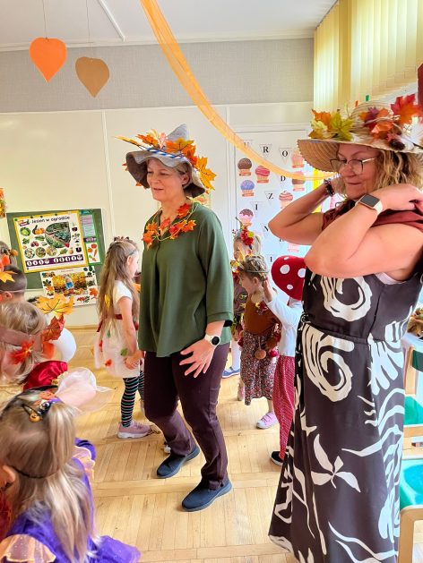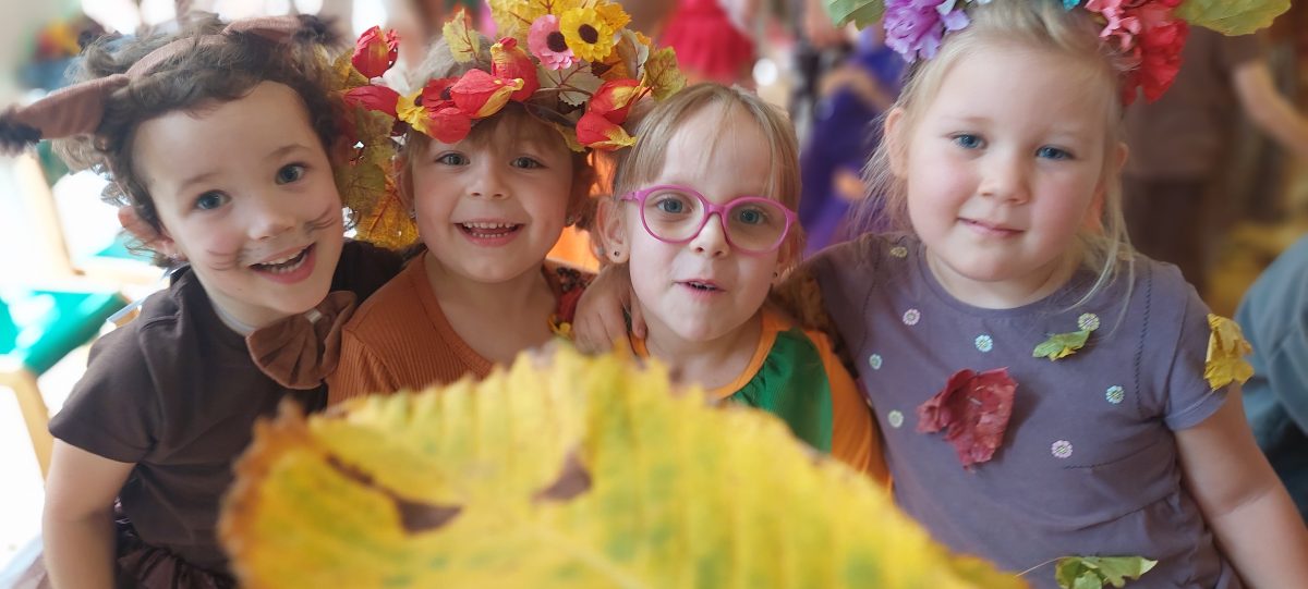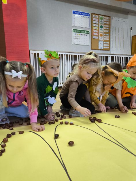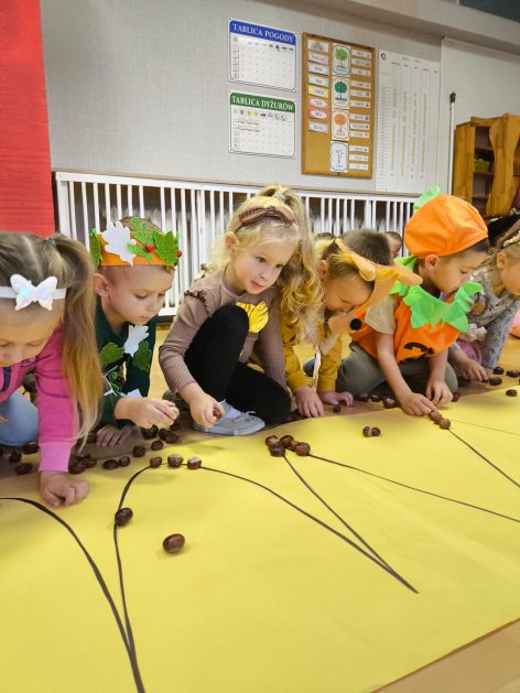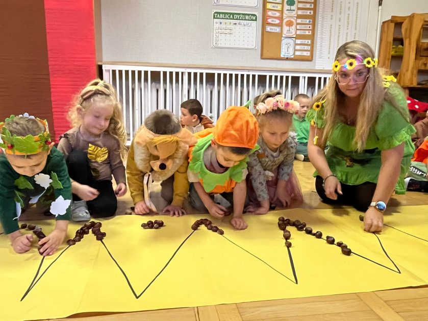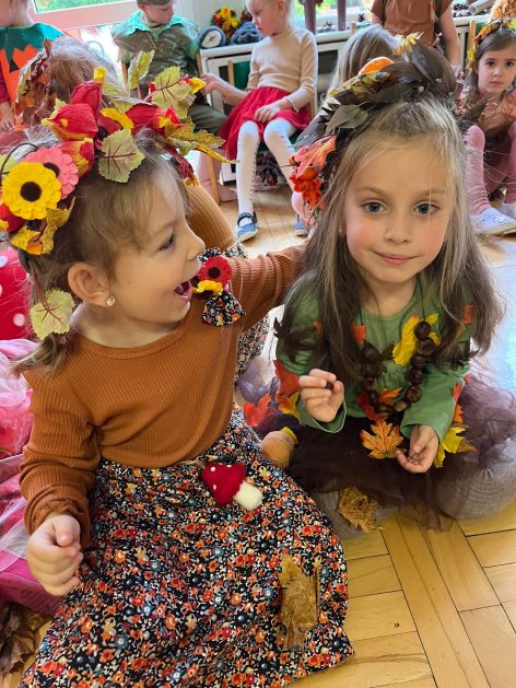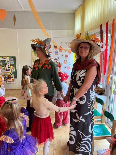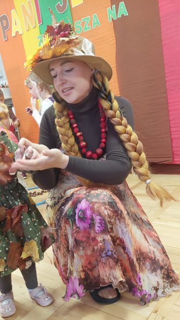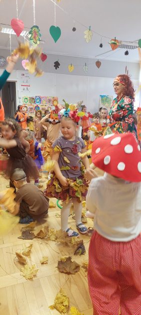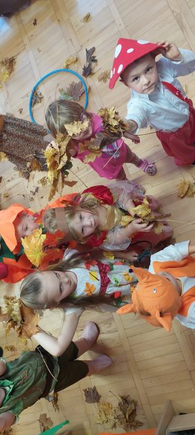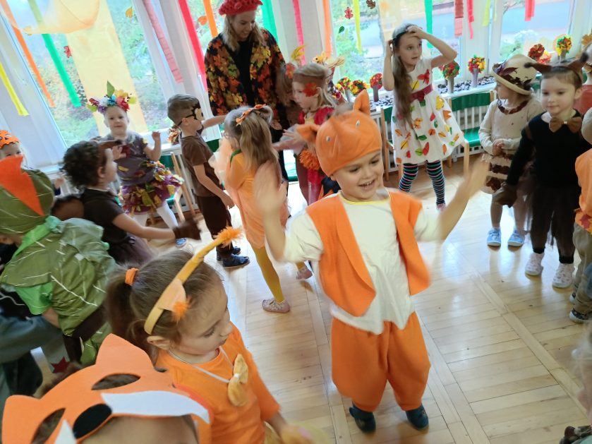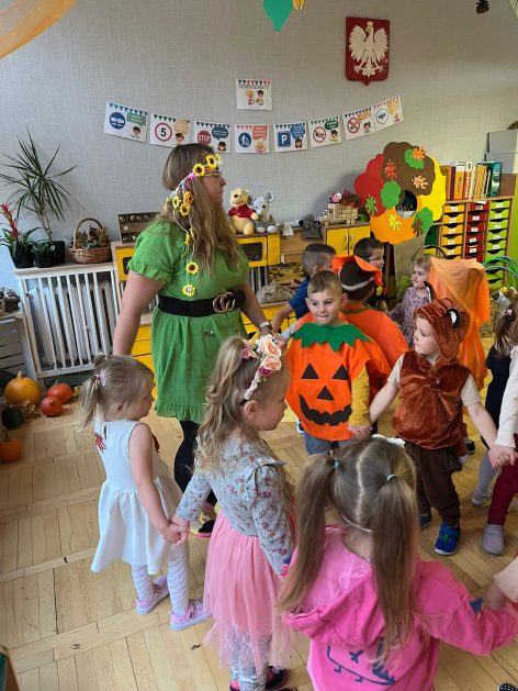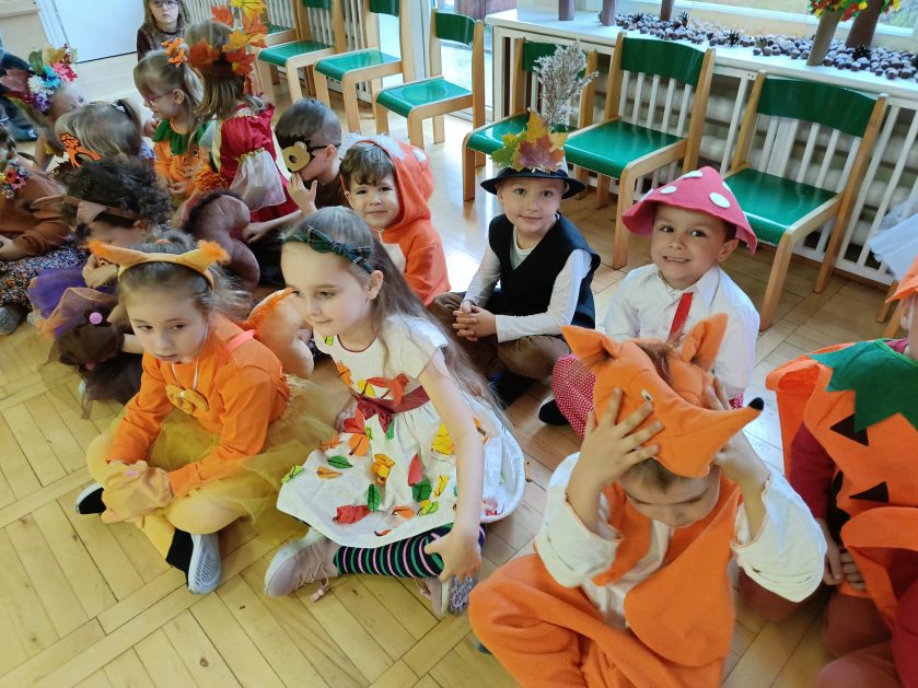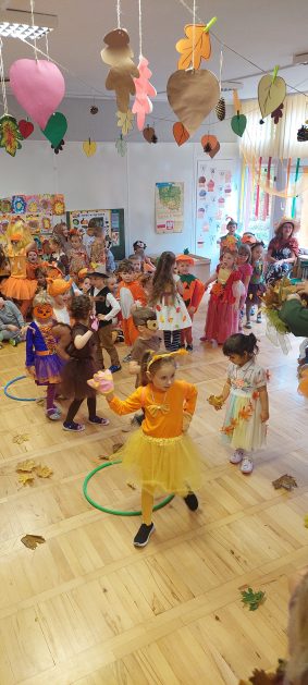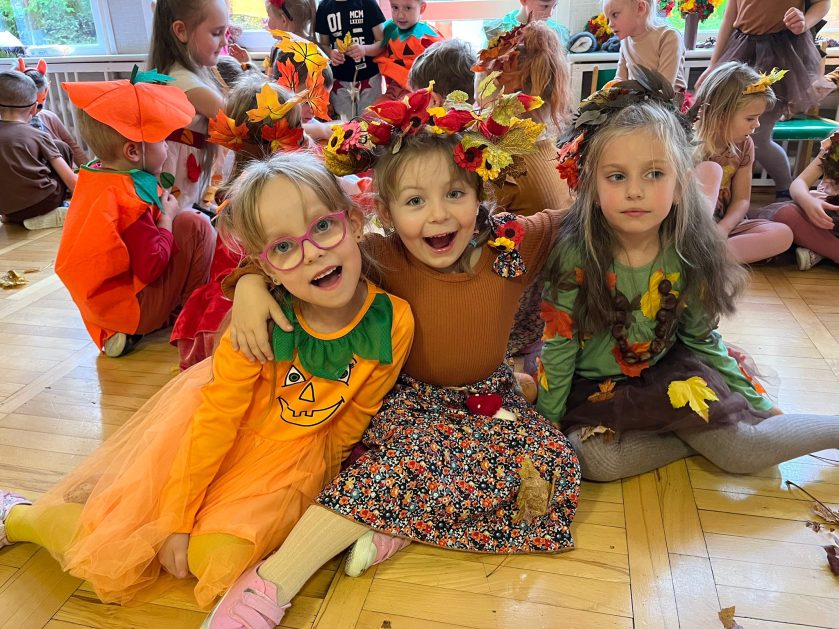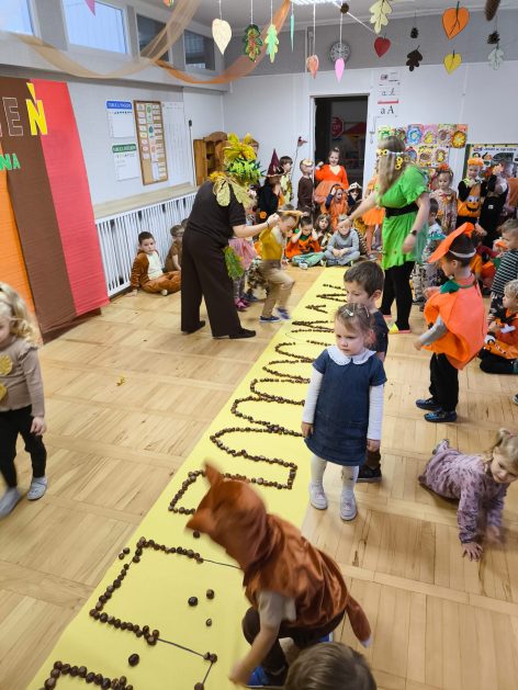 Liście opadają z drzew i jest chłodno, szaro, buro, brryy! A u nas cieplutko i kolorowo, Pani Jesień ma inne oblicze, jest kolorowa, do tańca i zabawy gotowa! Mimo, że to nie karnawał, u nas w przedszkolu bawiliśmy się na balu u Pani Jesieni. Starszaki przygotowały krótkie przedstawienie jesienne i na koniec zaprosiły wszystkie przepięknie, kolorowo i tematycznie przebrane jeżyki, wiewióreczki, ptaszki, myszki, liski, dynie, muchomorki, kasztanki do wesołej zabawy.