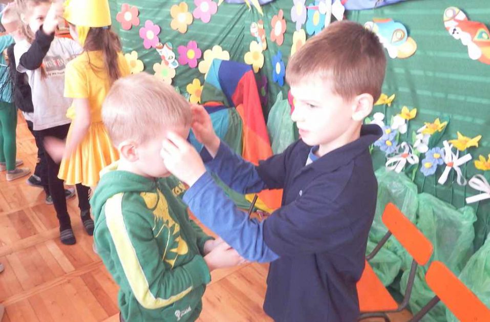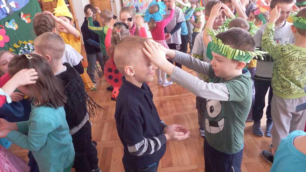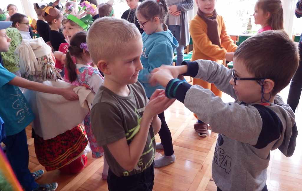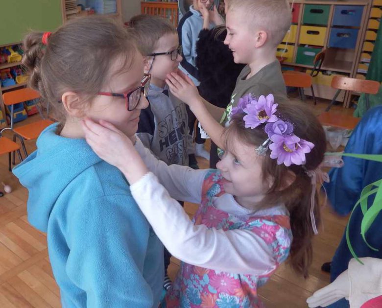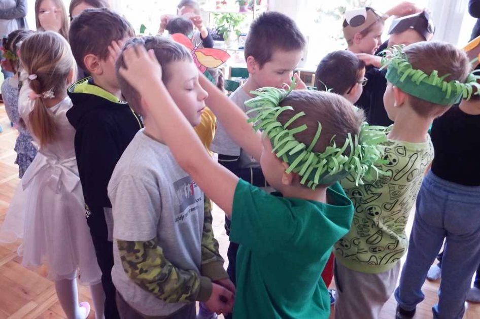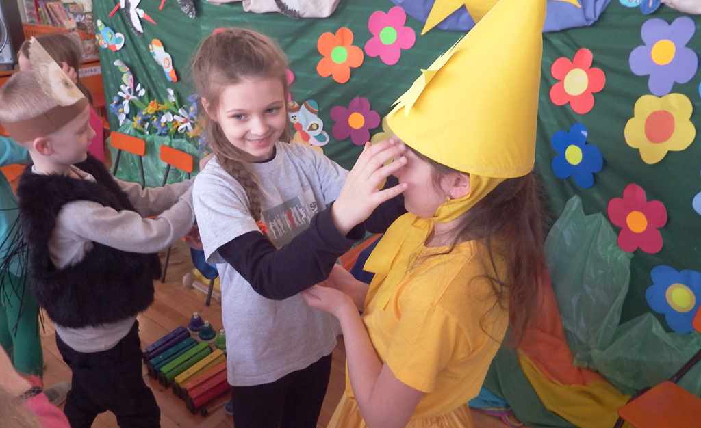 W ramach współpracy przedszkola ze szkołą podstawową nr 6 dzieci z grup 6 i 5-6 latków zaprosiły uczniów klas I na przedstawienie z okazji Powitania Wiosny. Wesołe, kolorowe przedstawienie zakończyło się wspólną zabawą przy muzyce.