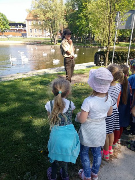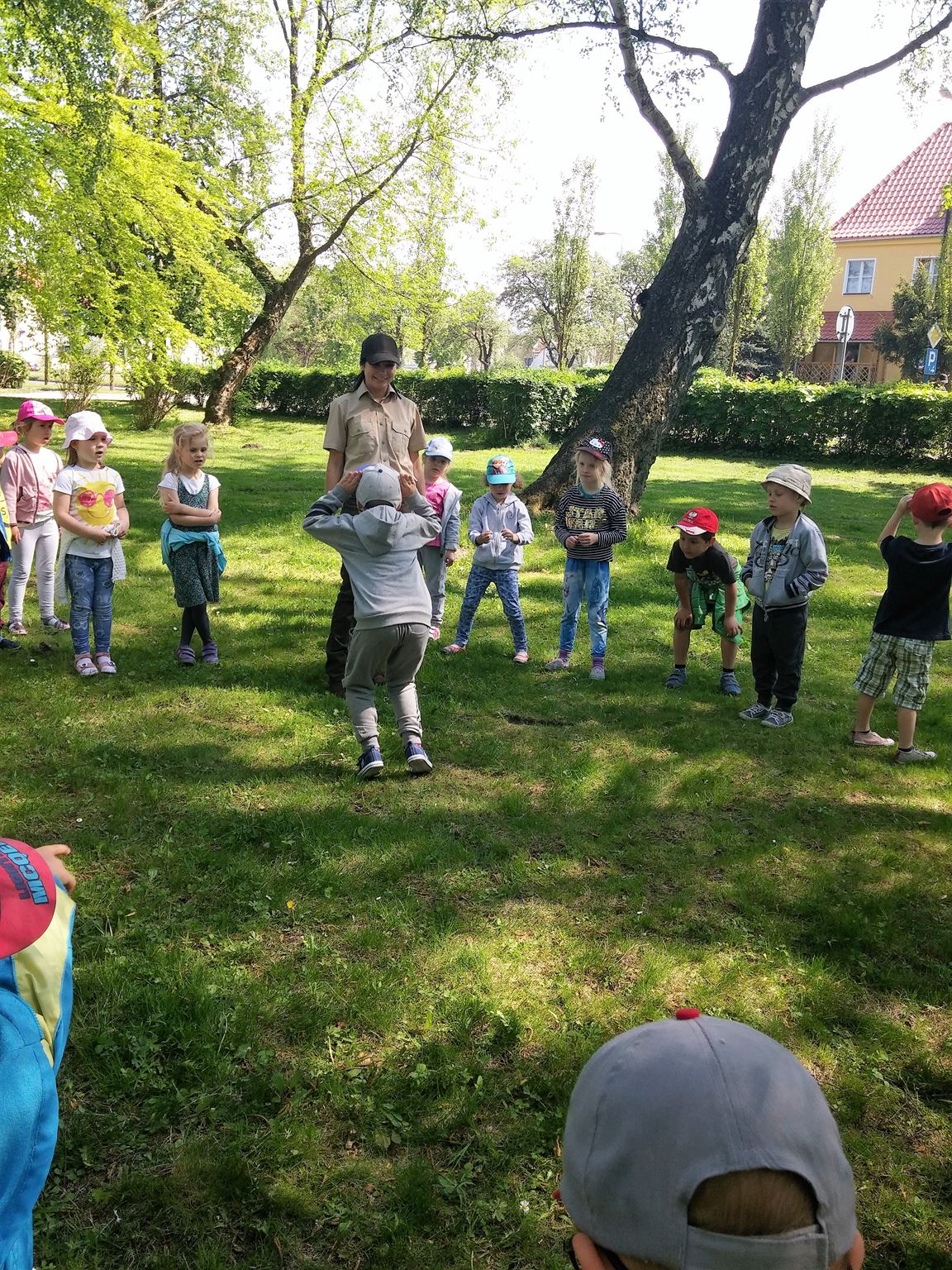 12 maja dzieci uczestniczyły w spotkaniu z Panią Leśnik – Katarzyną Klimek z Lasów Państwowych w Szczecinku. Wędrowaliśmy alejkami w parku poznając różne patki zamieszkujące ten ekosystem , obserwując budki lęgowe i naturalne dziuple dla ptaków, słuchaliśmy śpiewu ptaków, rozpoznawaliśmy i nazywaliśmy drzewa. Park to miejsce relaksu, odpoczynku, więc na koniec spotkania dzieci chętnie się bawiły a przy okazji utrwaliły zdobytą wiedzę.