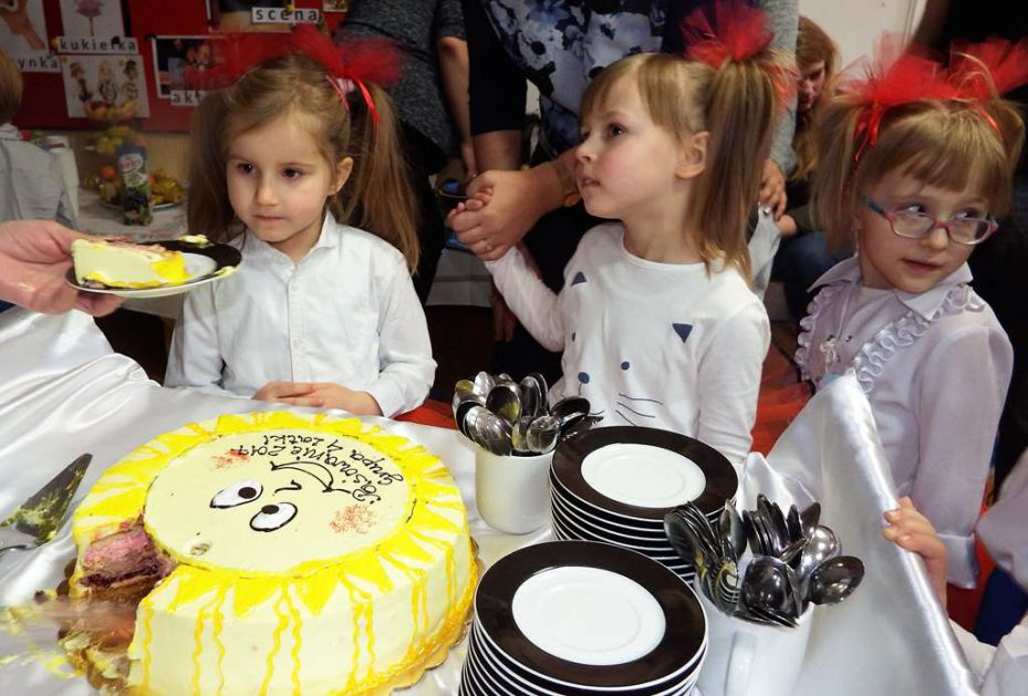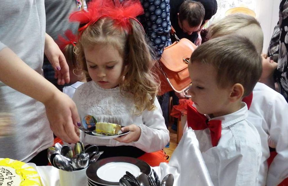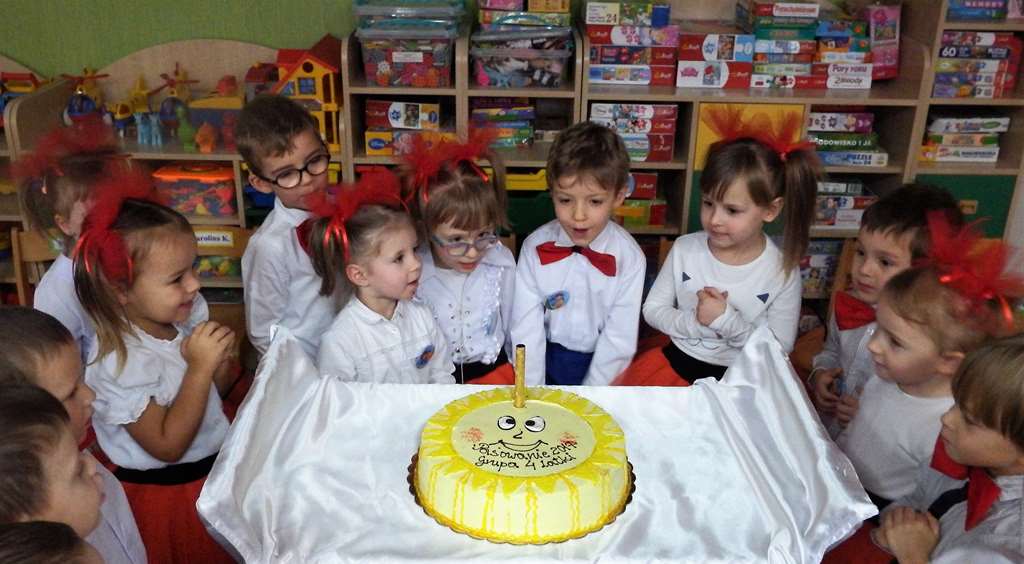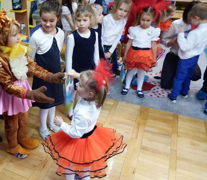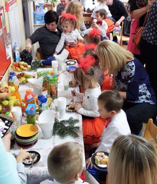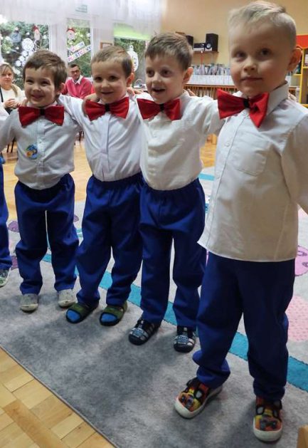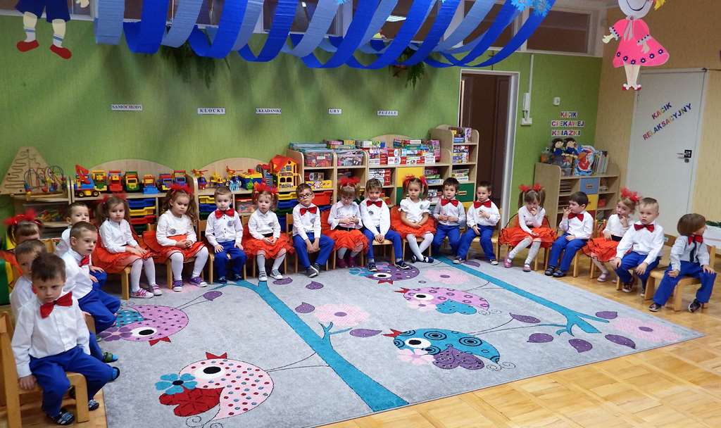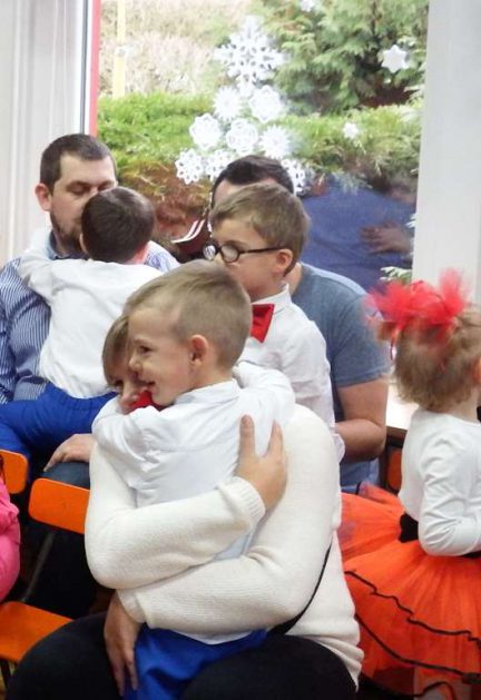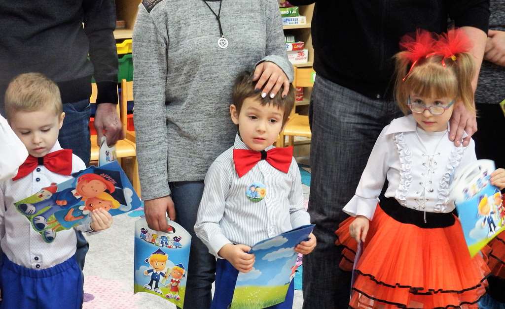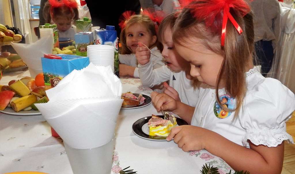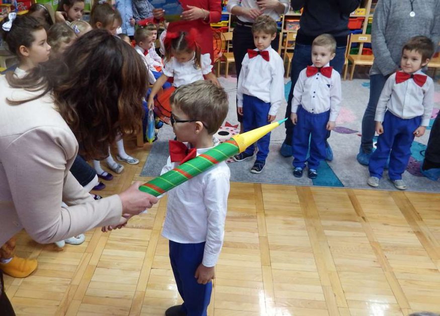 14 grudzień – kalendarz ważną datę wskazuje, bo Pani dyrektor niektóre 4 latki na przedszkolaki pasuje. Ale zanim się to stanie, każde dziecko musiało wykonać zadanie. Dzieci dzielnie się spisały, zatańczyły, zaśpiewały, na pytania odpowiadały, różne zagadki rozwiązywały. Rodzice też wykazać się musieli: zatańczyli i przysięgę złożyli. Dzieci obiecały być grzecznymi, dzielnymi przedszkolakami, więc Pani dyrektor wyjścia nie miała i na przedszkolaka dzieci pasowała. Uśmiech na buziach dzieci zagościł, bo dostały dyplom, odznakę i kuferek obfitości.