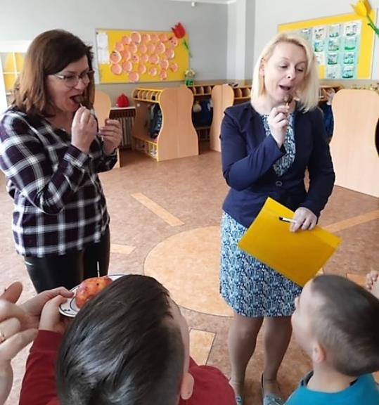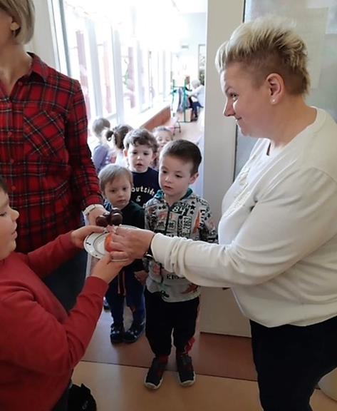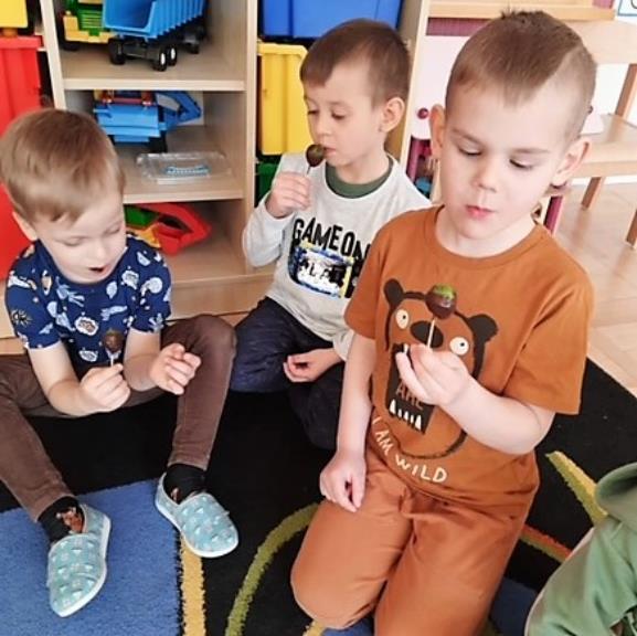 Były również inne dziwne informacje, które wprawiły niektórych w zdziwienie, ale zaraz pojawiał się uśmiech na twarzach, bo przecież w tym dniu możemy dowoli żartować i robić wesołe psikusy. 5 latki „H” skorzystały z okazji i życząc miłego dnia częstowały wszystkich „słodkościami?” – Czyżby? Udał się im prima aprilisowy smakołyk!