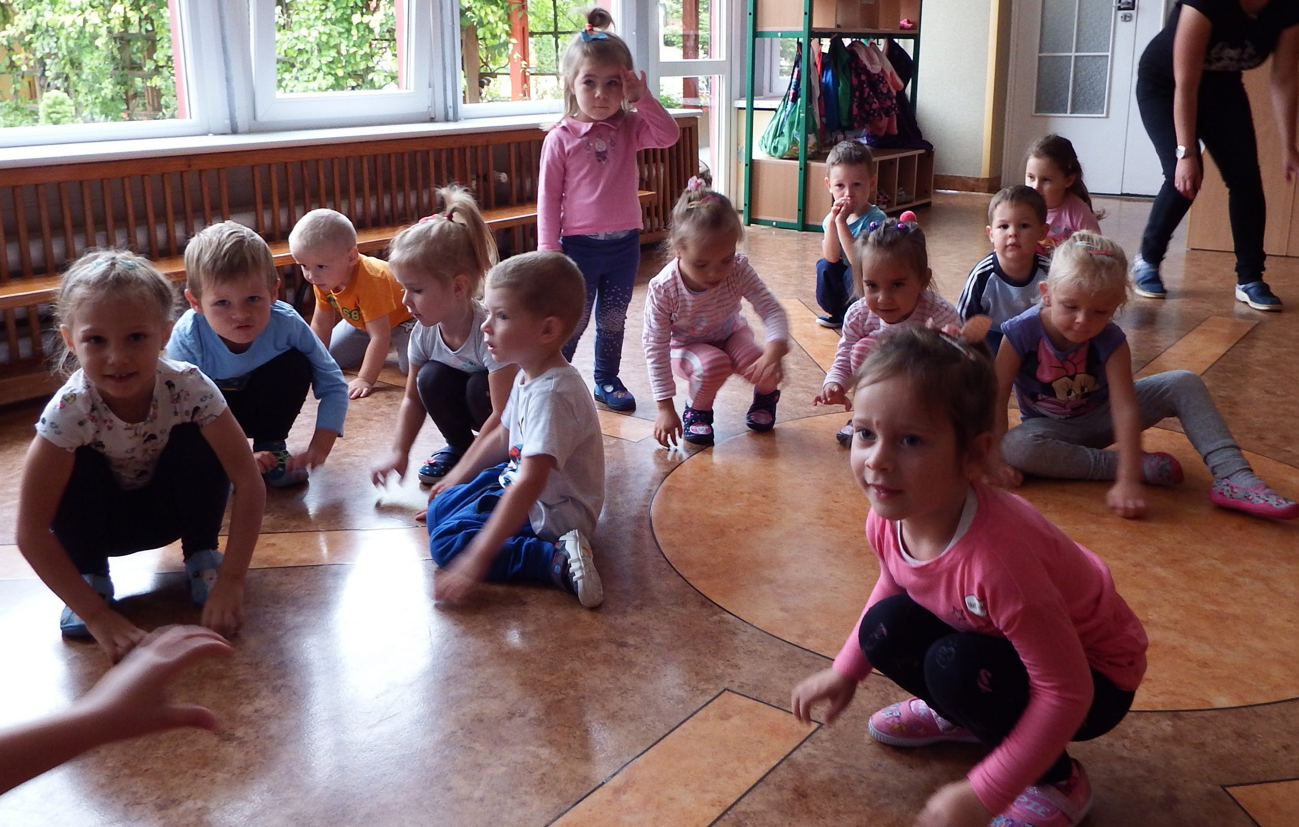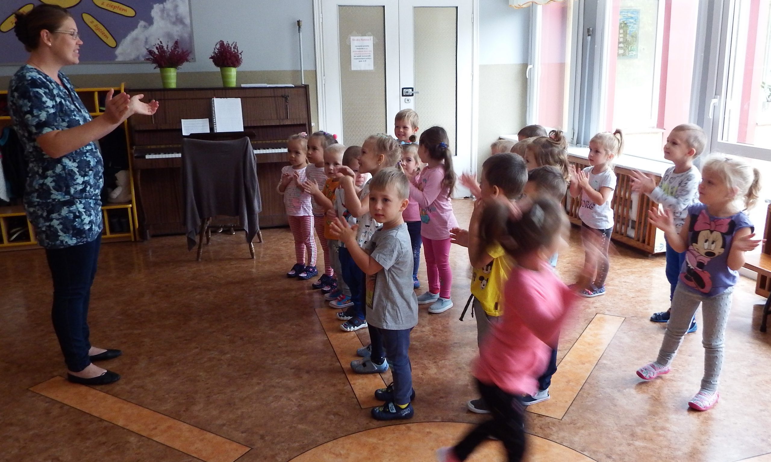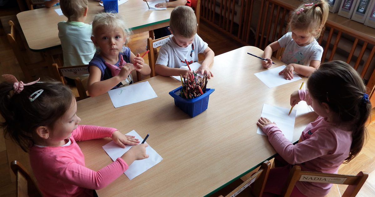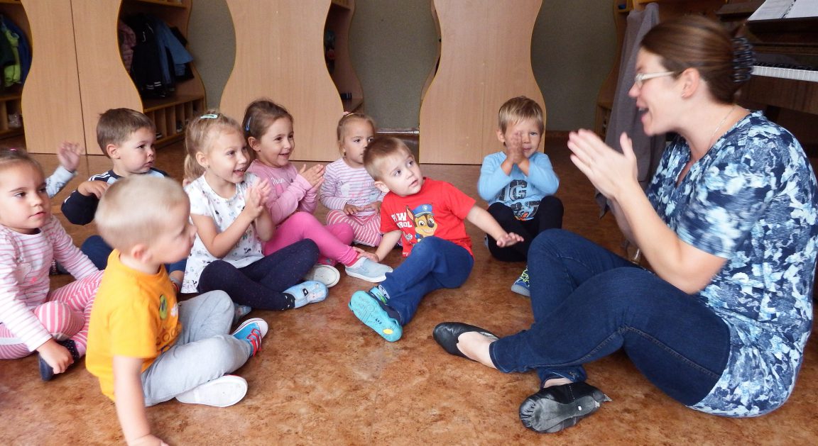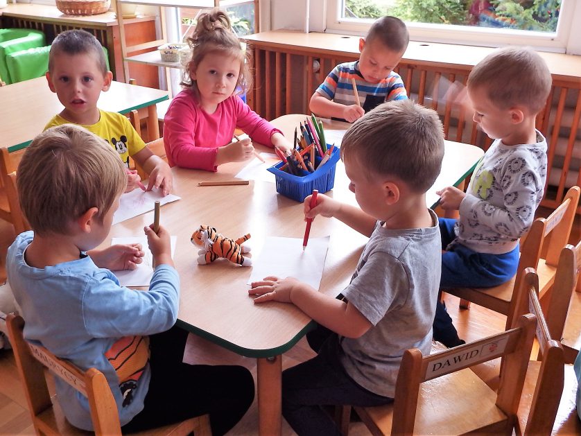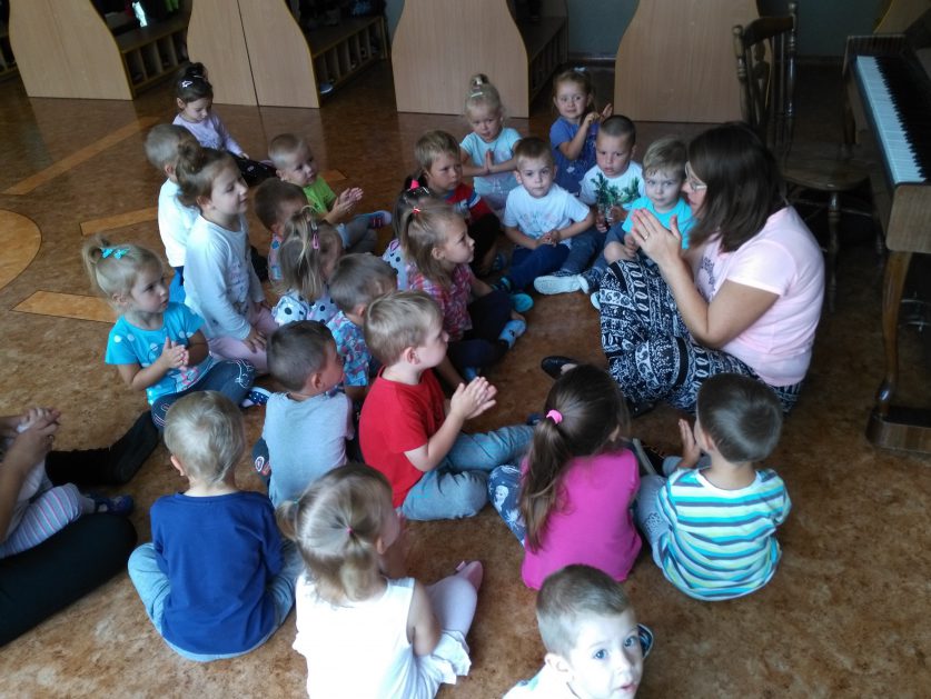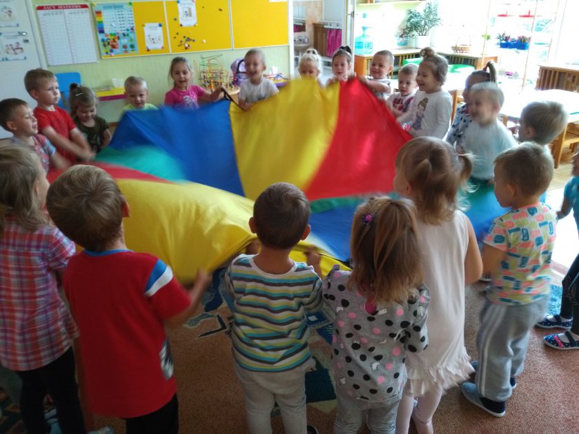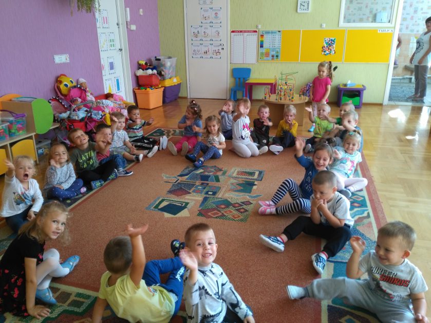 Pierwsze dni upływają nam na dobrej zabawie. Razem z naszą panią, nowymi kolegami i koleżankami wspólnie tańczymy, śpiewamy i robimy różne ciekawe rzeczy. Czasem troszkę płaczemy i tęsknimy za mamą, ale pani zawsze znajdzie sposób by nas pocieszyć. Nie mamy czasu na nudę, każdego dnia uczymy się czegoś nowego, mamy rytmikę, zumbę, język angielski. Każdy dzień witamy z uśmiechem, nikt nie jest sam i tak płyną przedszkolne dni!