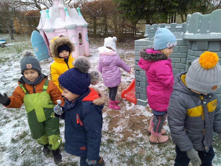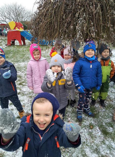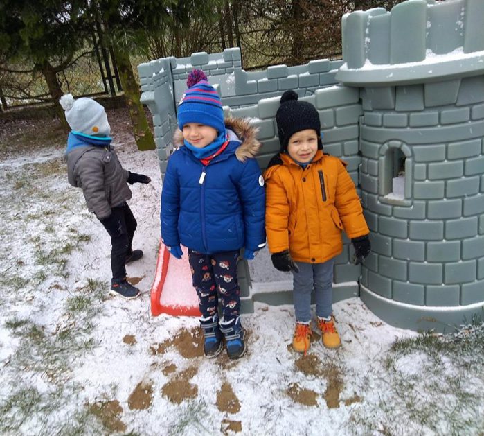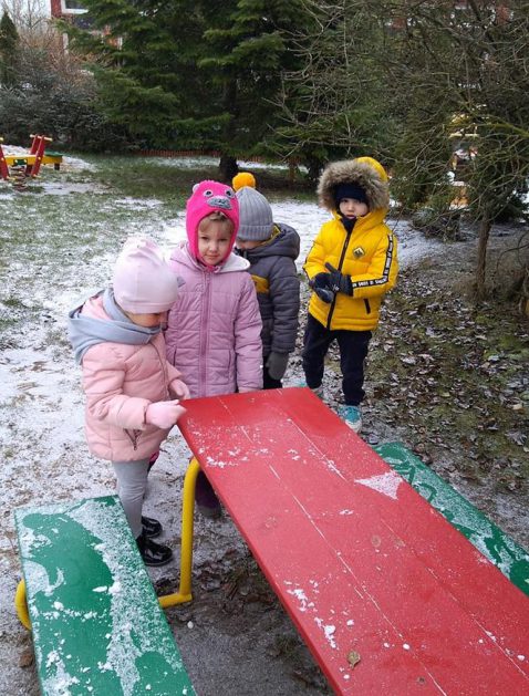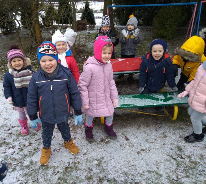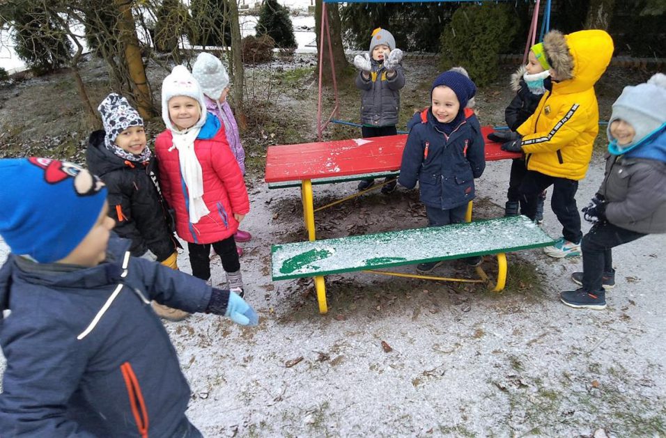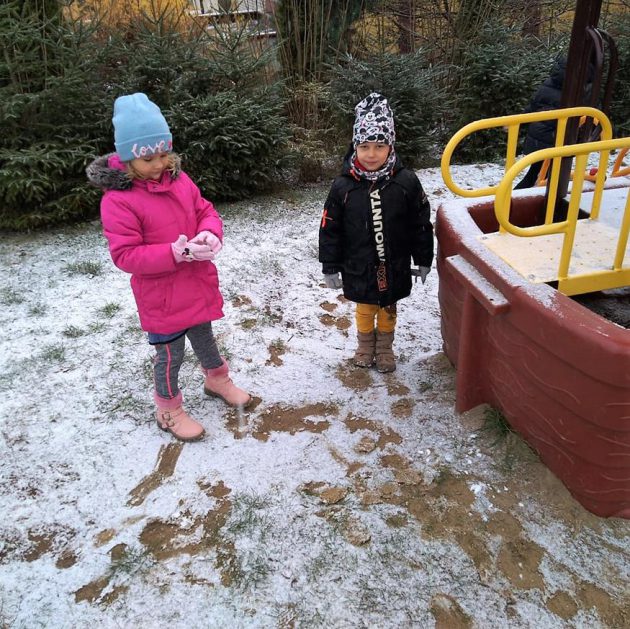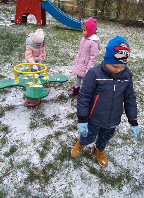 Pierwszy śnieg wywołał wiele radości, niestety było go zbyt mało żeby ulepić bałwanka i rzucać się śnieżkami. Jednak pełni nadziei czekamy na więcej białego puchu…
