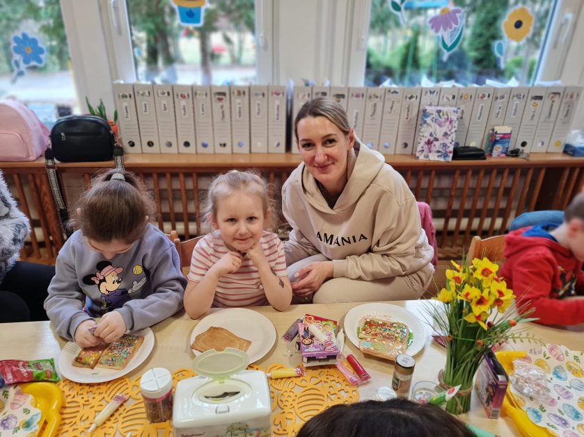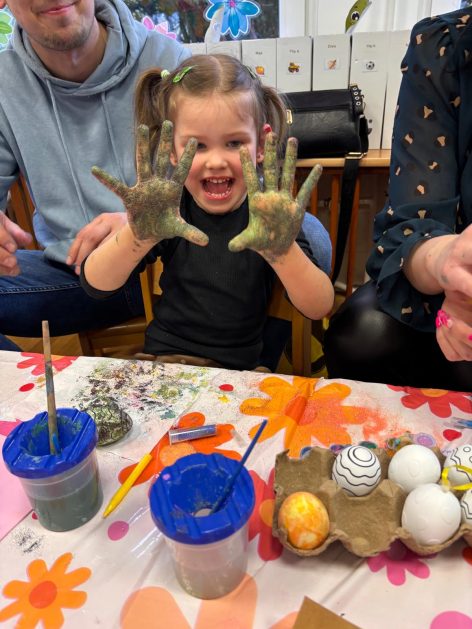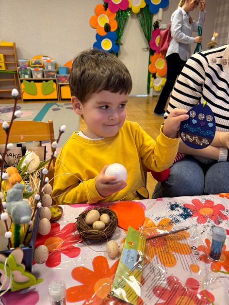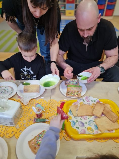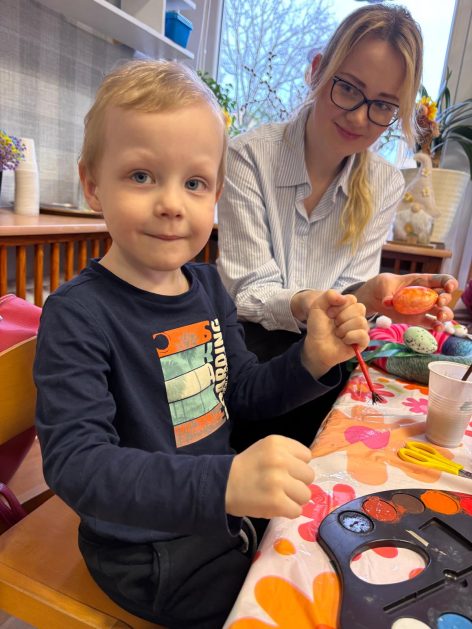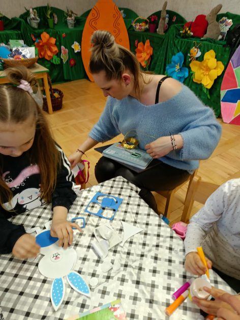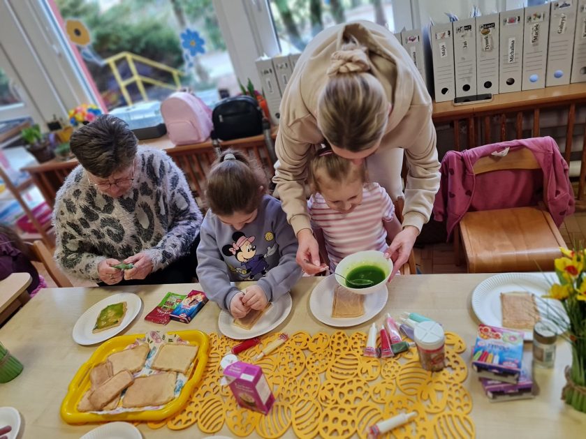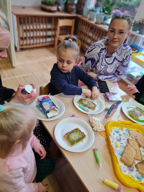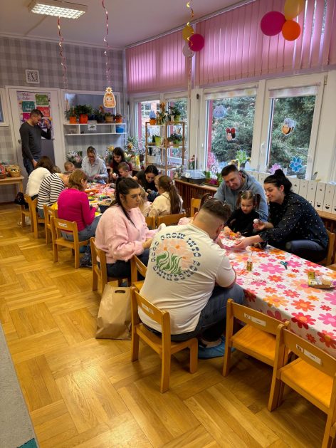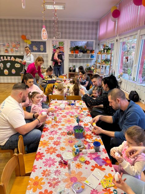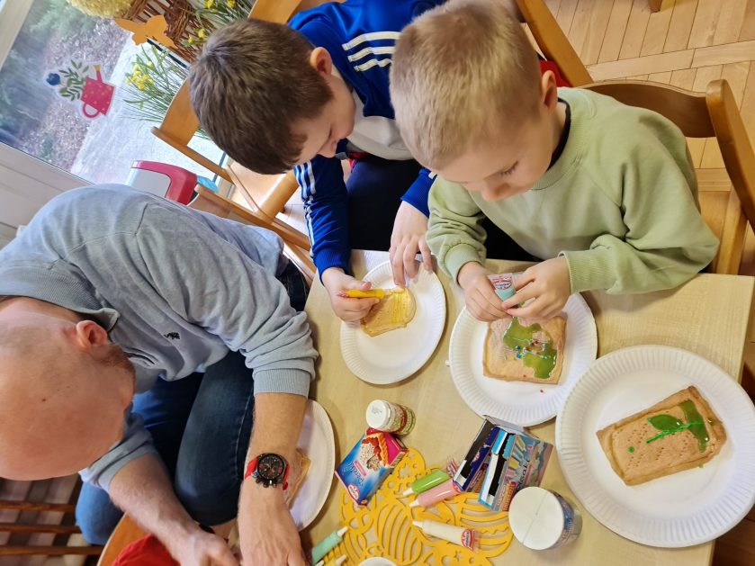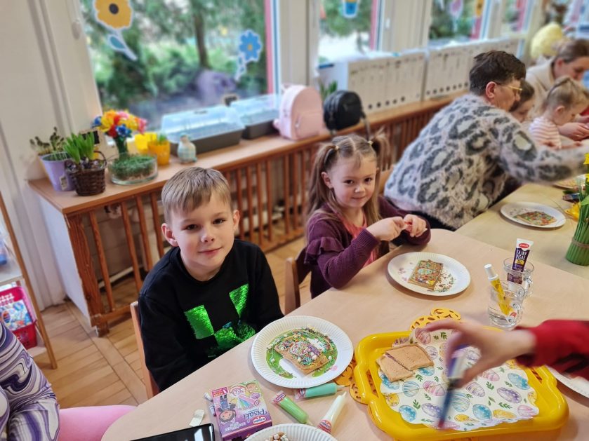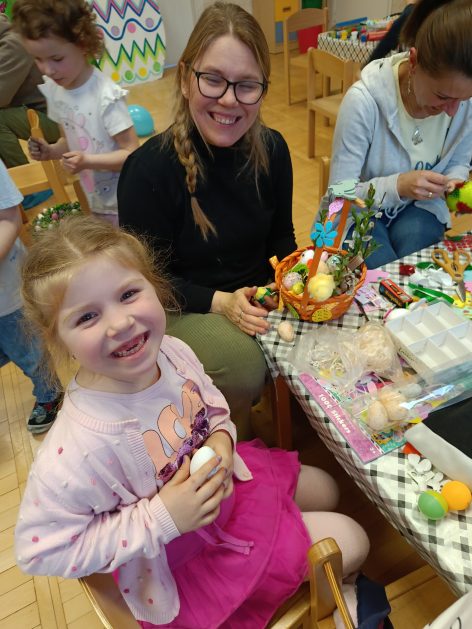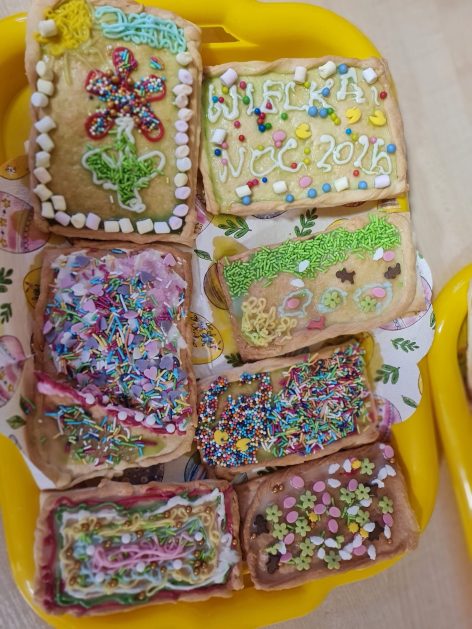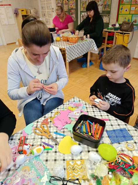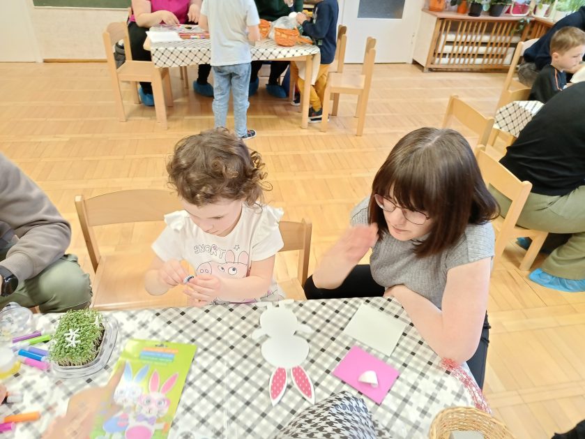 Tak niedawno witaliśmy Wiosnę, która przyniosła nam wyczekiwane ciepłe dni, pierwsze promienie słońca na pięknym, czystym niebie, tchnęła życie i obudziła całą przyrodę ….A tu już tuż, tuż zbliżają się wiosenne Święta Wielkanocne…Wraz ze Świętami w naszym przedszkolu rusza kiermasz świąteczny z którego dochód wspiera działalność szczecineckiego Hospicjum św. Franciszka z Asyżu. Przygotowując się do tego kiermaszu grupy 3, 4 i 5 latków zorganizowały warsztaty wielkanocne z rodzicami w przedszkolu, wszyscy zebrani z wielkim zaangażowaniem i kreatywnością wykonali różne ozdoby świąteczne. Spotkania takie są okazją do twórczej zabawy, ale przede wszystkim do wspólnego spędzenia czasu, zwolnienia codziennego tempa, są chwilą relaksu, rozmów i budowania więzi między dziećmi, rodzicami oraz nauczycielami.