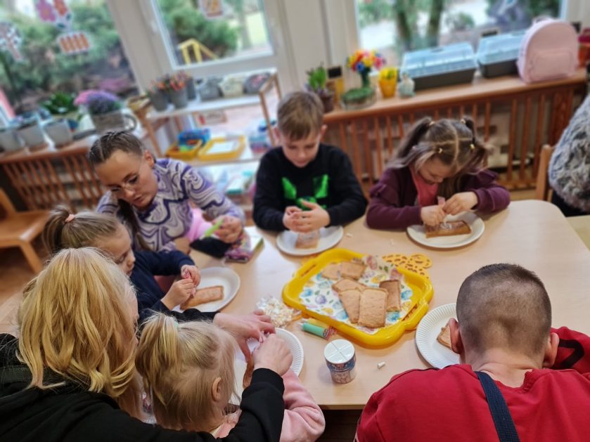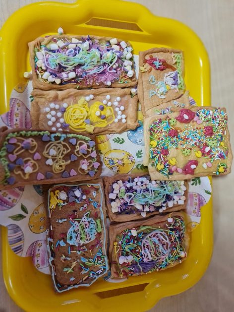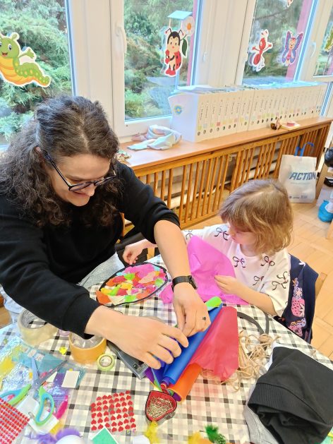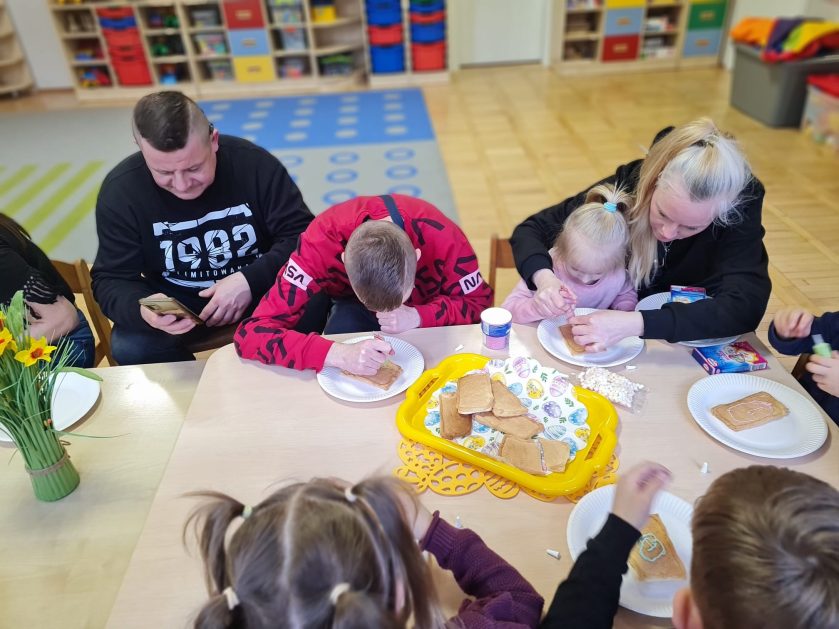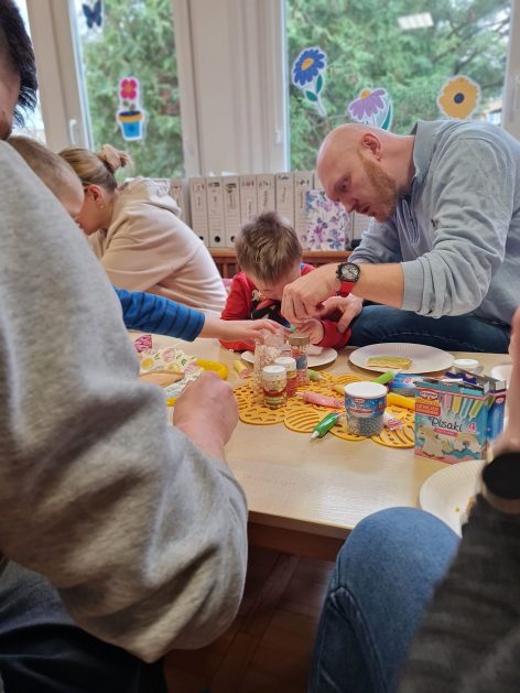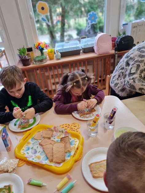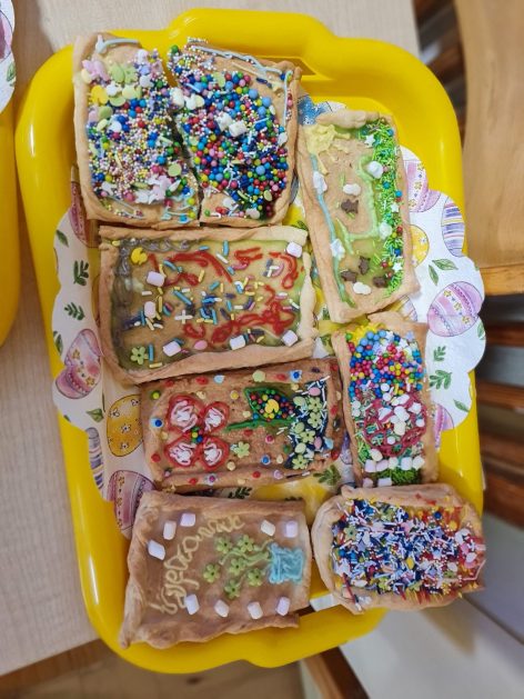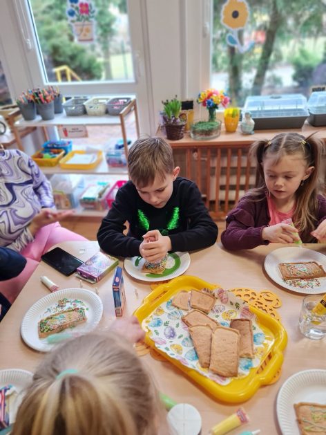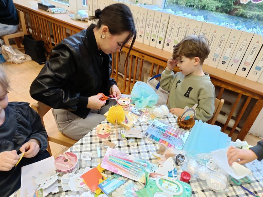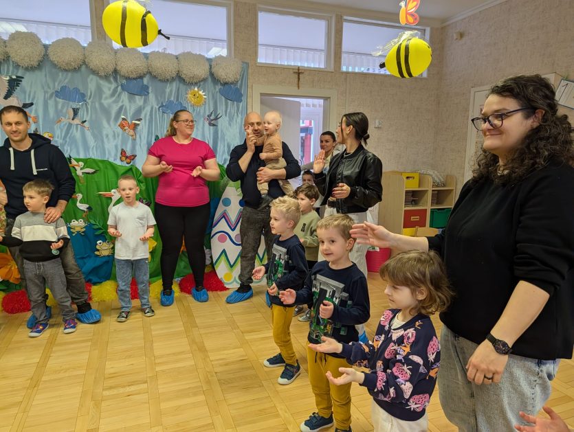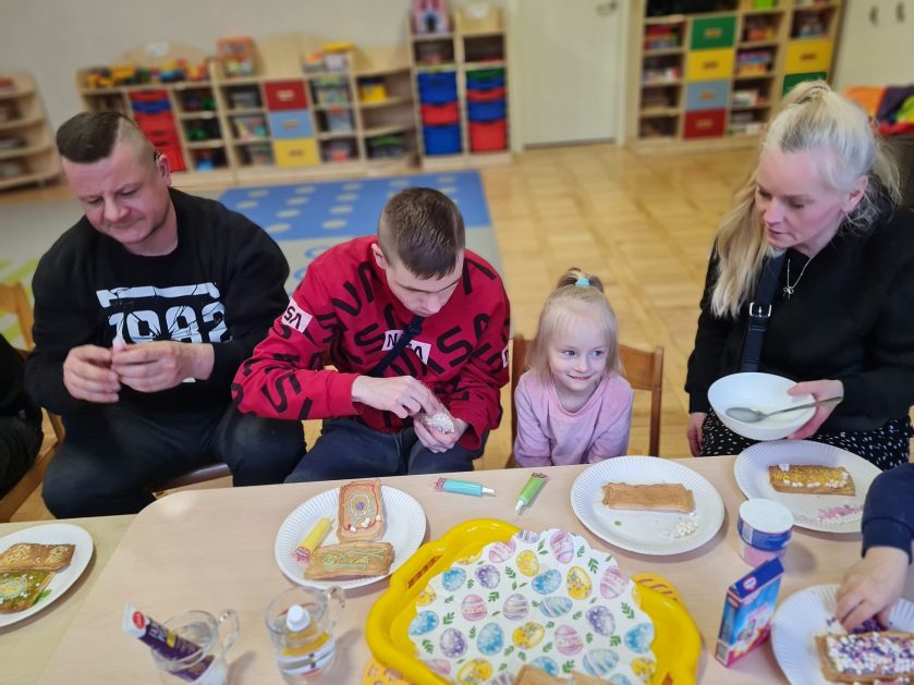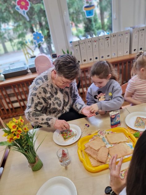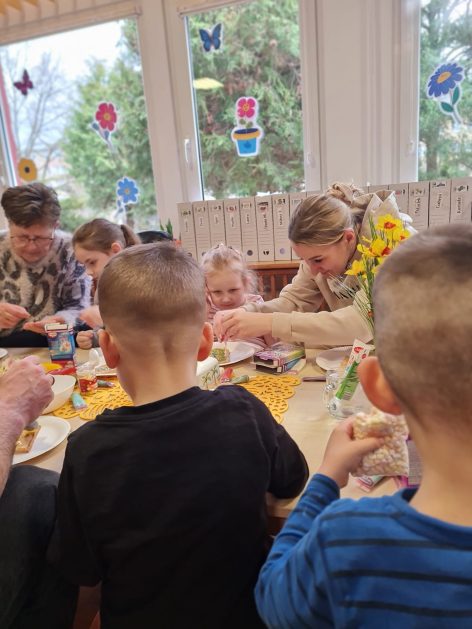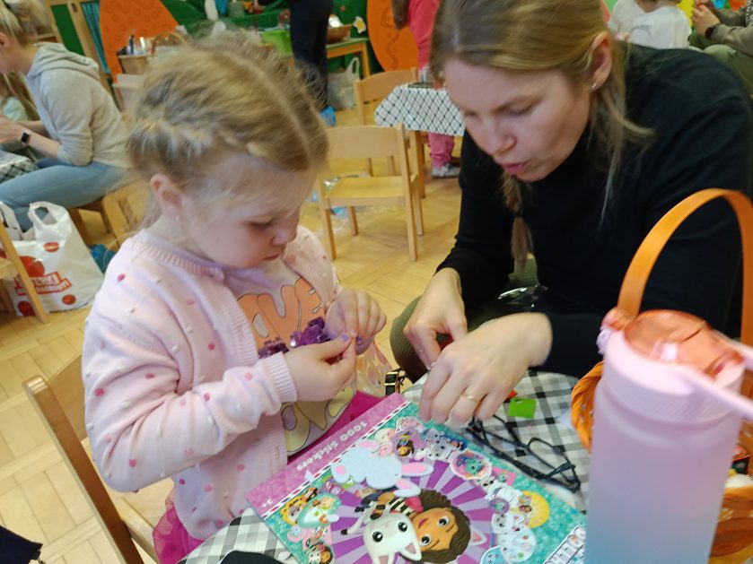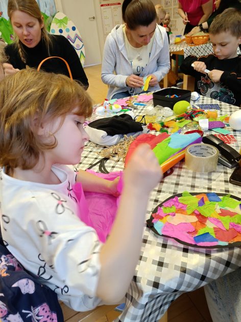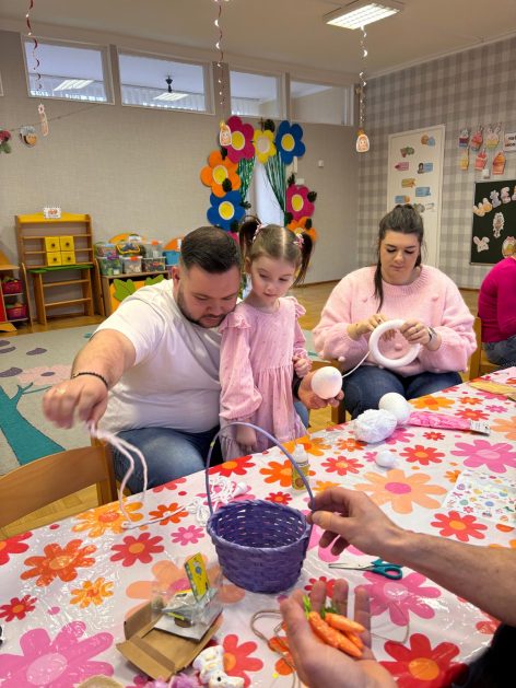 Tak niedawno witaliśmy Wiosnę, która przyniosła nam wyczekiwane ciepłe dni, pierwsze promienie słońca na pięknym, czystym niebie, tchnęła życie i obudziła całą przyrodę ….A tu już tuż, tuż zbliżają się wiosenne Święta Wielkanocne…Wraz ze Świętami w naszym przedszkolu rusza kiermasz świąteczny z którego dochód wspiera działalność szczecineckiego Hospicjum św. Franciszka z Asyżu. Przygotowując się do tego kiermaszu grupy 3, 4 i 5 latków zorganizowały warsztaty wielkanocne z rodzicami w przedszkolu, wszyscy zebrani z wielkim zaangażowaniem i kreatywnością wykonali różne ozdoby świąteczne. Spotkania takie są okazją do twórczej zabawy, ale przede wszystkim do wspólnego spędzenia czasu, zwolnienia codziennego tempa, są chwilą relaksu, rozmów i budowania więzi między dziećmi, rodzicami oraz nauczycielami.