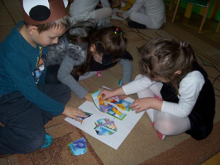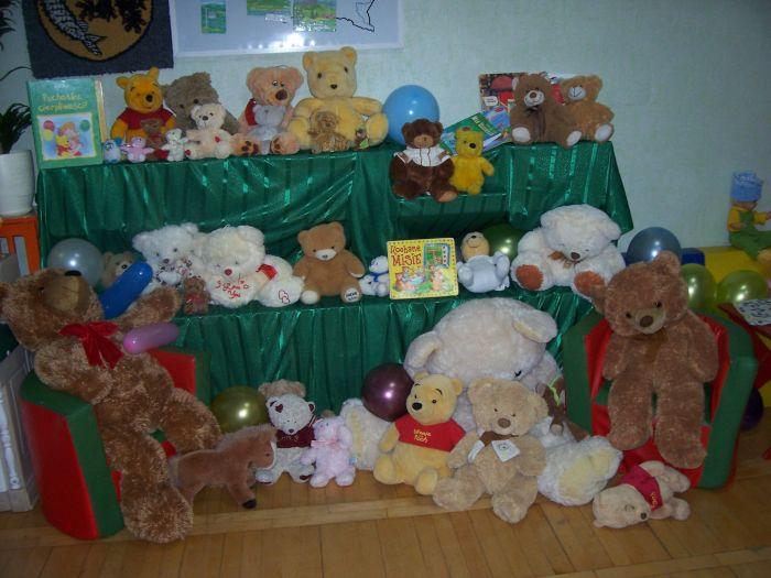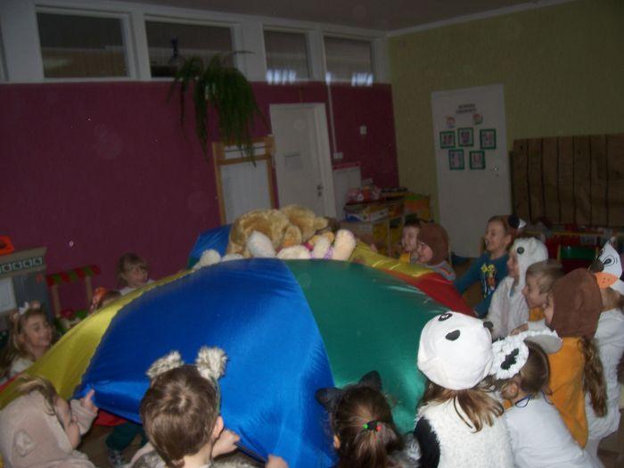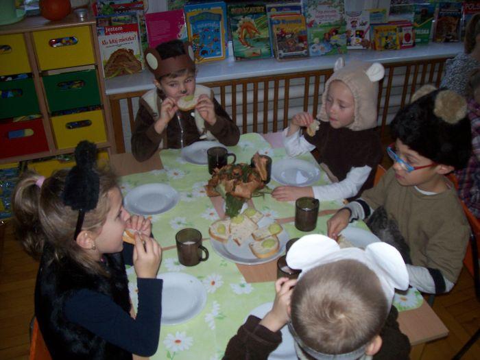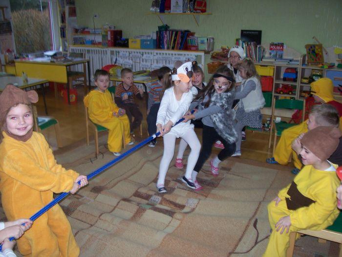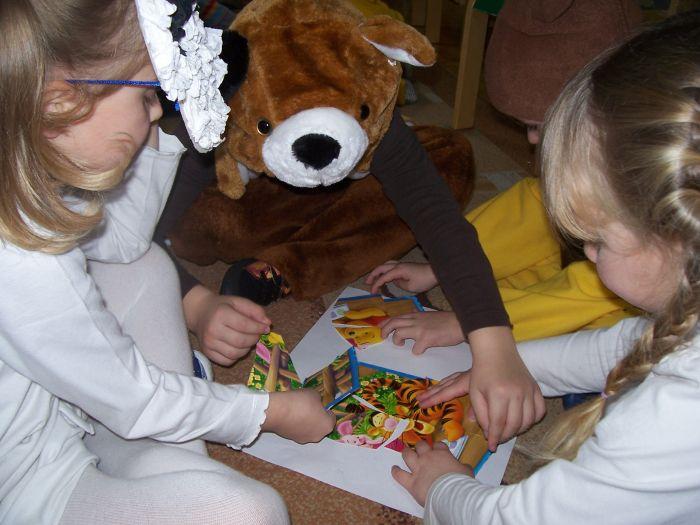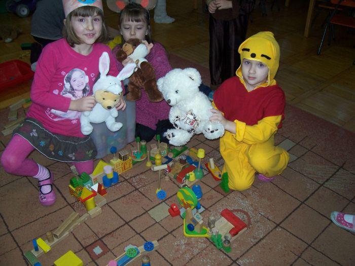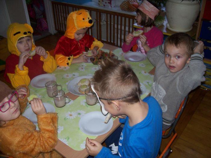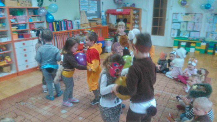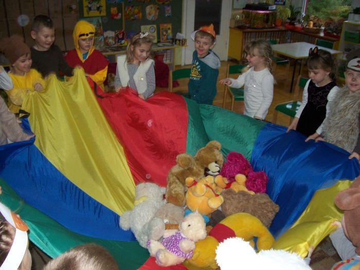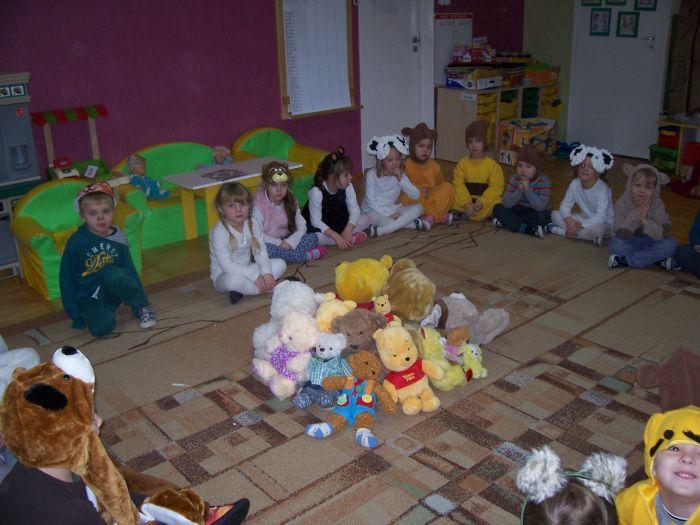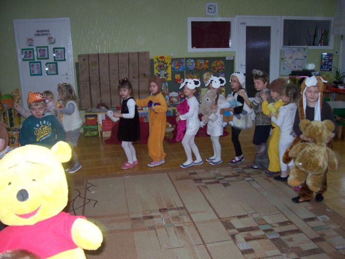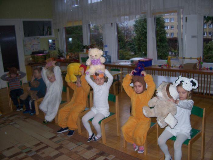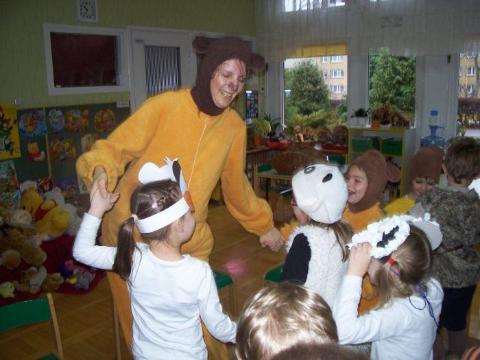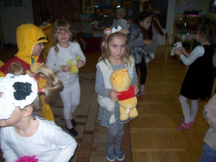 Już po raz kolejny w naszym przedszkolu zrobiło się misiowo i przytulnie za sprawą przebranych w pomysłowe stroje misiów naszych przedszkolaków. Dziś w naszym przedszkolu dzieci z każdej grupy bawiły się do misiowych przebojów, brały udział w wielu konkurencjach jak: zagadki smakowe wśród których nie zabrakło ulubionego przysmaku wszystkich misiów, czyli miodku. Były też zagadki słowne, odkrywanie i odgadywanie misiów z bajek, taniec z balonem, czy kolorowanie obrazka misia na czas. Między kolejnymi zadaniami były oczywiście zabawy przy muzyce. Odwiedził nas również gość- miś ze słodką niespodzianką.