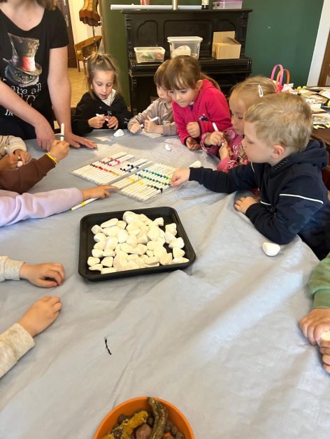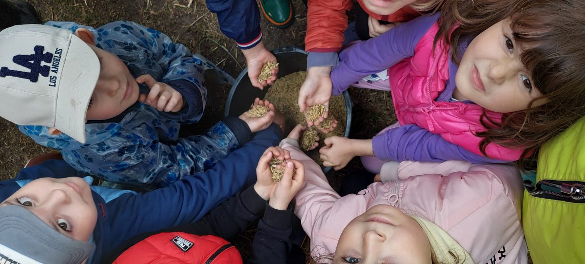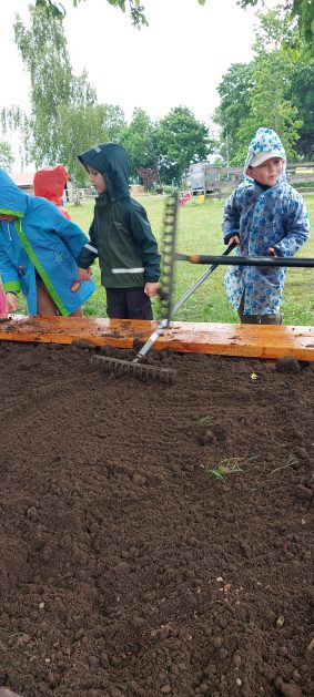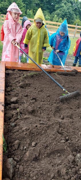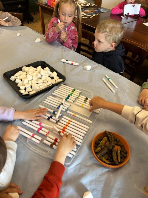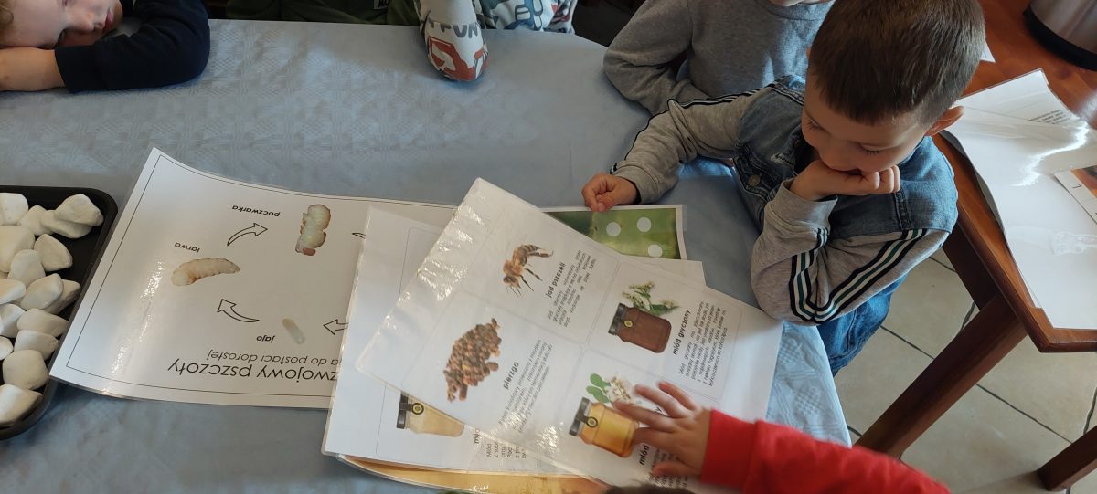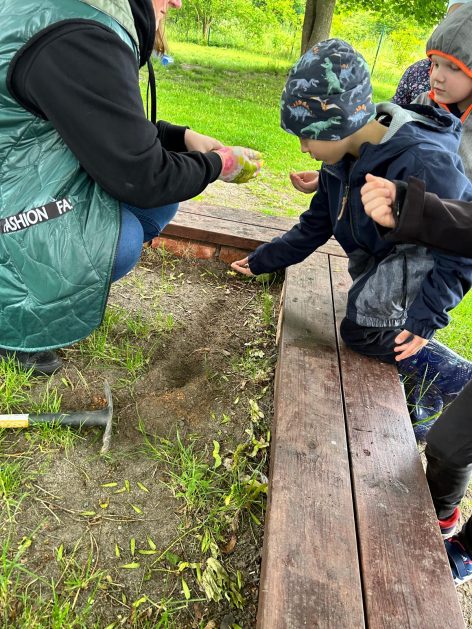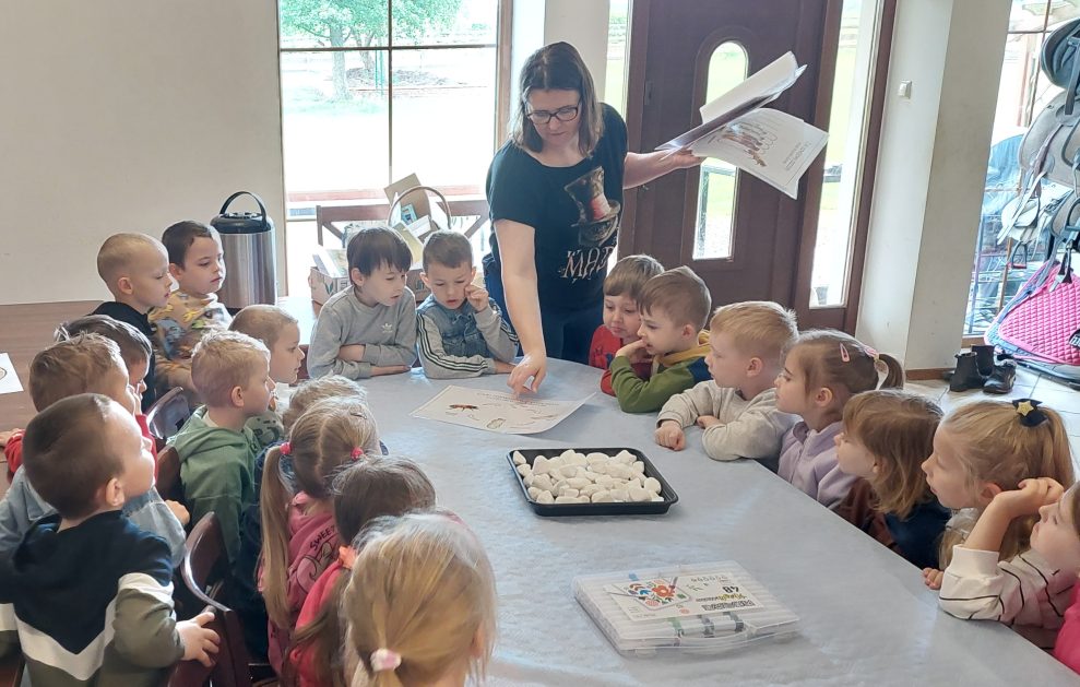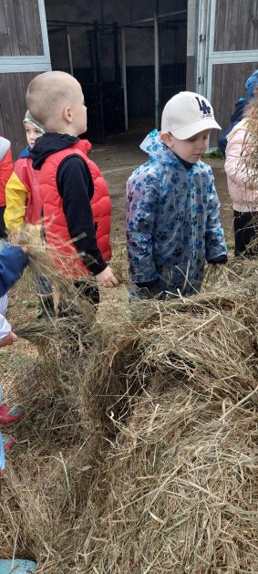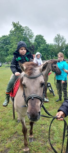 30 maja 5 latki A i P odwiedziły Lipowy Dwór, gdzie brały udział w ciekawych warsztatach przyrodniczych, których celem była odpowiedź na pytanie: „Po co są pszczółki na świecie?” Dzieci poznały fascynujący świat owadów, ich rolę w zapylaniu roślin i procesie produkcji miodu. Miały uwrażliwić na piękno otaczającej nas przyrody oraz uzmysłowić jak bardzo nasze życie związane jest z pszczołami. Takie spotkania w biskości przyrody to ciekawy sposób na rozwijanie świadomości ekologicznej u dzieci a także pokazanie piękna i znaczenia przyrody, której częścią jesteśmy. Przy okazji również dzieci poznały z bliska pracę jaką wykonuje się podczas opieki nad konikami. Wizyta w stajni stymulowała zmysły węchu, dzieci wąchały siano, słomę, szykowały owies dla koni. A pod drzewami, grabiły ziemię przygotowując teren do zasiania miododajnych roślin. Na koniec zasłużona nagroda – ognisko!
