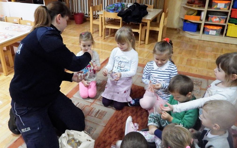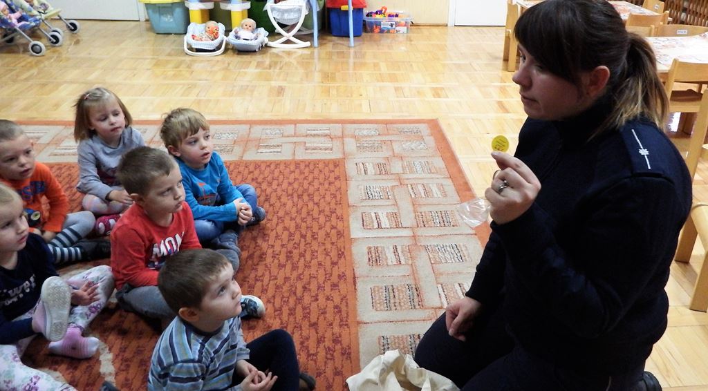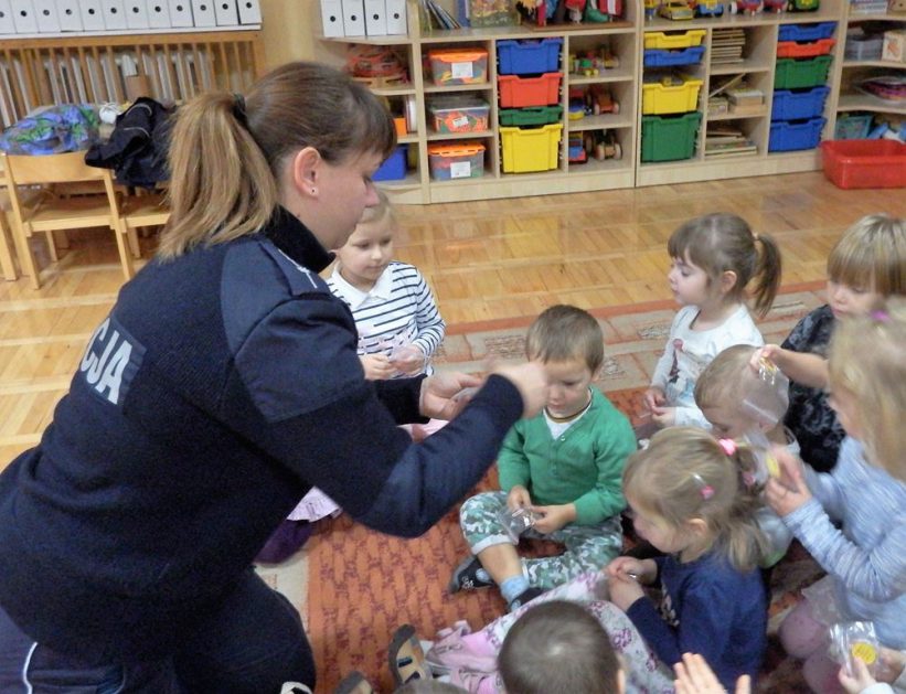 Dzieci z grupy 3-4-latków odwiedziła p. policjantka z Komendy Powiatowej w Szczecinku .