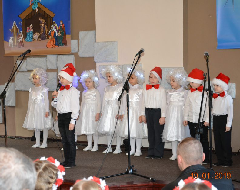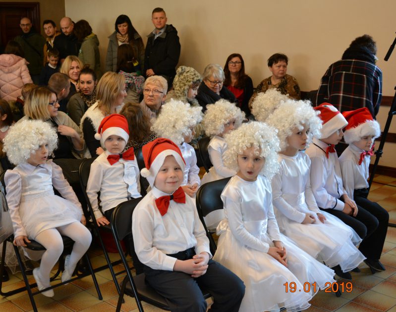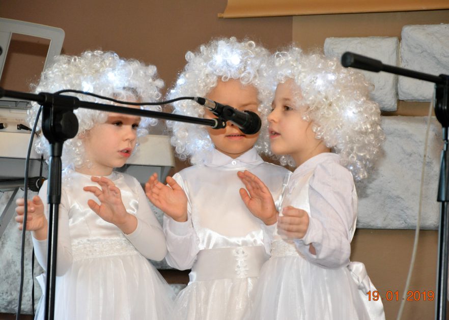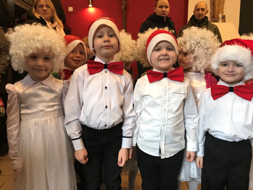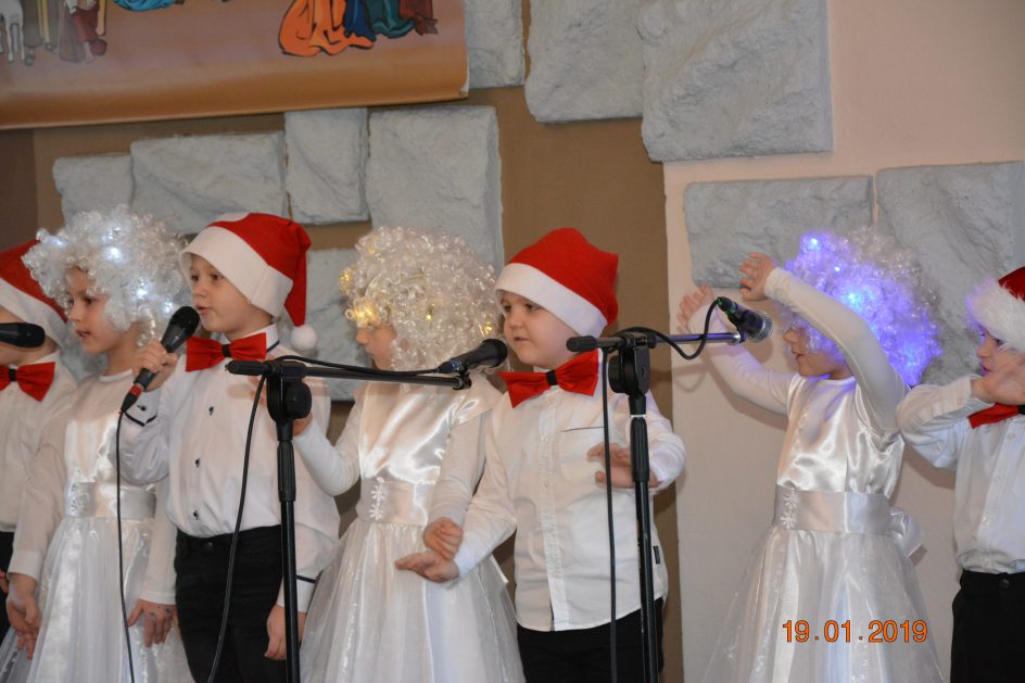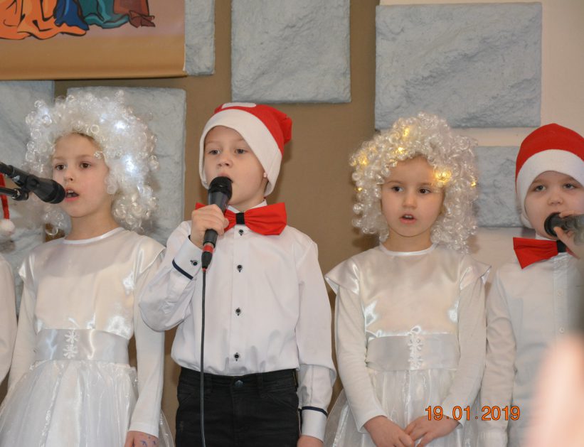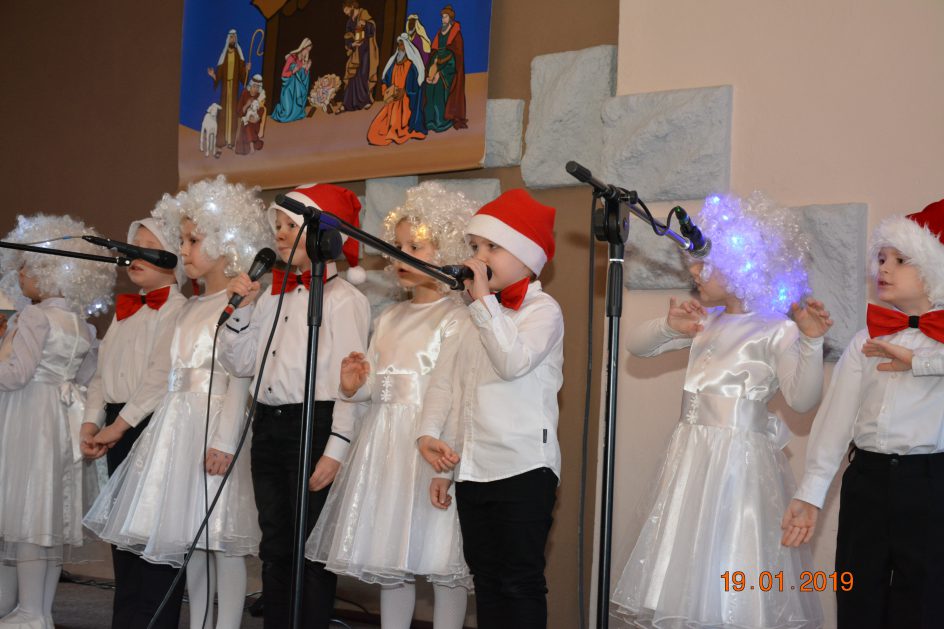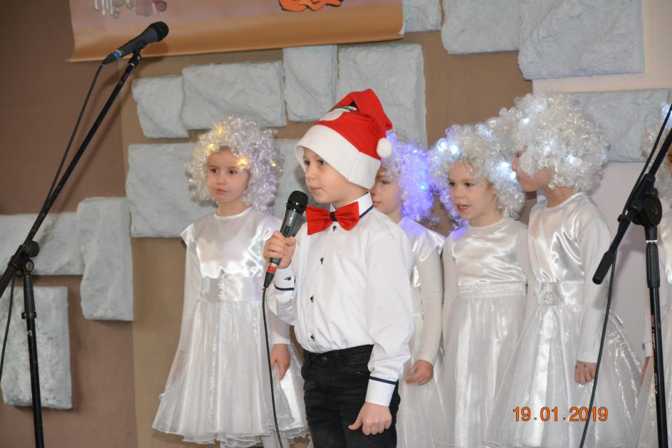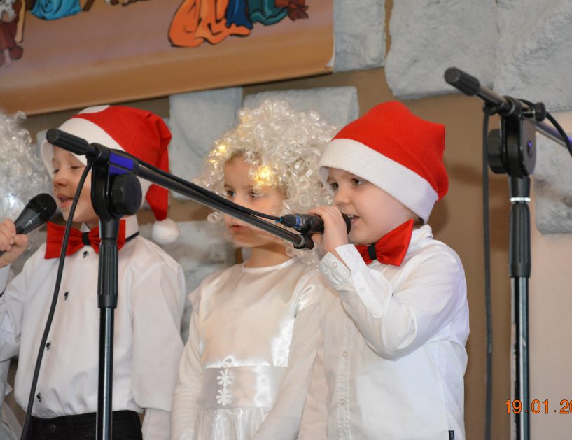 19 stycznia br 5 latki pierwszy raz wzięły udział w XXI Przeglądzie Kolęd i Pastorałek przy parafii Św. Ducha w Szczecinku. W kategorii wokalista – śpiewał Mieszko J. „Najcudowniejsze święta” i w kategorii zespół – śpiewały wszystkie dzieci pastorałkę „Leć kolędo w świat”. Wybór był trudny, nie było przegranych, wszyscy zajęli I miejsce. Mimo, że to już styczeń i święta za nami, miło było słuchać brzmienia nastrojowych kolęd i pastorałek . Ta szczytna idea kultywowania polskiej tradycji śpiewania kolęd i pastorałek nie tylko w kościele ale również u nas w przedszkolu wzbogaca doświadczenia dzieci, rozwija indywidualne zdolności wokalne, muzyczne.