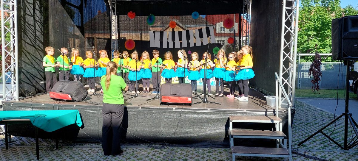 17 maja po południu 6 latki występowały gościnnie na festynie promującym rozpoczęcie rekrutacji do Szkoły Muzycznej Ii II st. im. Oskara Kolberga w Szczecinku . Dzieci pod kierunkiem Pani Kasi, która prowadzi w naszym przedszkolu rytmikę zaprezentowały instrumentację do utworu Carmen Suite No.2 Habanera. Wydarzenie jak zawsze miało za zadanie zachęcić do wstąpienia w progi popularnego Muzyka. Wśród przedszkolaków na pewno znajdą się chętni, aby rozwijać swoje zdolności muzyczne. Po występie czekała na dzieci moc atrakcji…