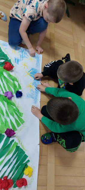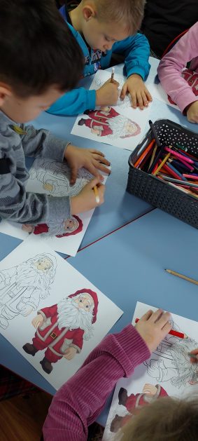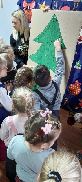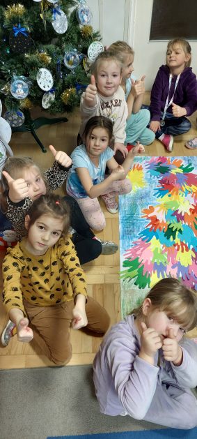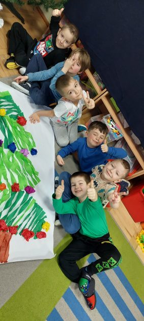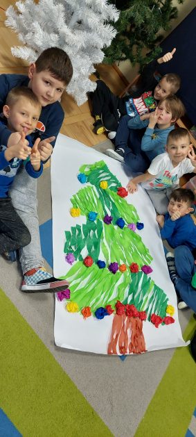 W tym czasie  u 6 latków dużo się działo. Rozmawialiśmy o naszych rodzinach, przygotowaniach do świąt, o tradycjach związanych  z Wigilią. Poznawaliśmy opowiadania, wiersze i piosenki związane ze Świętami Bożego Narodzenia, słuchaliśmy i śpiewaliśmy kolędy, tworzyliśmy dekoracje i różne prace plastyczne. Wszystko to ma wpływ na odbieranie przez dziecko wartości etycznych i rodzinnych, jego rozwój emocjonalny i społeczny, dlatego też przedszkole jako drugi dom kultywuje tradycje Świąt Bożego Narodzenia poprzez zabawy , uroczystości i zajęcia nierozłącznie związane z tradycjami świątecznymi.