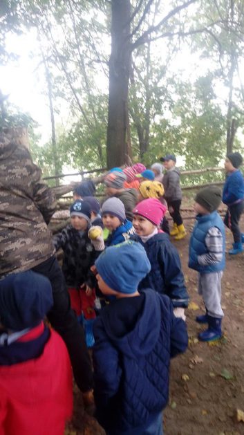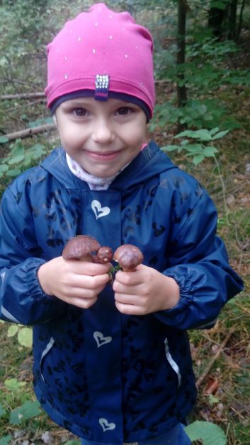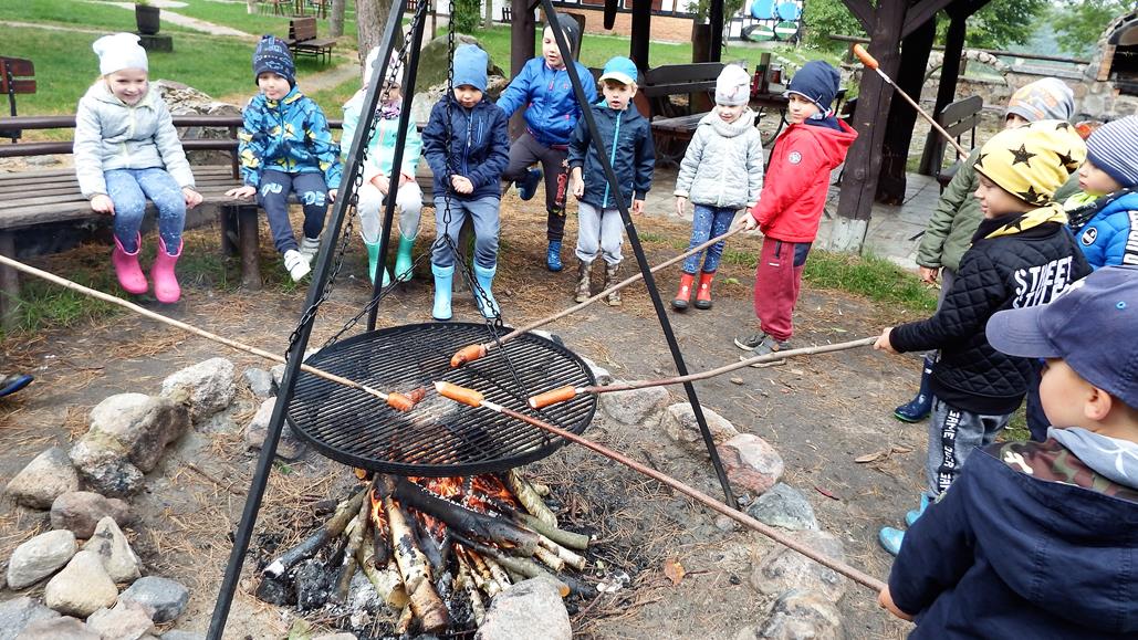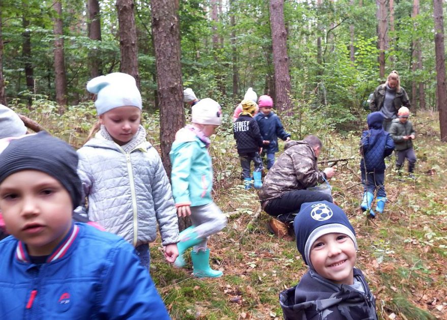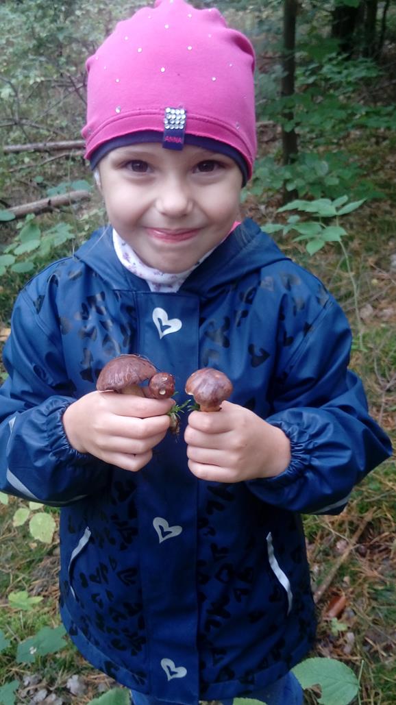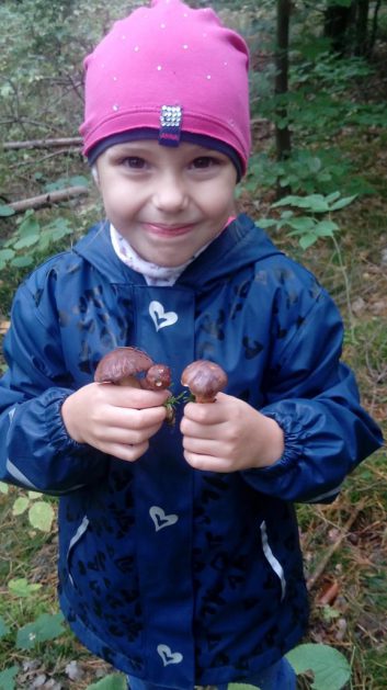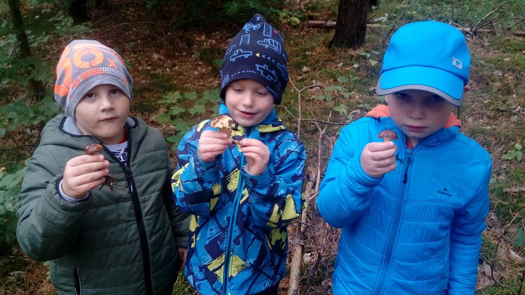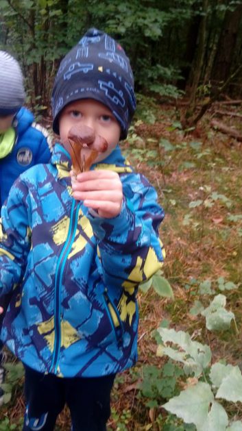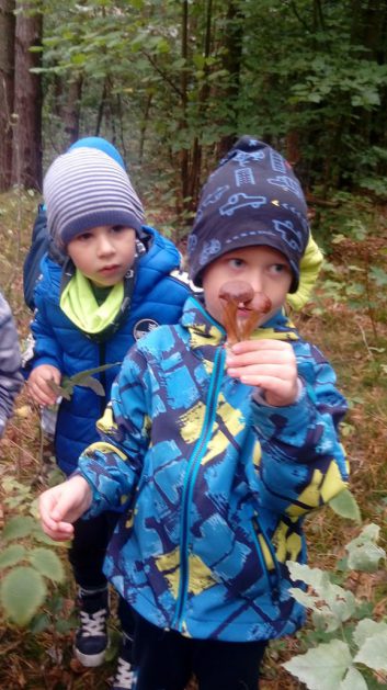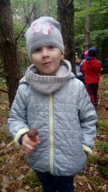 5 latki odwiedziły malownicze miejsce nad jeziorem Wielimie – Ranczo Panderossa. Miejsce jakże urokliwe, otoczone lasami, z obfitością zwierzyny i runa leśnego. Dzieci miały możliwość bezpiecznie wybrać się do lasu na grzybobranie. Pod czujnym okiem Pana Garbackiego (tata Kuby), szukały jadalnych grzybów. Jak się okazało nazbierały spory kosz podgrzybków i borowików. Co daje dzieciom taki kontakt z naturą? To doskonały moment, w którym nie tylko słyszą otaczający mikro- i makroświat, ale również swój własny głos wewnętrzny. Czują zapach czystego powietrza, poprzez dotyk budują personalną relację z tym, co wokół. I w końcu kontakt z naturą pozwala się dzieciom wyciszyć.