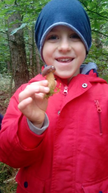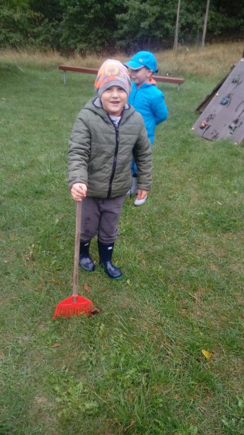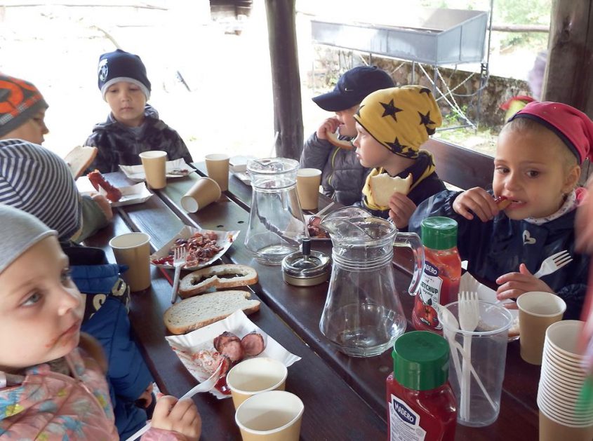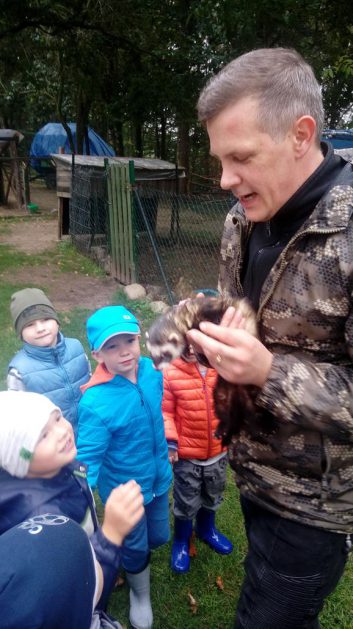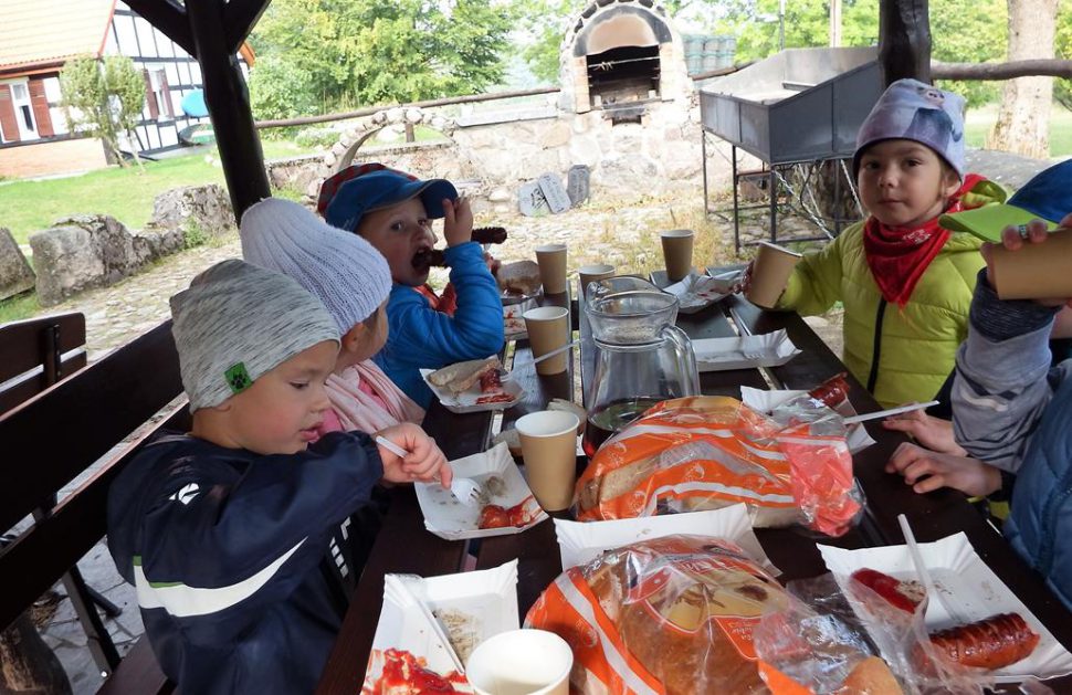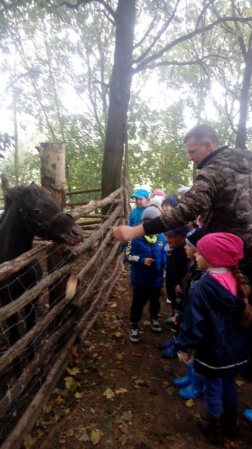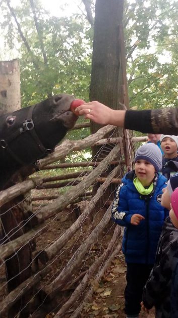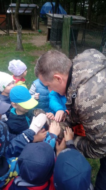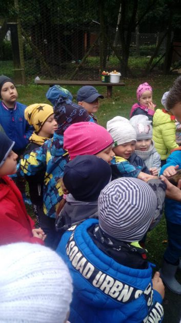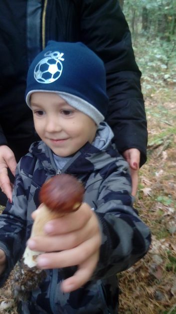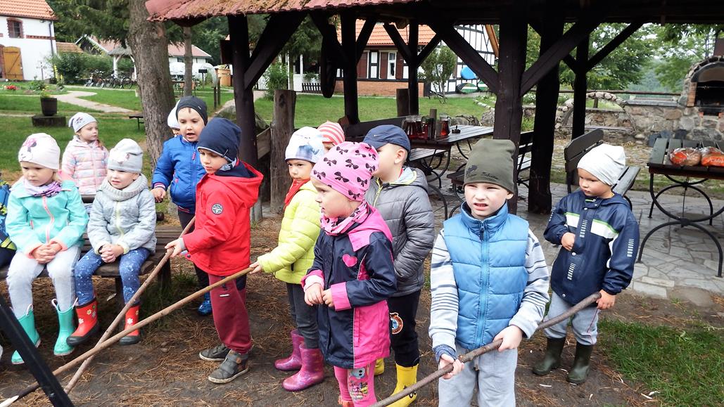 5 latki odwiedziły malownicze miejsce nad jeziorem Wielimie – Ranczo Panderossa. Miejsce jakże urokliwe, otoczone lasami, z obfitością zwierzyny i runa leśnego. Dzieci miały możliwość bezpiecznie wybrać się do lasu na grzybobranie. Pod czujnym okiem Pana Garbackiego (tata Kuby), szukały jadalnych grzybów. Jak się okazało nazbierały spory kosz podgrzybków i borowików. Co daje dzieciom taki kontakt z naturą? To doskonały moment, w którym nie tylko słyszą otaczający mikro- i makroświat, ale również swój własny głos wewnętrzny. Czują zapach czystego powietrza, poprzez dotyk budują personalną relację z tym, co wokół. I w końcu kontakt z naturą pozwala się dzieciom wyciszyć.