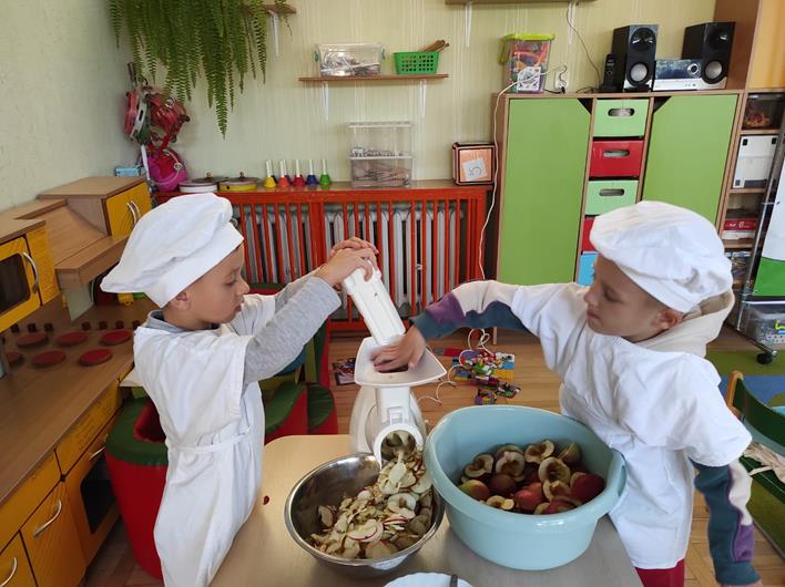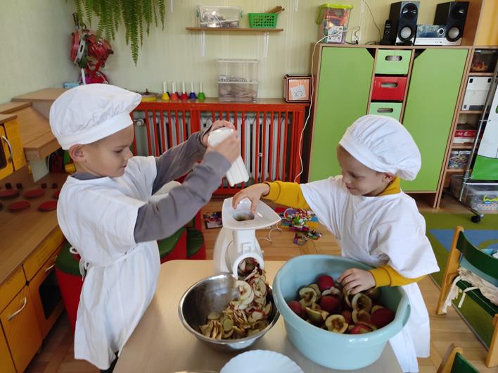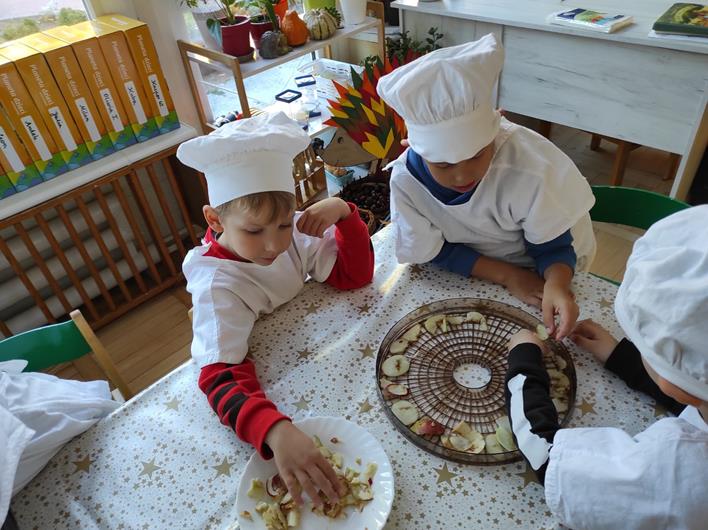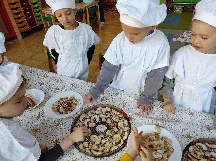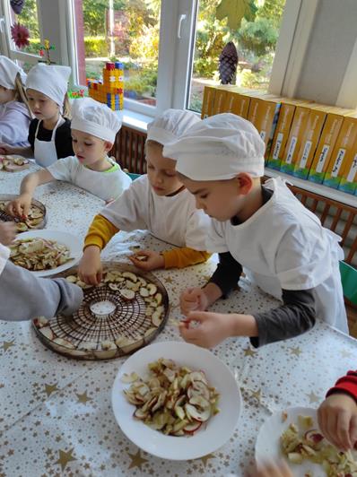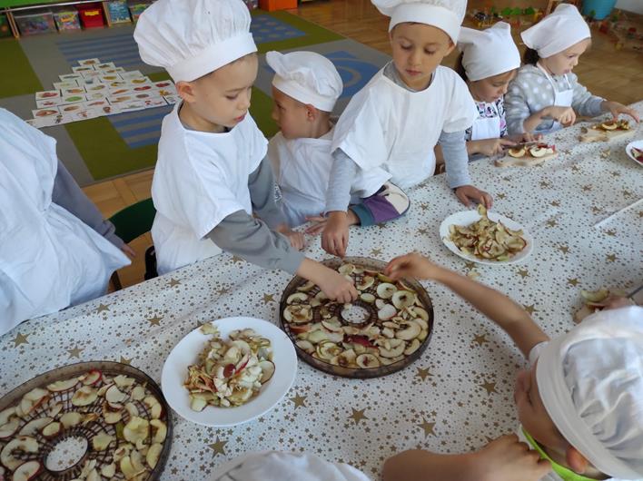 Grunt to zdrowie, każdy powie, więc chipsy też muszą być Eko, dlatego 6 latki zrobiły jabłkowe chipsy. Uświadomienie dzieciom zdrowego odżywiania a szczególnie przekąsek, nie jest trudne. Najsmaczniejsze są wtedy, gdy przygotują je dzieci samodzielnie. Krojenie, suszenie… proces robienia chipsów nie jest już zagadką dla 6 latków i zdrowa przekąska gotowa! Mniam…