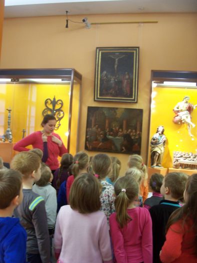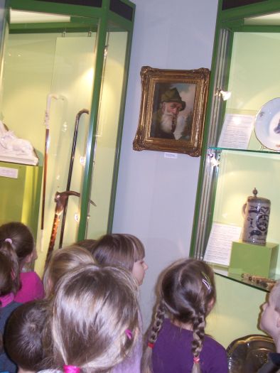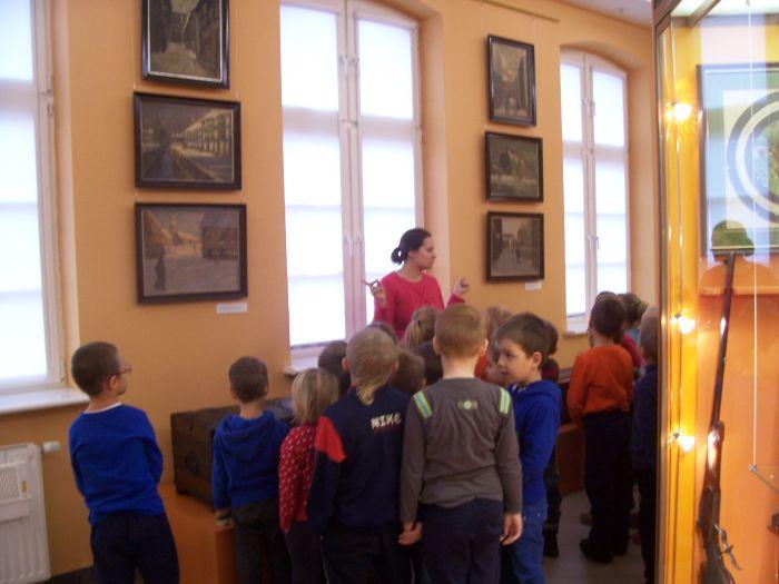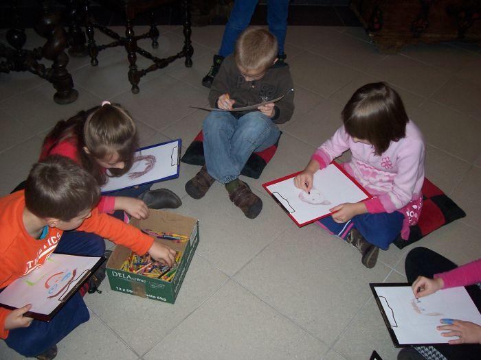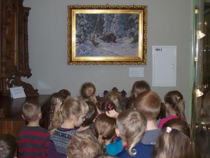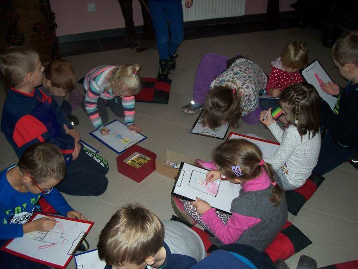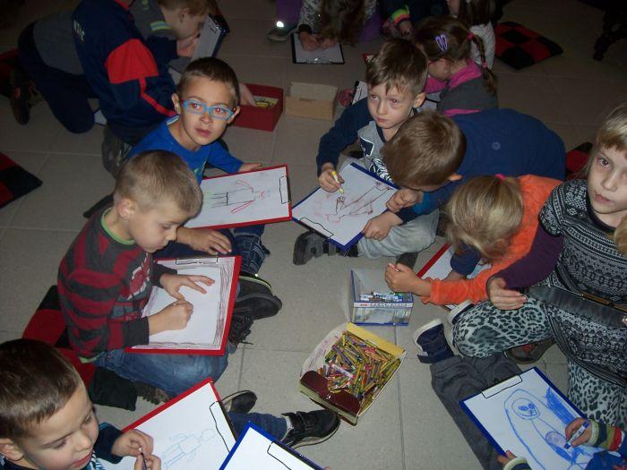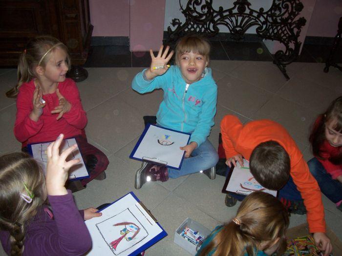 Na kolejnej lekcji muzealnej 6 latki poznawały różnorodne rodzaje obrazów. Wypowiadały się na temat ich treści. Podsumowując każde dziecko narysowało autoportret.