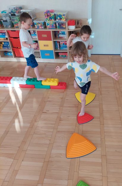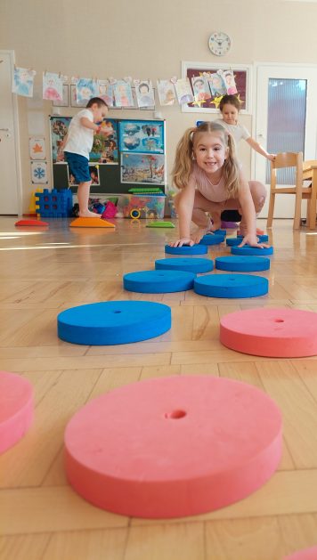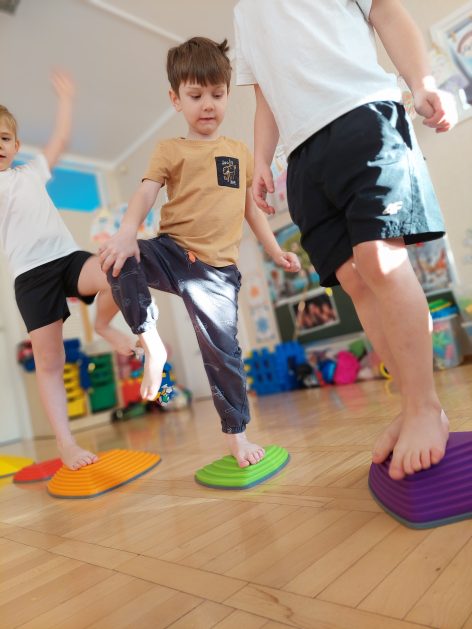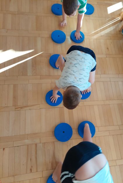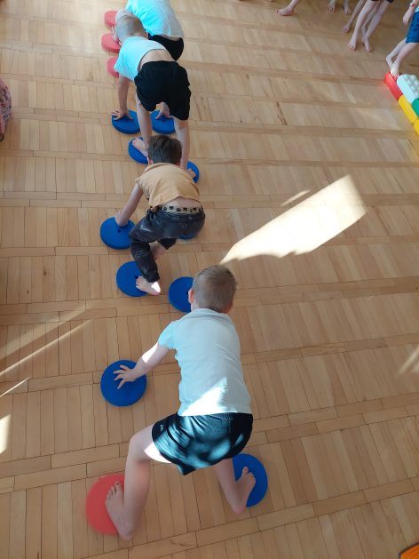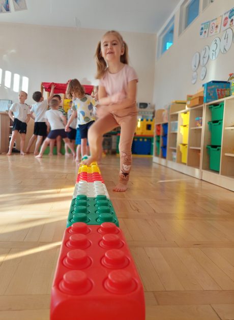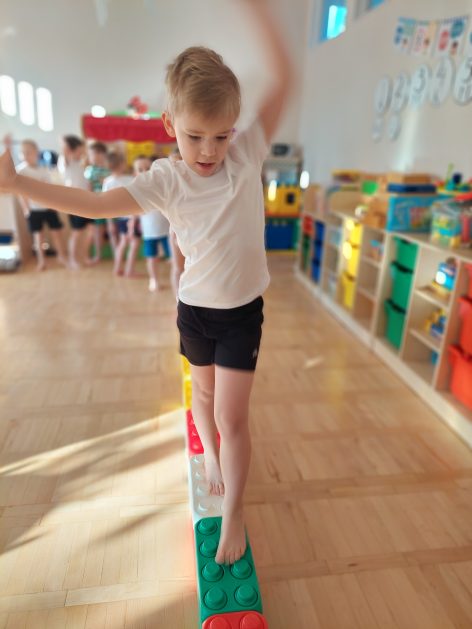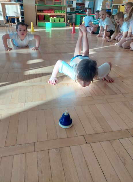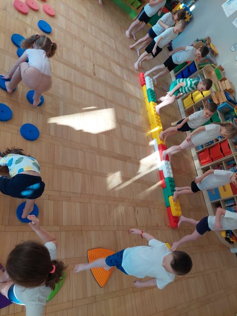 5 latki „A” ruch uwielbiają! Zabawy i ćwiczenia różne wymyślają. Są one dla nas radosnym, spontanicznym działaniem, które rozwija wrażenia i spostrzeżenia, wzbogaca nasze doświadczenia, wyobraźnię, pojęcia, kształci pamięć, uwagę i myślenie, czyli poprawia nasze samopoczucie i zdrowie, a także pobudza i stymuluje nas do podejmowania nowych wyzwań.