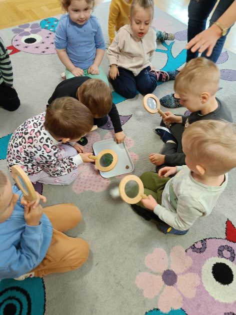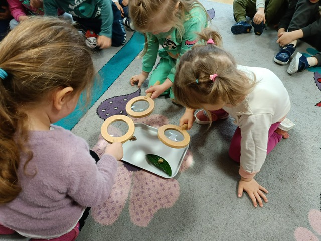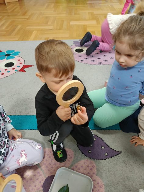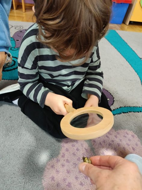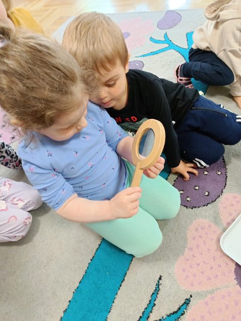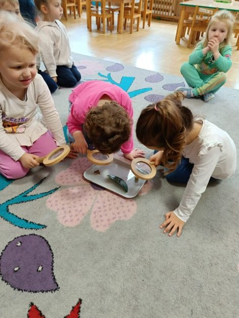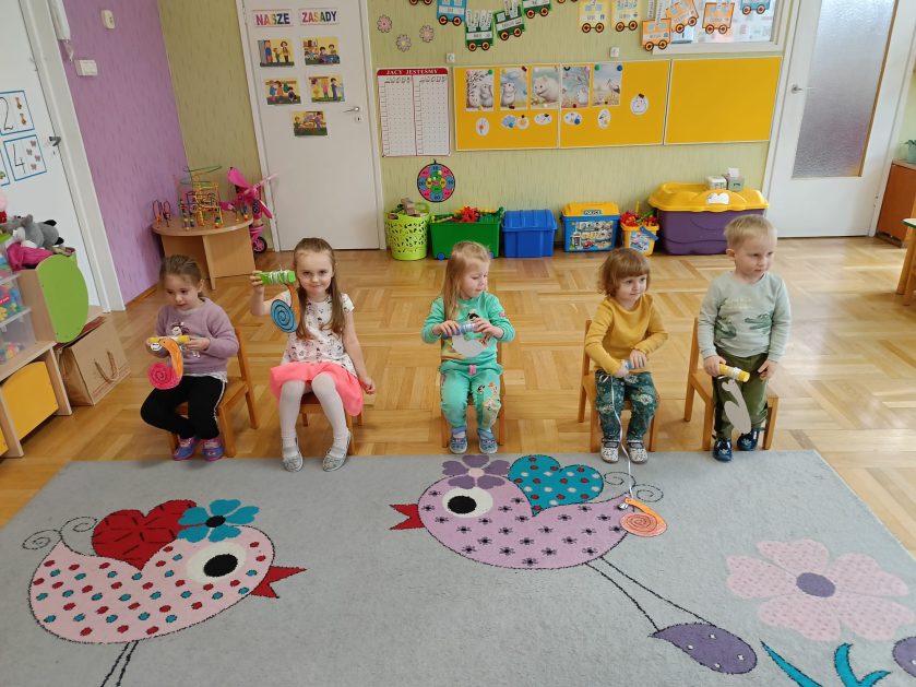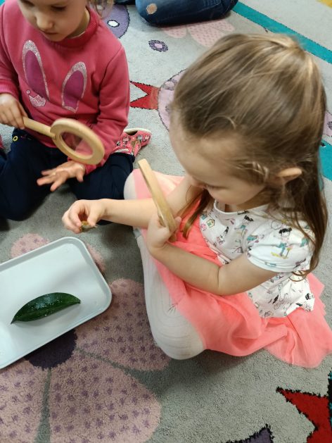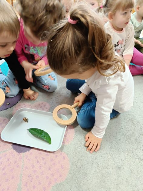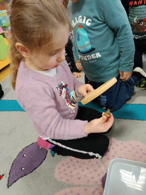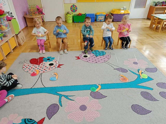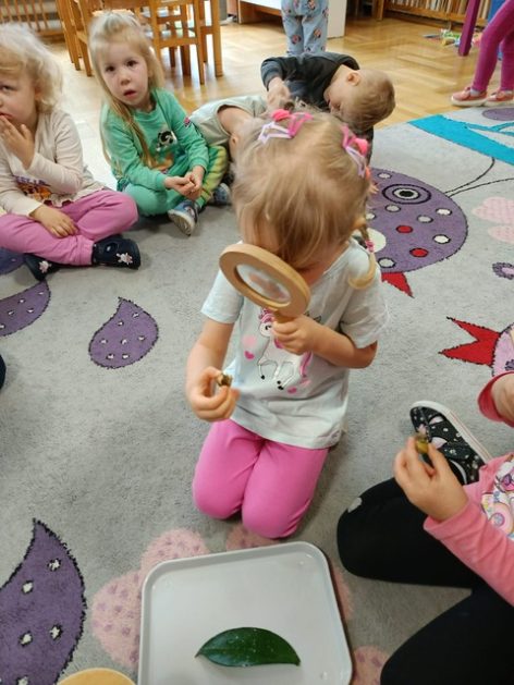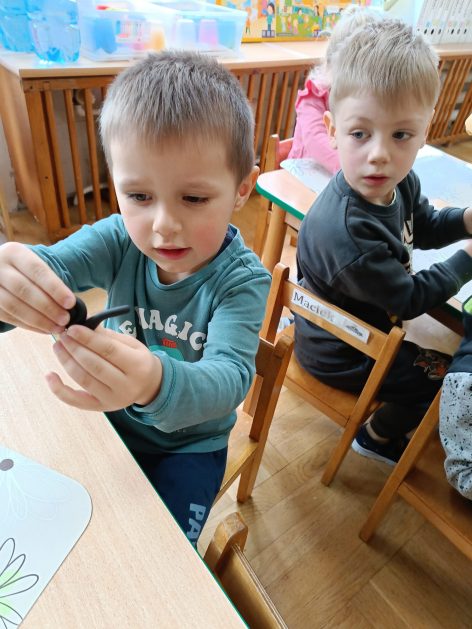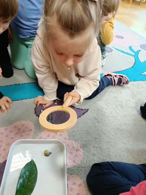Nasze przedszkole otacza przepiękna przyroda, która jest domem wielu małych zwierzaczków. Idąc rano do przedszkola Hania z maluszków spotkała ślimaczki. Pełna entuzjazmu zabrała gości do sali. Zna je niemal każdy, często spotykane na trawnikach, w przydomowych ogródkach – ślimaki są częścią naszego życia. Dzieci znają też rymowankę „ślimak, ślimak wystaw rogi, dam ci sera na pierogi”. Jednak czy faktycznie dobrze znamy te sympatyczne zwierzątka, no i czy naprawdę jedzą pierogi z serem? Dzieci mogły z bliska przyjrzeć się tym mięczakom. Kontakt z naturą, żywymi zwierzętami zawsze jest niezwykle cenny i pouczający dla dzieci, które dopiero poznają świat wokół siebie. Wizyta ślimaków była również okazją do zorganizowania zajęć plastycznych dla dzieci.