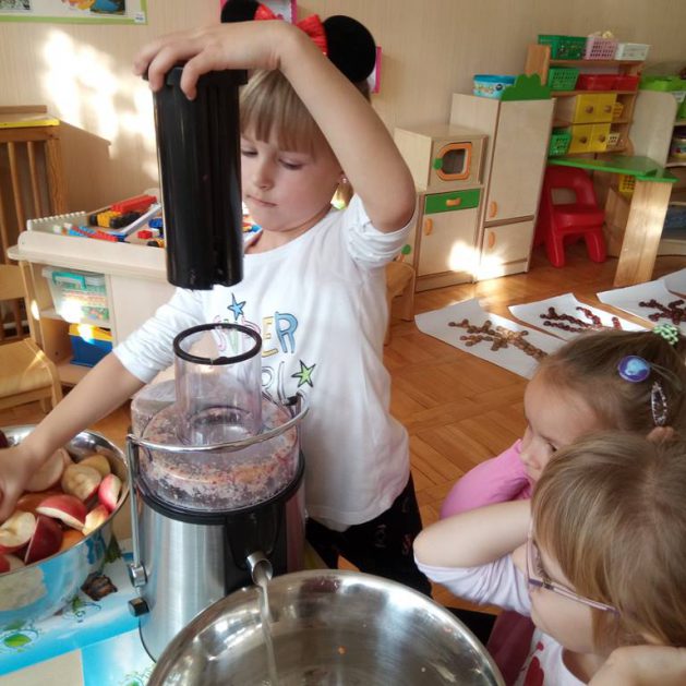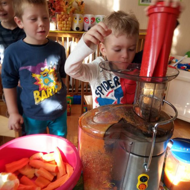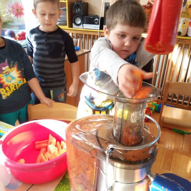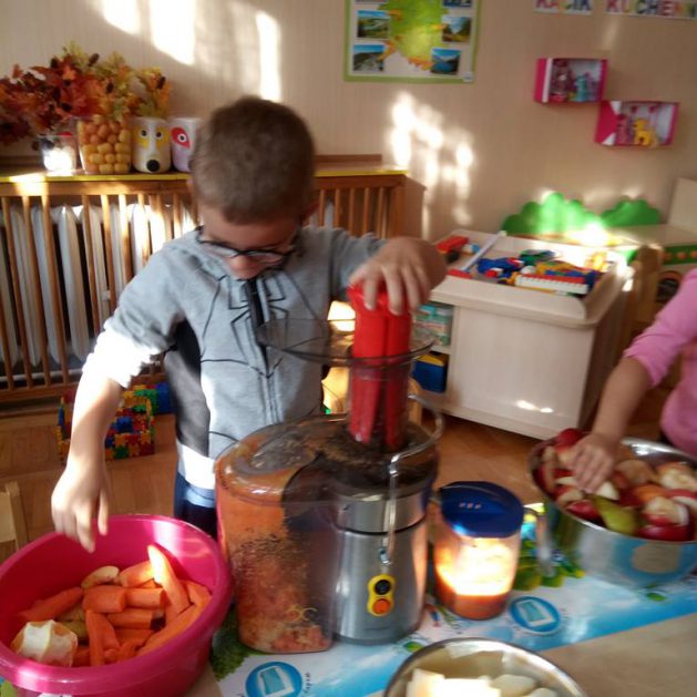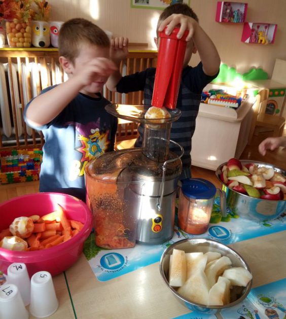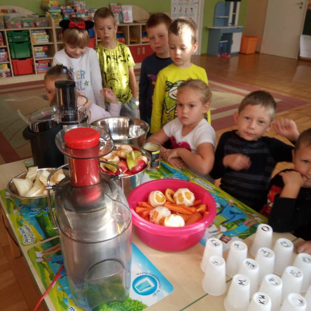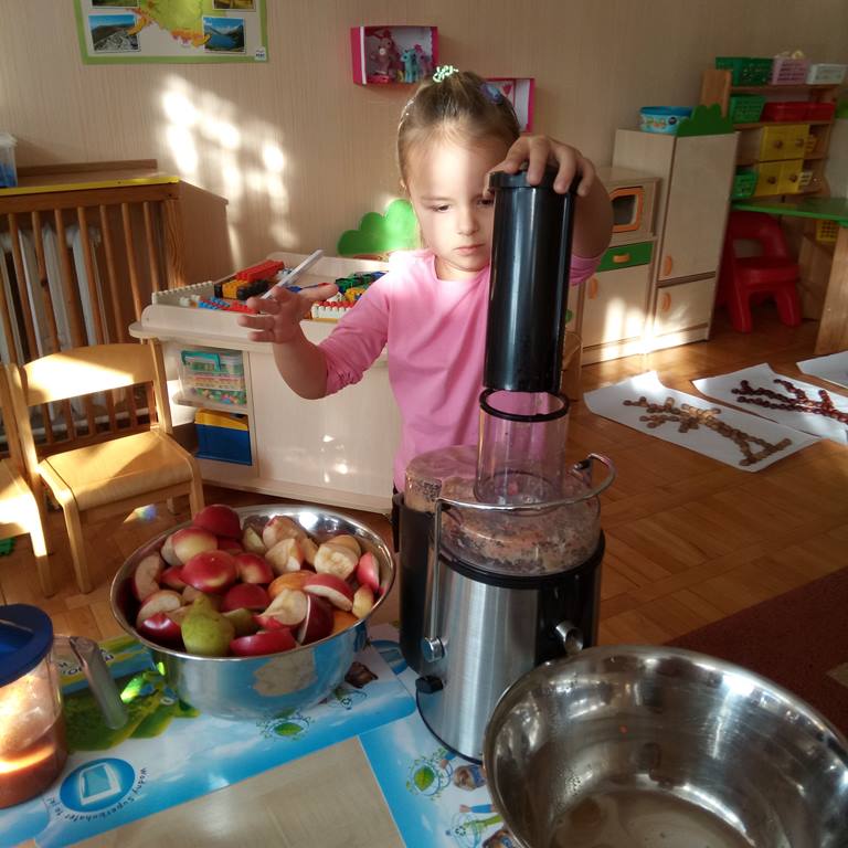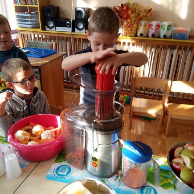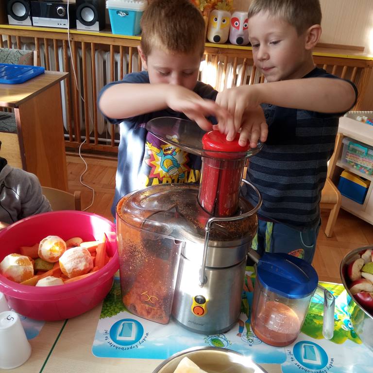O tym już wiedzą 5 latki, bowiem już drugi rok same wykonują soki owocowe. Takie zajęcia sprawiają dzieciom dużo radości i satysfakcji, ponieważ samodzielne wykonane soki smakują lepiej. Mimo, iż niektóre dzieci nie lubią zjadać świeżych owoców czy warzyw soki wypijają do dna, więc każdy sposób jest dobry – na zdrowie!