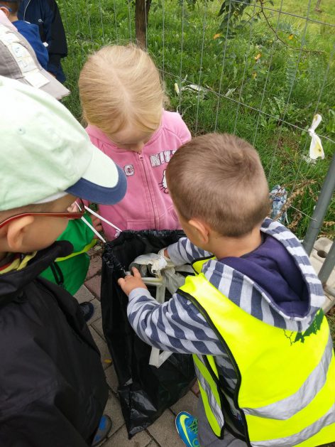 Już od wielu lat nasze przedszkole bierze udział w ogólnopolskiej akcji „Sprzątanie świata”. Dnia 19 września nasze przedszkolaki w atmosferze emocjonalnego zaangażowania uczestniczyły w akcji i sprzątając odpadki, śmieci w najbliższej okolicy przedszkola.