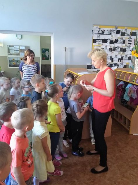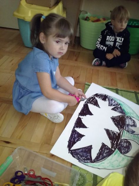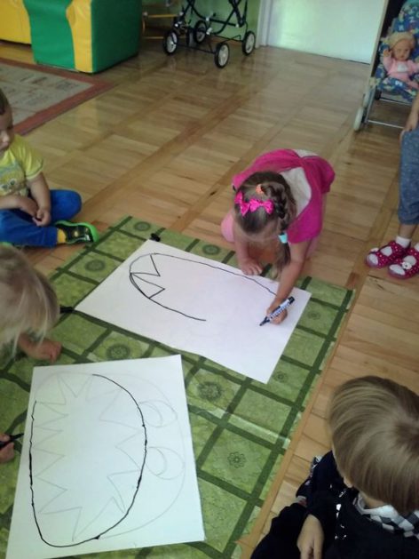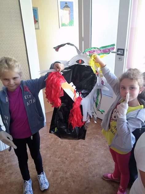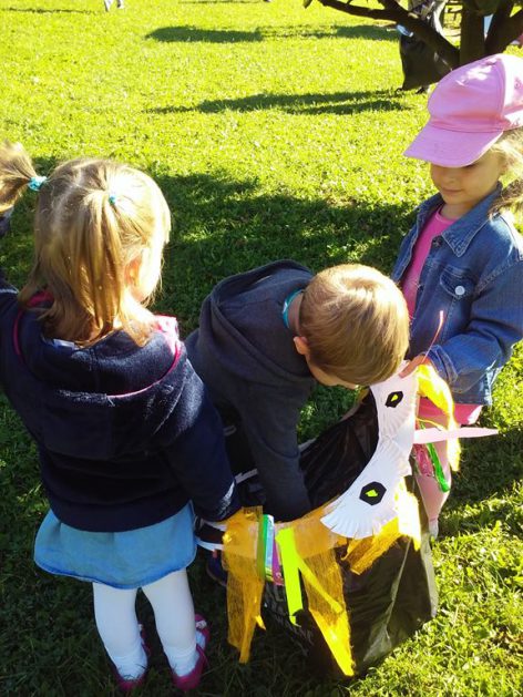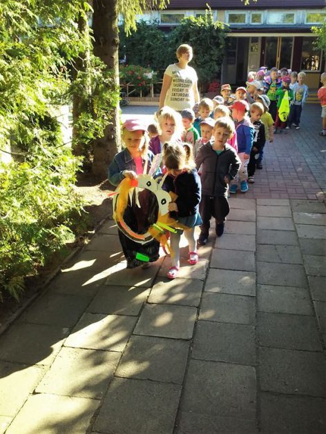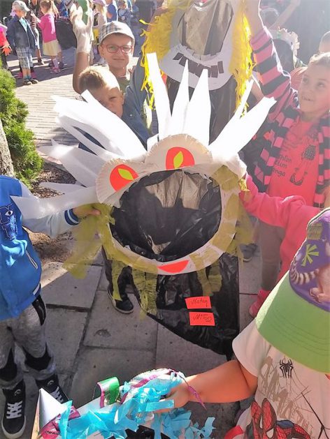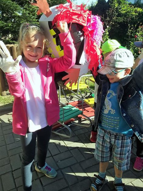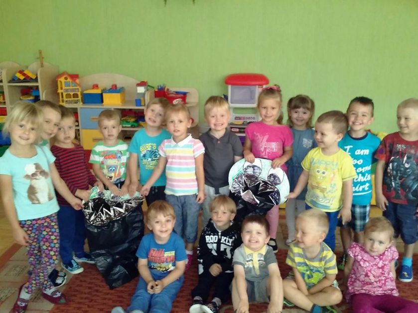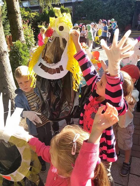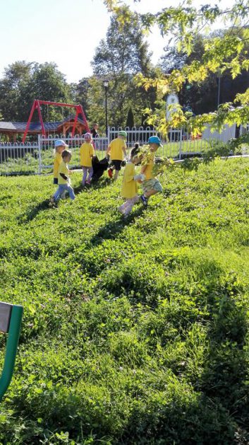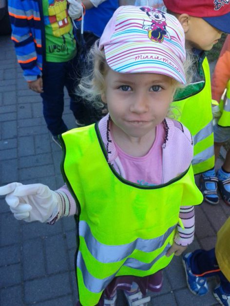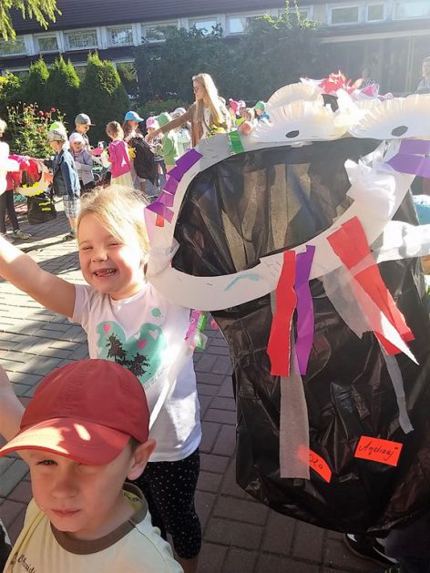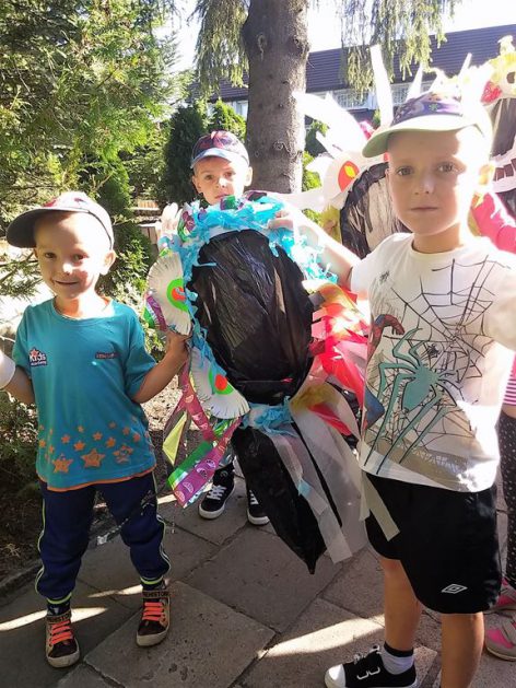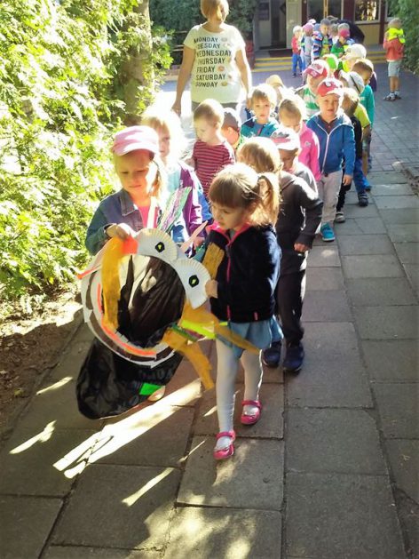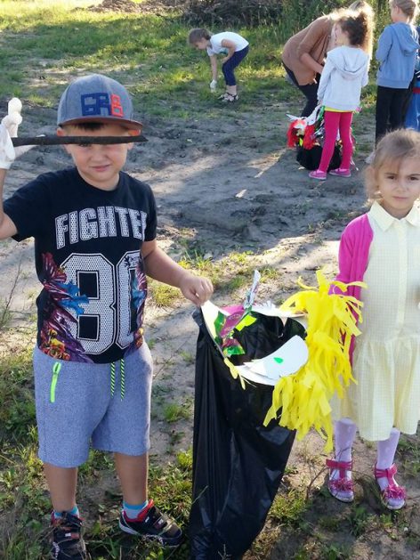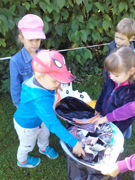 Przyroda woła o pomoc – 5 i 6 latki są gotowe, gdyż oficjalnie 16 września wstąpiły do Ligii Ochrony Przyrody. Nasze przedszkolaki zaopatrzone w rękawice, worki – „śmieciojady” ruszyły sprzątać najbliższe otoczenie.