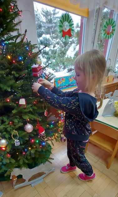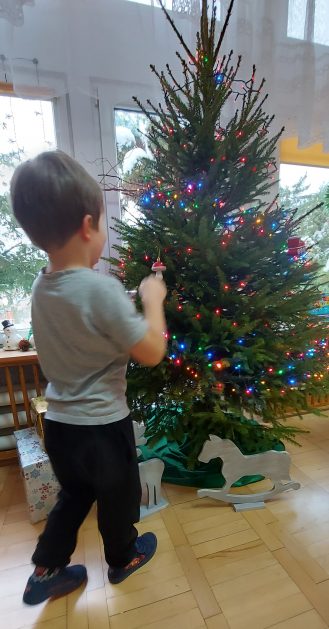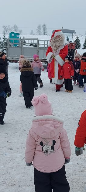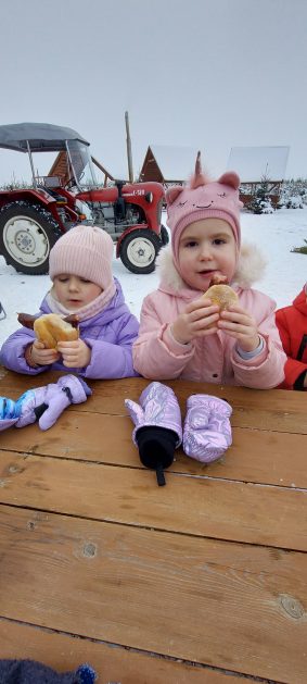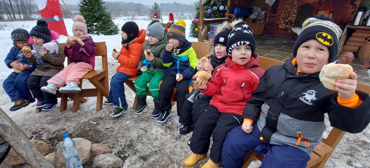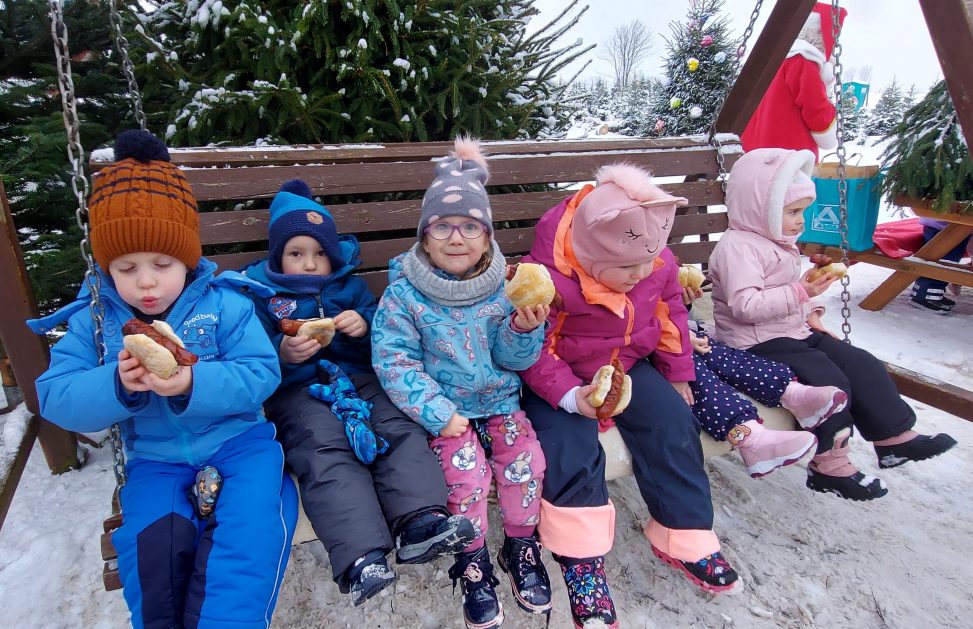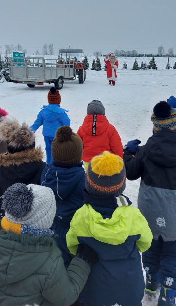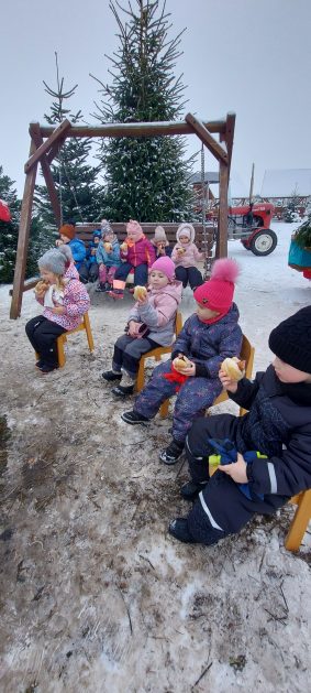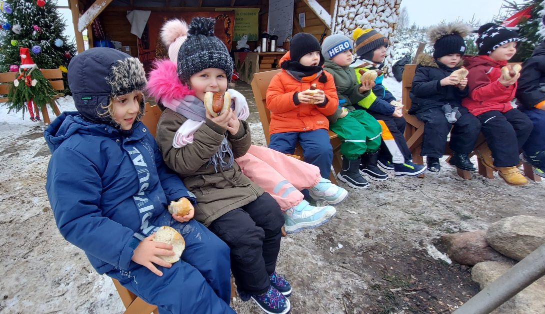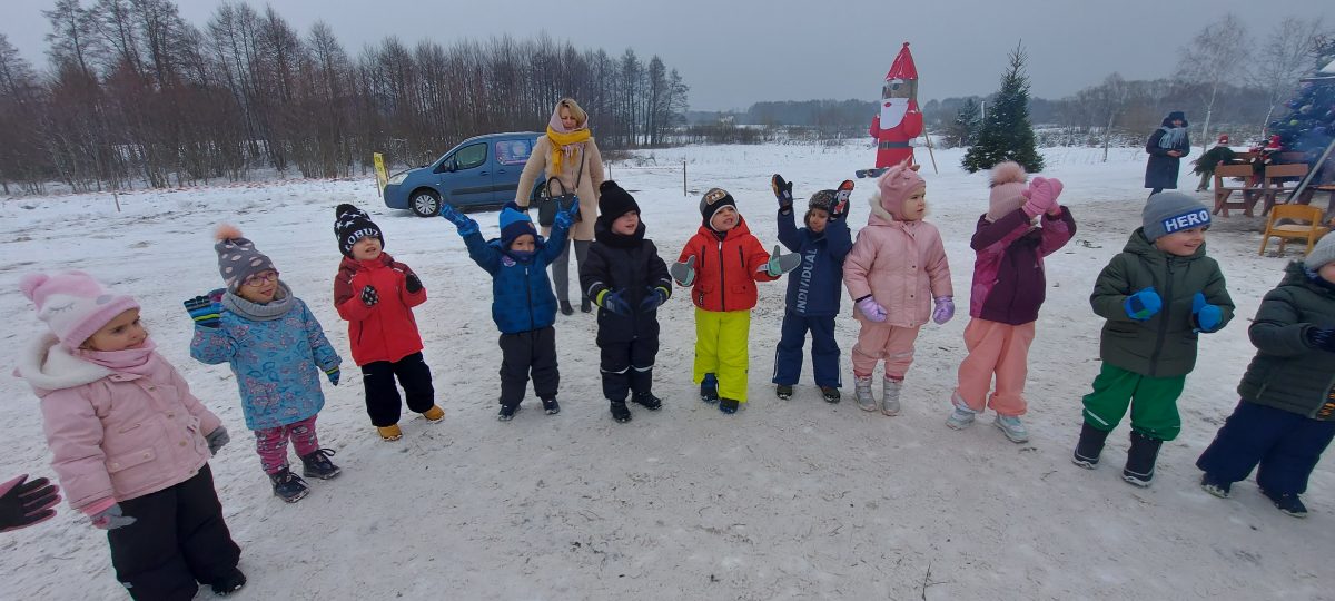 W tym tygodniu 4 latki „K” i „P” skorzystały z zaproszenia Państwa Fil i odwiedziły plantację choinek „Danko” w Wielisławicach, ok. 10km od Szczecinka. Przedszkolaki miały okazję poznać niektóre gatunki rosnących tam drzew iglastych i przejechać się zabytkowym ciągnikiem. Największą atrakcją było jednak szukanie tej najpiękniejszej, wyjątkowej choinki, która ma być ozdobą sali i wraz z dziećmi oczekiwać na Święta Bożego Narodzenia. Choinka wybrana, dzieci zadowolone, zmęczone i głodne…wszystkie z apetytem zjadły kiełbaski z ogniska! Pobyt na plantacji umilił dzieciom Mikołaj i jego Elf.