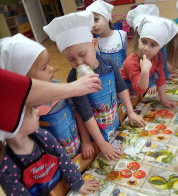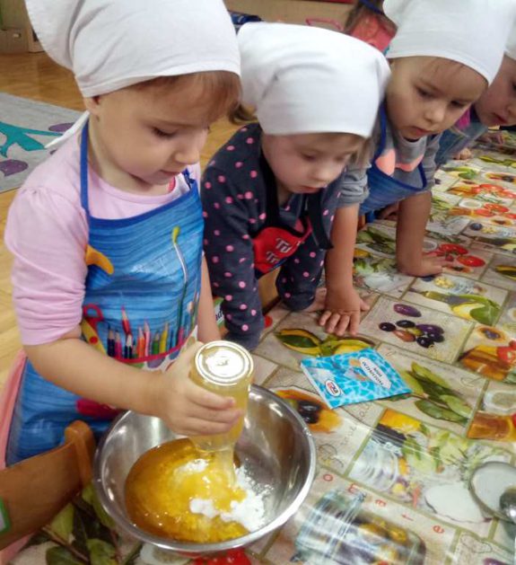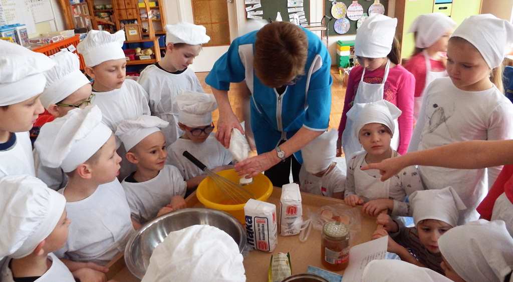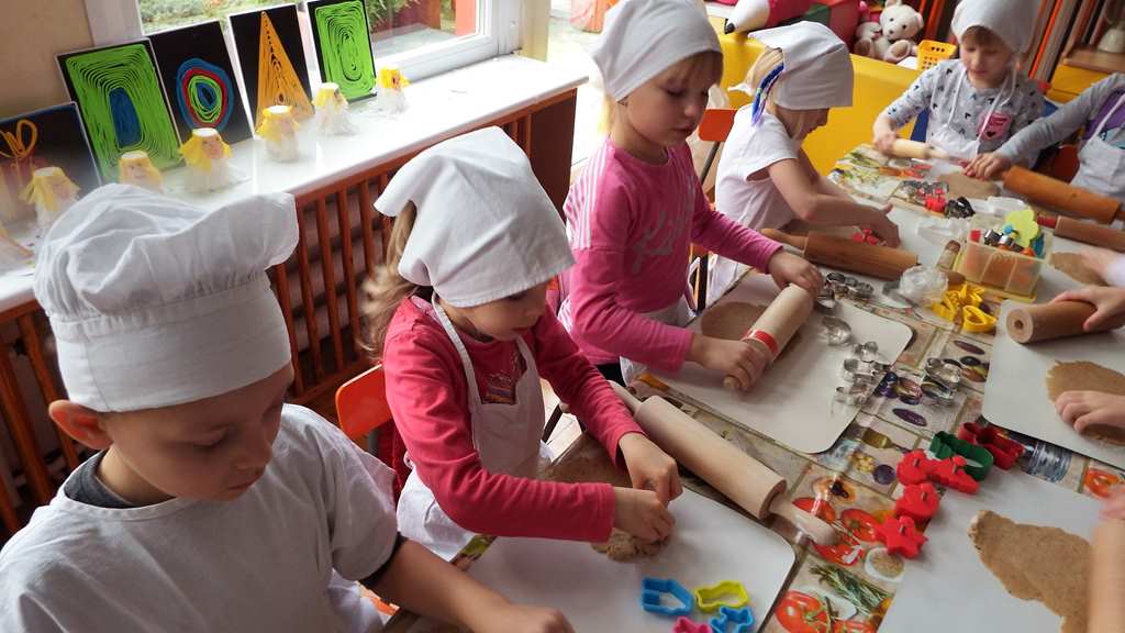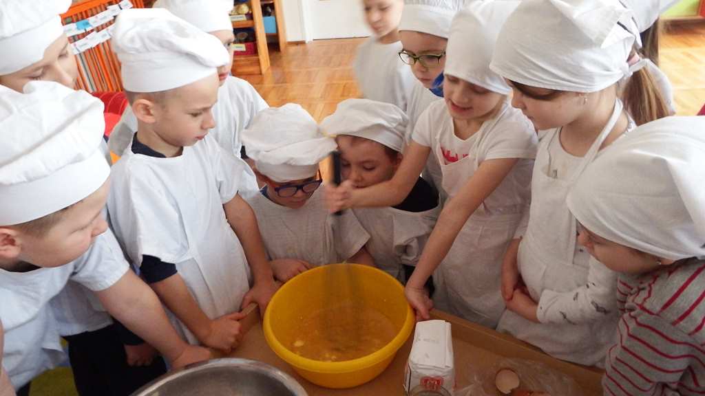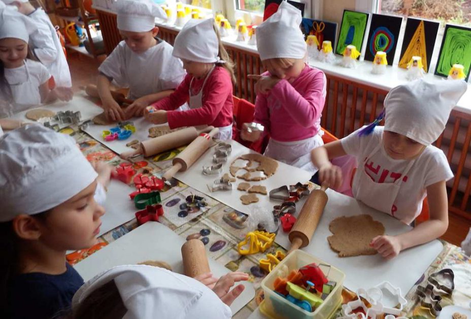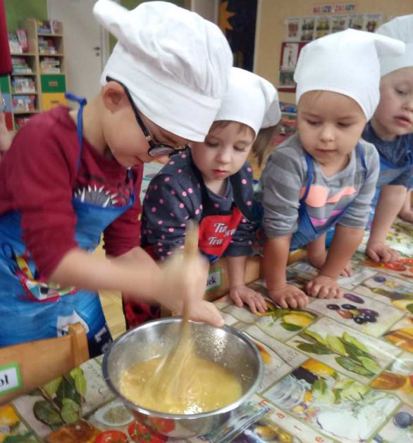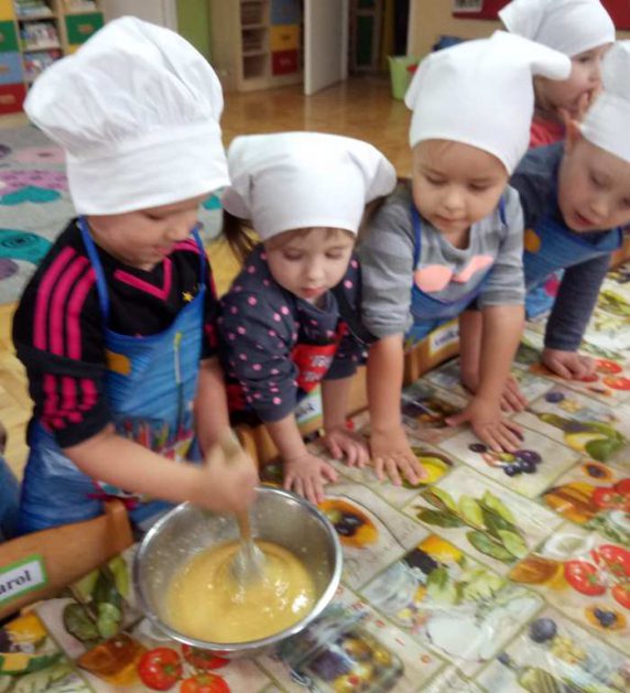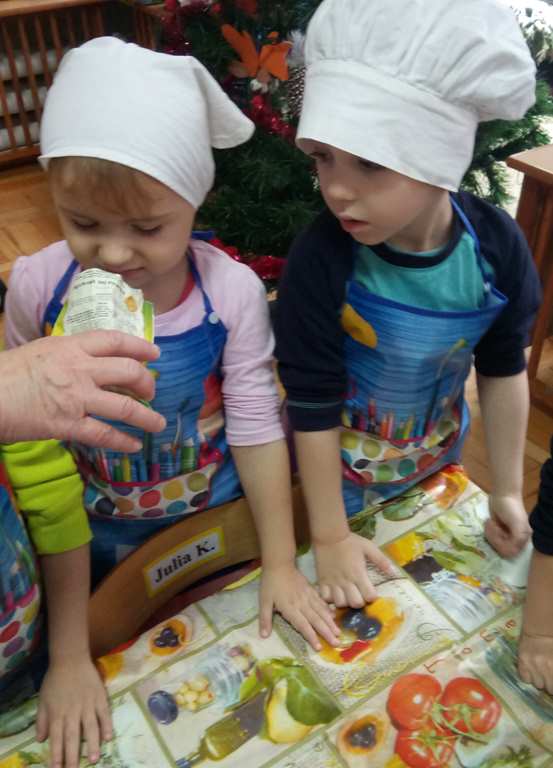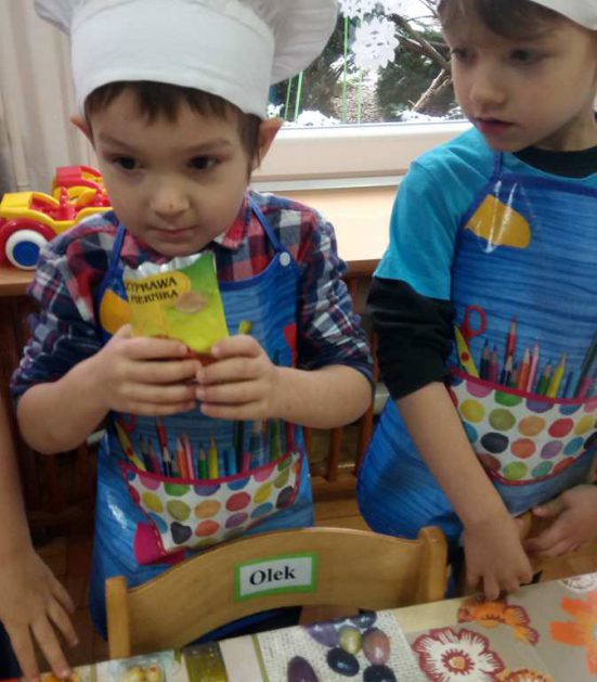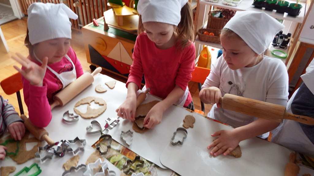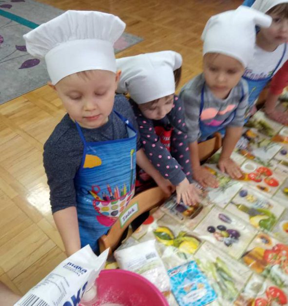 … a wraz z nimi czas na świąteczne wypieki. 4 – latki i starszaki próbowały swoich sił kulinarnych podczas pieczenia ciasteczek piernikowych. Poznały podstawowe składniki, sposoby odmierzania produktów i zapachy, które zawsze będą kojarzyły się ze świętami… przyprawa do pierników: cynamon, goździki, imbir, gałka muszkatołowa, kardamon.