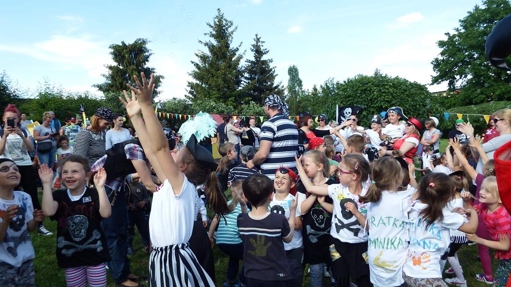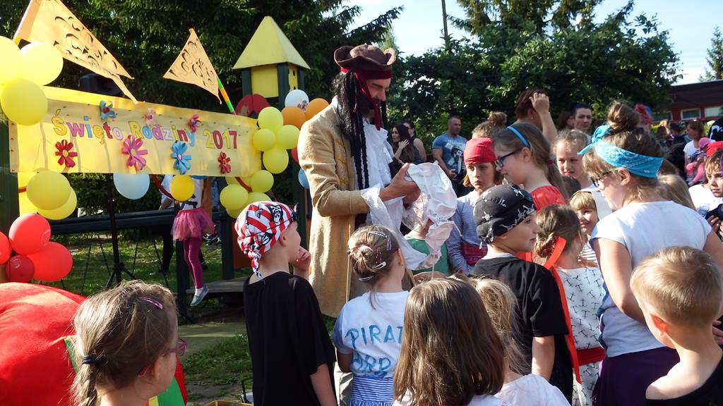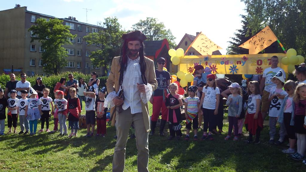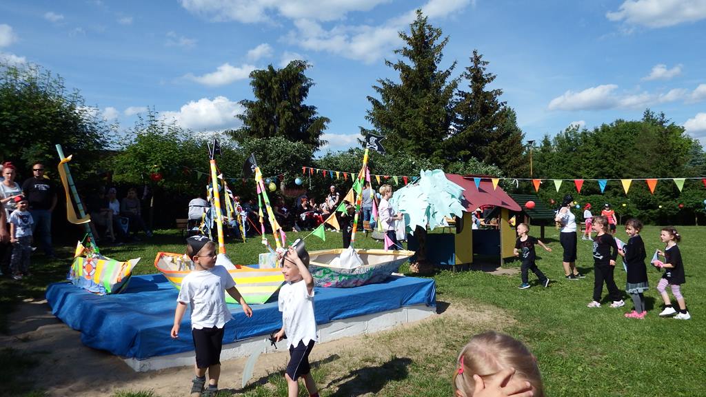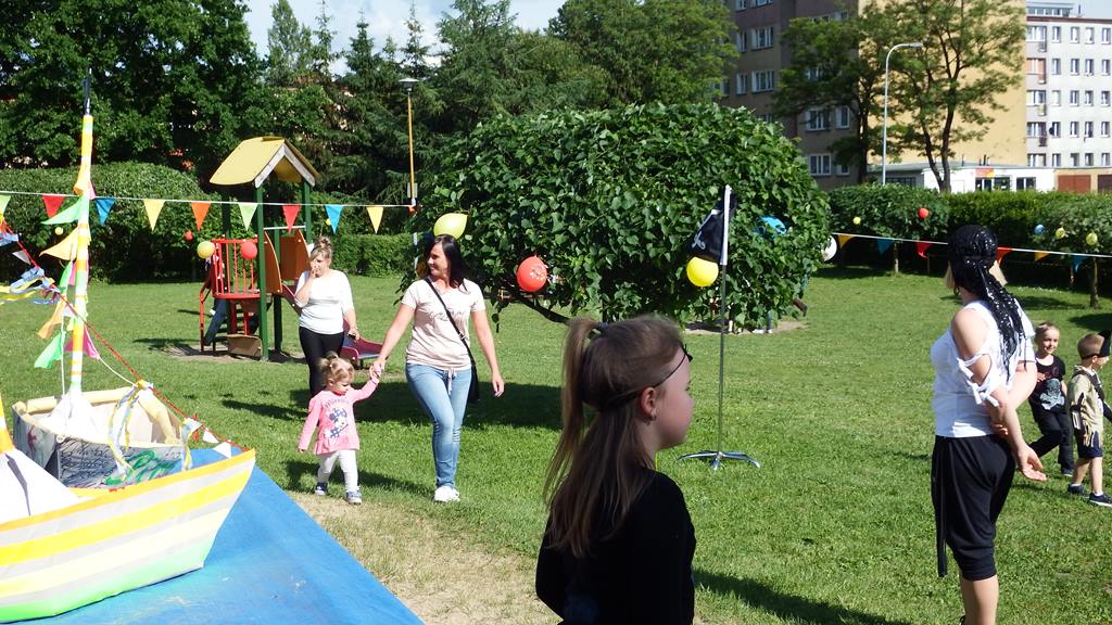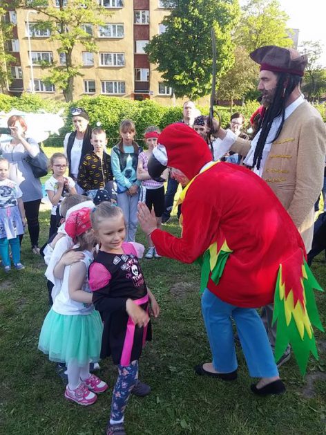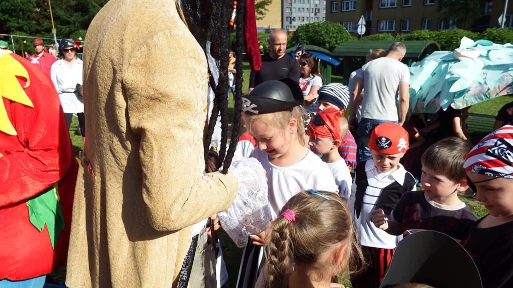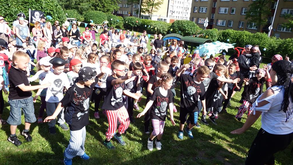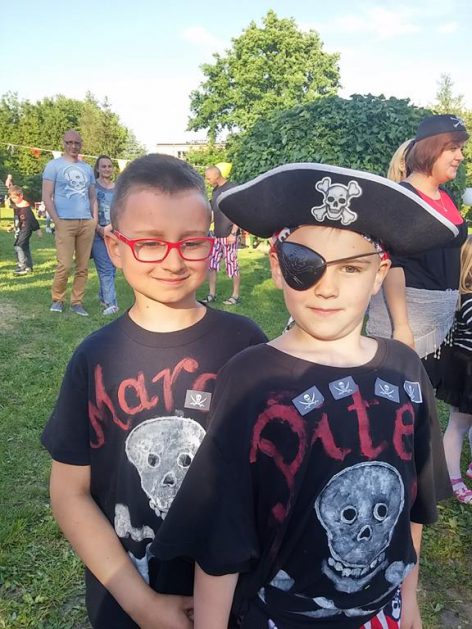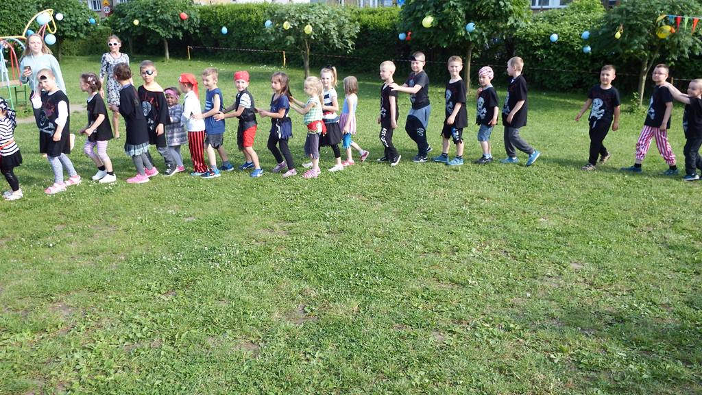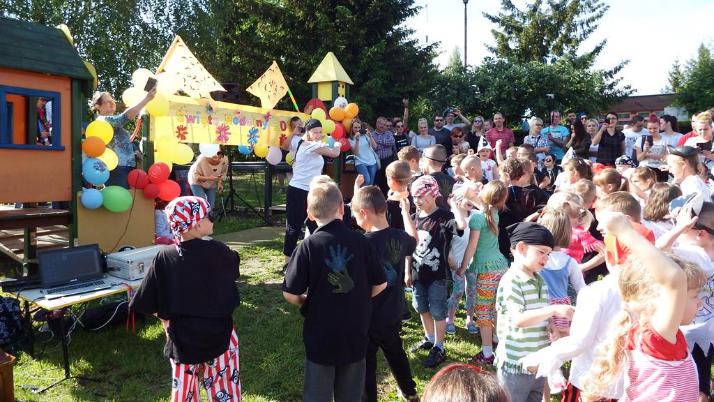 5 czerwca odbył się w naszym przedszkolu piknik rodzinny pod hasłem „Mamo, tato bądź piratem”. Rodzice wraz ze swoimi pociechami przygotowali sobie przebrania, aby wspólnie wyruszyć na wyprawę pod okiem kapitana Haka i Papużki Ary – animatorów z Koszalina. Na początku milusińscy pochwalili się swoimi umiejętnościami artystycznymi, zaśpiewali i złożyli swoim kochanym rodzicom życzenia. Później była zumba i wiele innych atrakcji dla rodziców i dzieci. Kulminacyjnym momentem było ogłoszenie przez Panią dyrektor wyników konkursu czytelniczego w grupach, w ramach akcji Cała Polska Czyta Dzieciom. Gratulacje dla najbardziej zaangażowanych rodziców otrzymali rodzice z grupy pani Hani i Pani Justyny – I miejsce, dla Pani Uli – II miejsce, dla Pani Kasi – III miejsce i IV miejsce – dla Pani Asi.