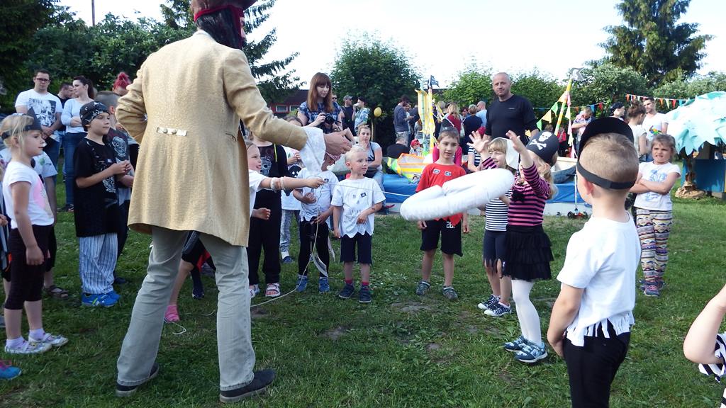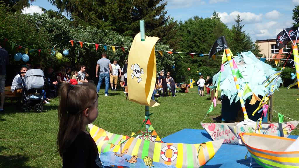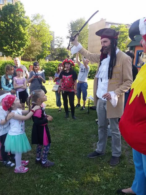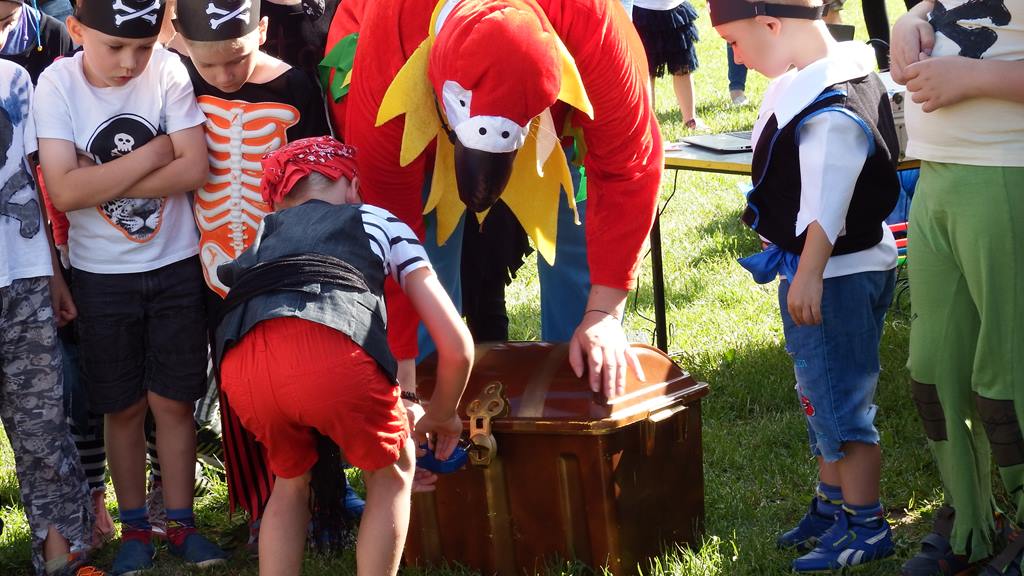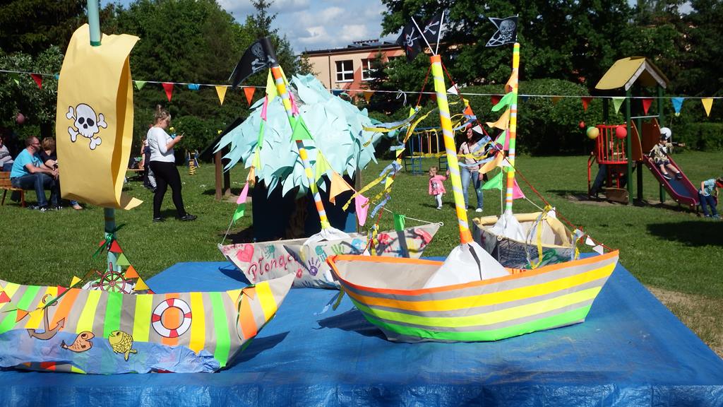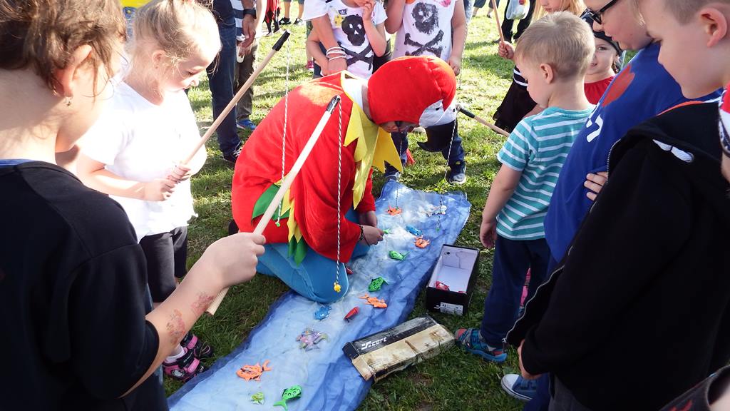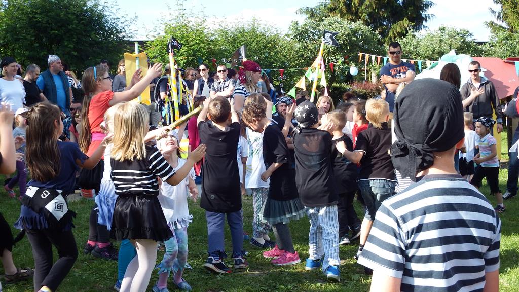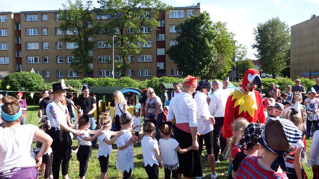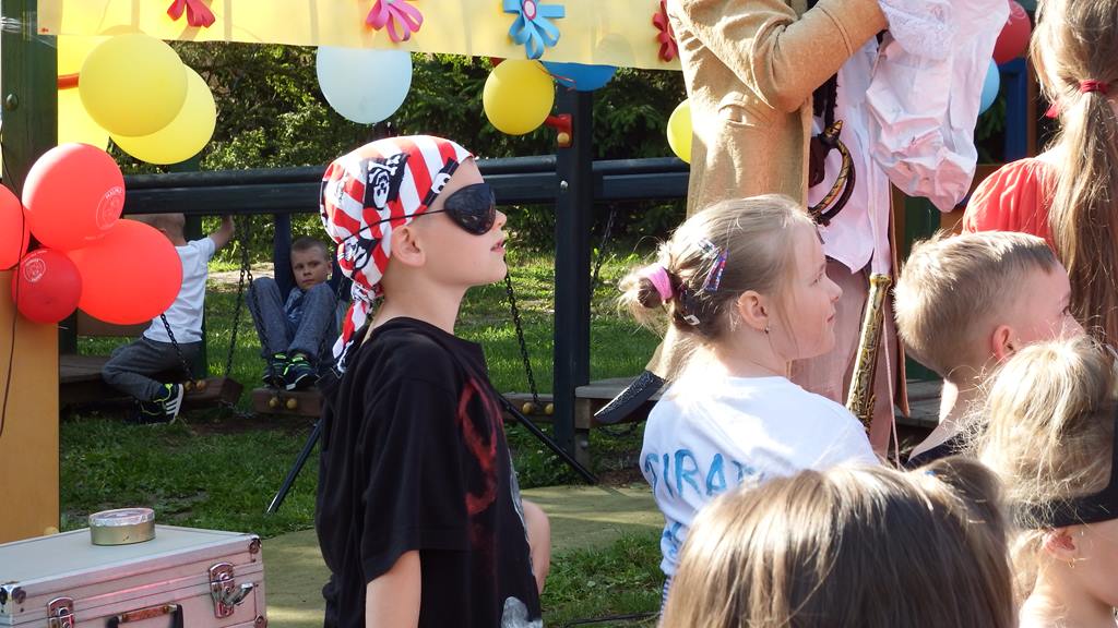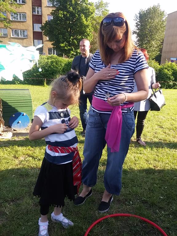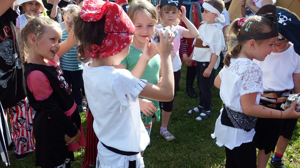 5 czerwca odbył się w naszym przedszkolu piknik rodzinny pod hasłem „Mamo, tato bądź piratem”. Rodzice wraz ze swoimi pociechami przygotowali sobie przebrania, aby wspólnie wyruszyć na wyprawę pod okiem kapitana Haka i Papużki Ary – animatorów z Koszalina. Na początku milusińscy pochwalili się swoimi umiejętnościami artystycznymi, zaśpiewali i złożyli swoim kochanym rodzicom życzenia. Później była zumba i wiele innych atrakcji dla rodziców i dzieci. Kulminacyjnym momentem było ogłoszenie przez Panią dyrektor wyników konkursu czytelniczego w grupach, w ramach akcji Cała Polska Czyta Dzieciom. Gratulacje dla najbardziej zaangażowanych rodziców otrzymali rodzice z grupy pani Hani i Pani Justyny – I miejsce, dla Pani Uli – II miejsce, dla Pani Kasi – III miejsce i IV miejsce – dla Pani Asi.