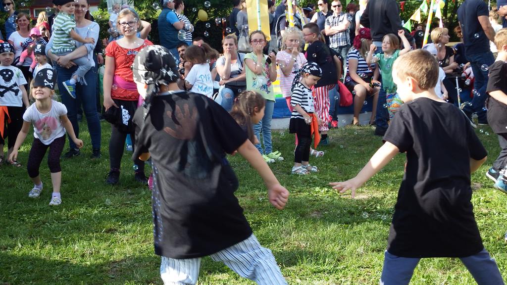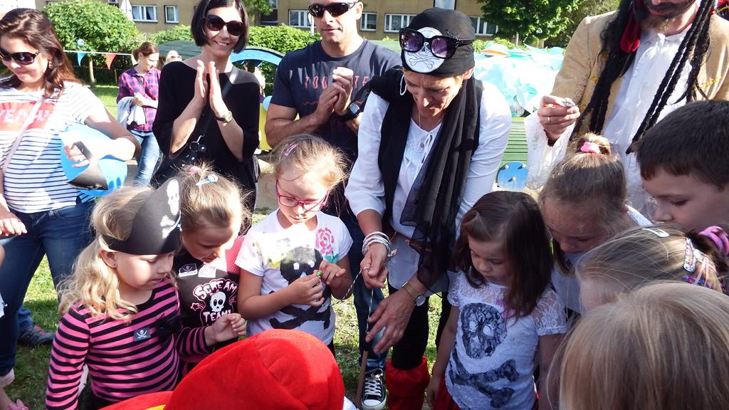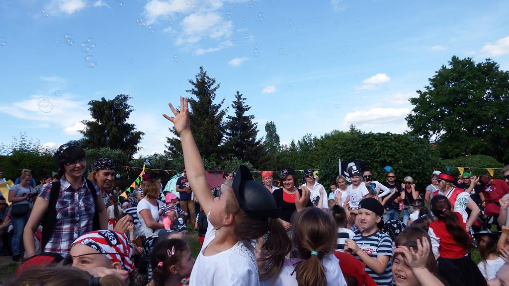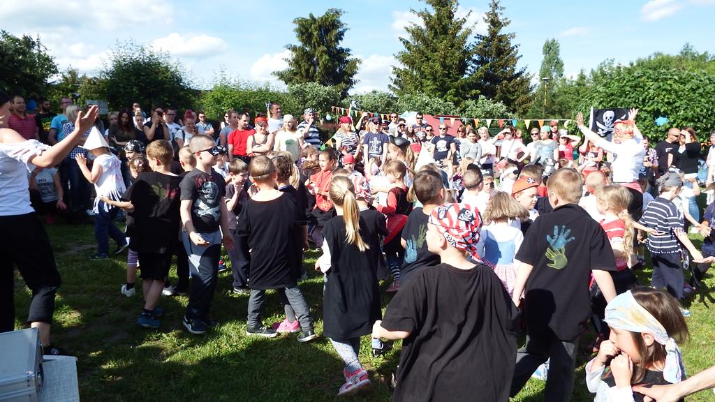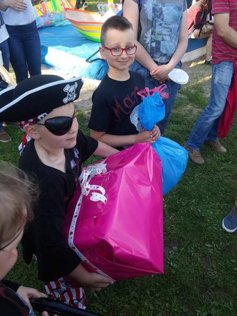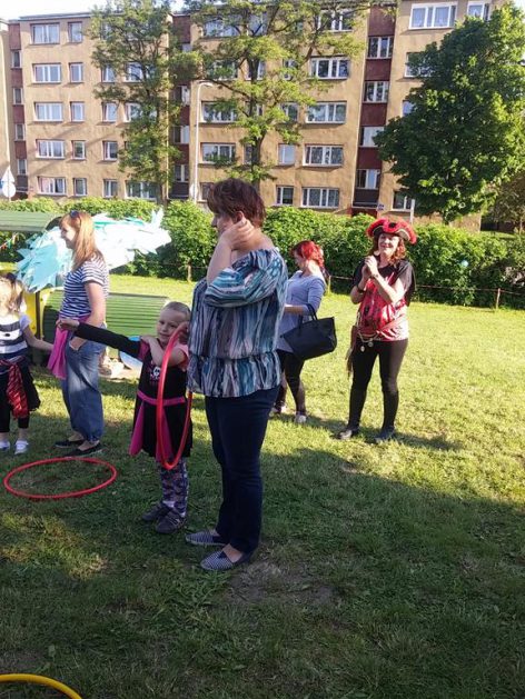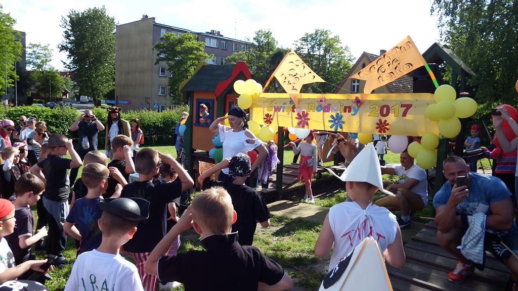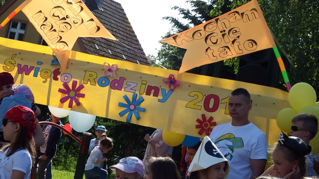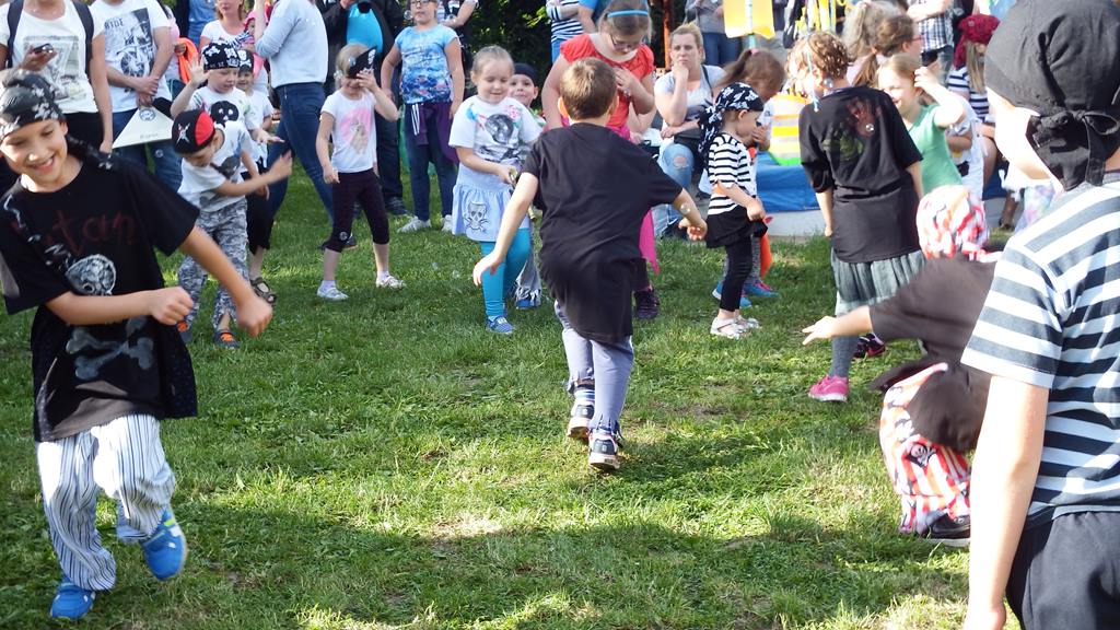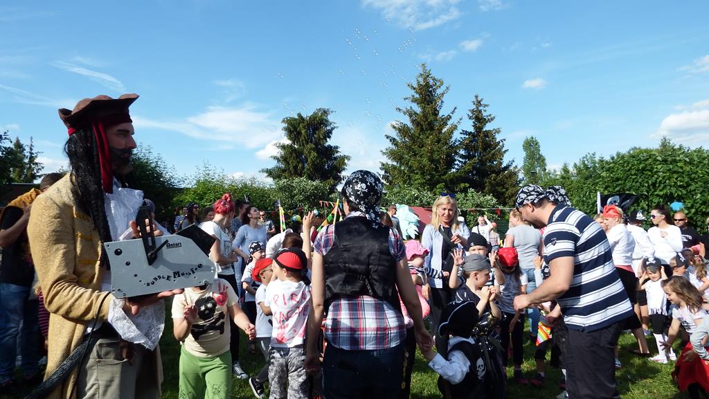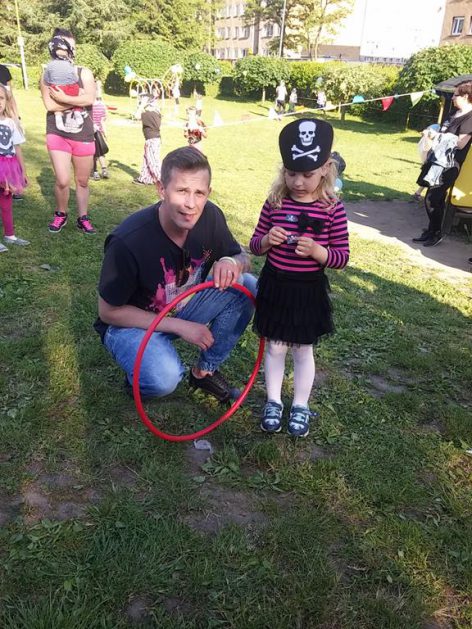 5 czerwca odbył się w naszym przedszkolu piknik rodzinny pod hasłem „Mamo, tato bądź piratem”. Rodzice wraz ze swoimi pociechami przygotowali sobie przebrania, aby wspólnie wyruszyć na wyprawę pod okiem kapitana Haka i Papużki Ary – animatorów z Koszalina. Na początku milusińscy pochwalili się swoimi umiejętnościami artystycznymi, zaśpiewali i złożyli swoim kochanym rodzicom życzenia. Później była zumba i wiele innych atrakcji dla rodziców i dzieci. Kulminacyjnym momentem było ogłoszenie przez Panią dyrektor wyników konkursu czytelniczego w grupach, w ramach akcji Cała Polska Czyta Dzieciom. Gratulacje dla najbardziej zaangażowanych rodziców otrzymali rodzice z grupy pani Hani i Pani Justyny – I miejsce, dla Pani Uli – II miejsce, dla Pani Kasi – III miejsce i IV miejsce – dla Pani Asi.