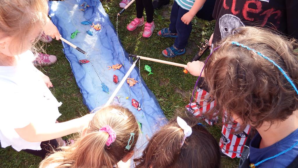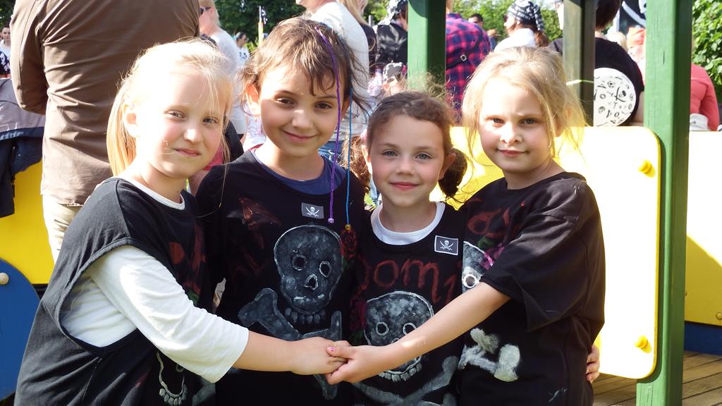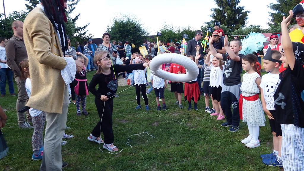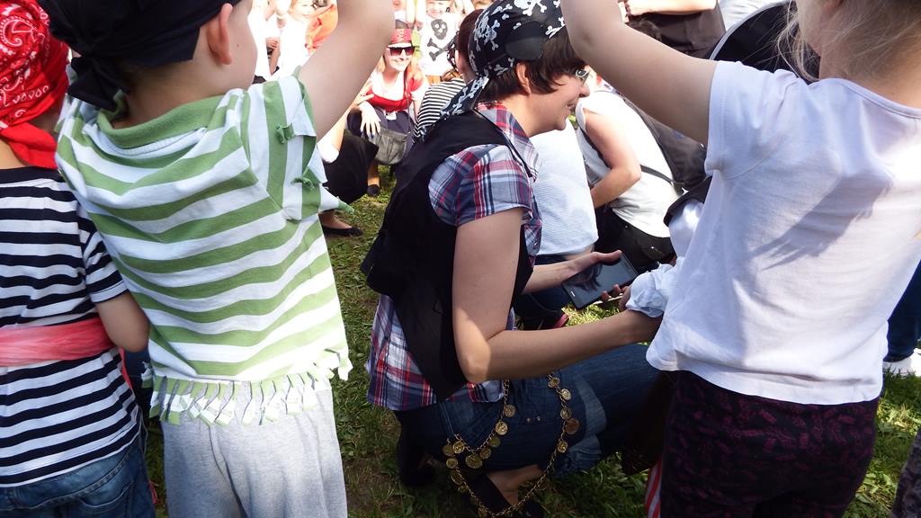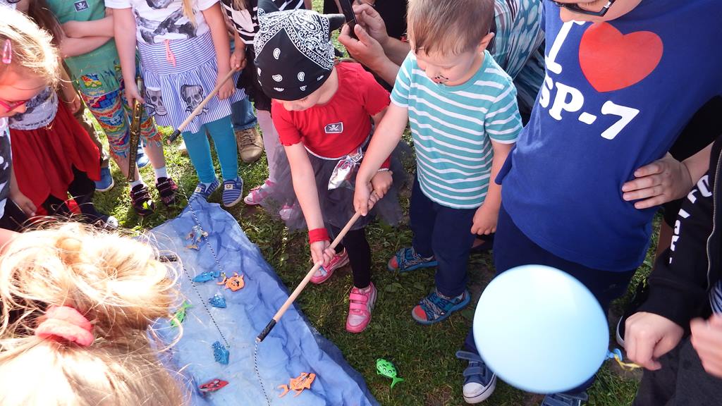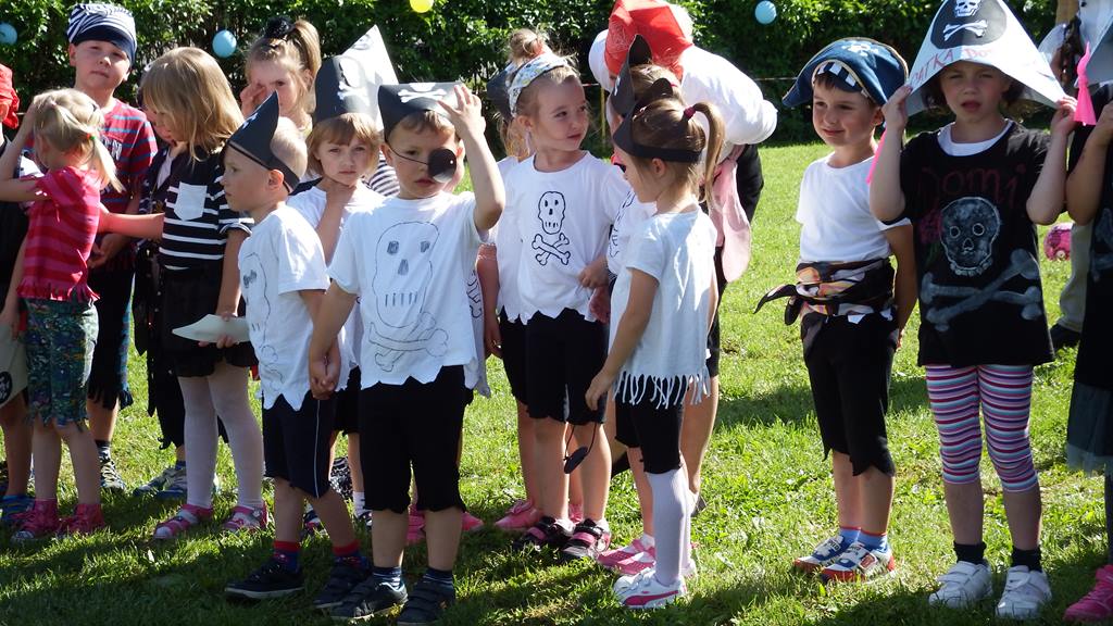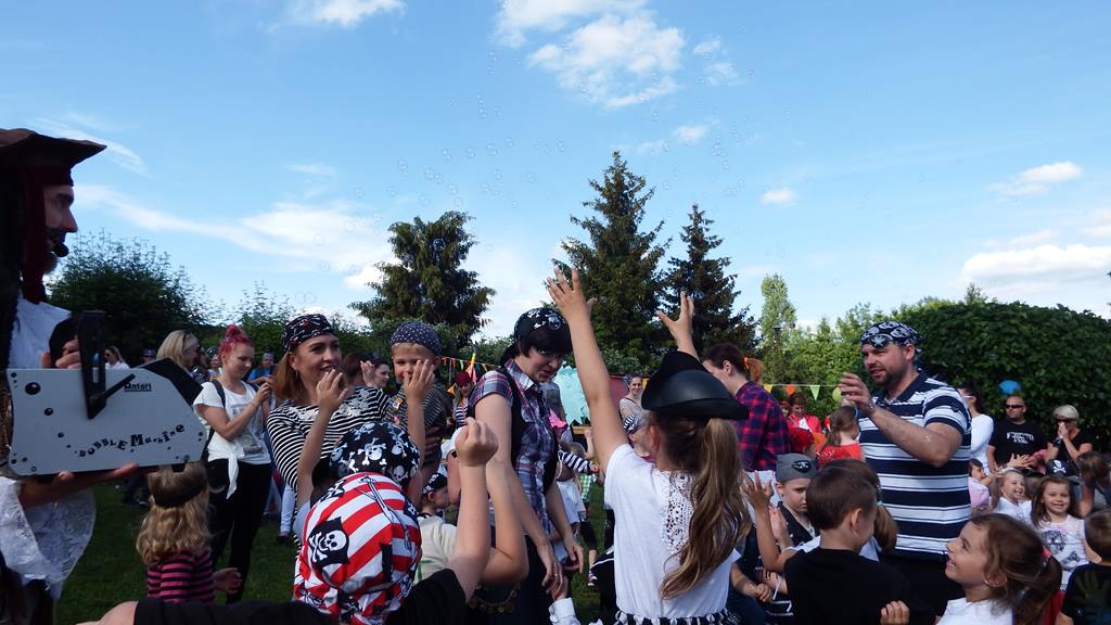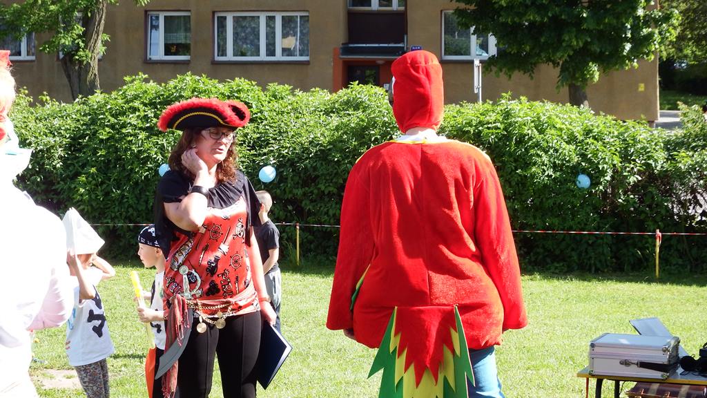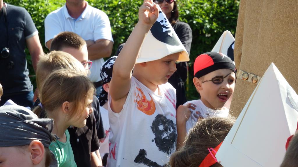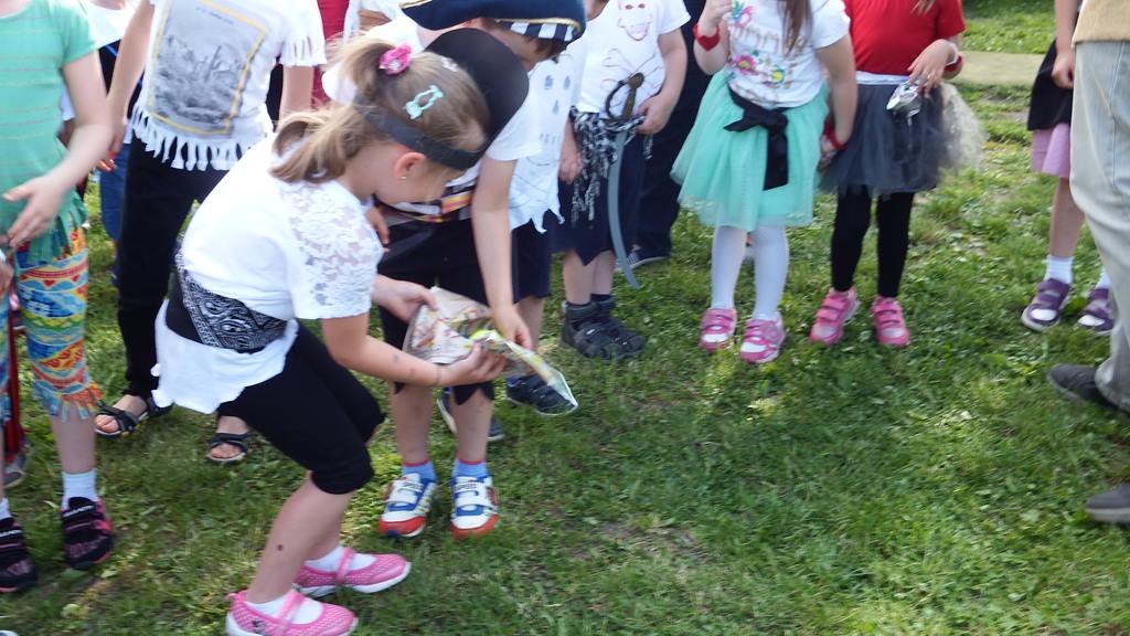 5 czerwca odbył się w naszym przedszkolu piknik rodzinny pod hasłem „Mamo, tato bądź piratem”. Rodzice wraz ze swoimi pociechami przygotowali sobie przebrania, aby wspólnie wyruszyć na wyprawę pod okiem kapitana Haka i Papużki Ary – animatorów z Koszalina. Na początku milusińscy pochwalili się swoimi umiejętnościami artystycznymi, zaśpiewali i złożyli swoim kochanym rodzicom życzenia. Później była zumba i wiele innych atrakcji dla rodziców i dzieci. Kulminacyjnym momentem było ogłoszenie przez Panią dyrektor wyników konkursu czytelniczego w grupach, w ramach akcji Cała Polska Czyta Dzieciom. Gratulacje dla najbardziej zaangażowanych rodziców otrzymali rodzice z grupy pani Hani i Pani Justyny – I miejsce, dla Pani Uli – II miejsce, dla Pani Kasi – III miejsce i IV miejsce – dla Pani Asi.