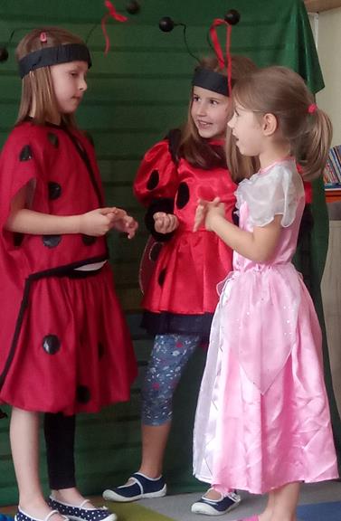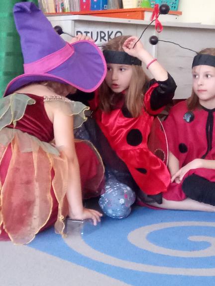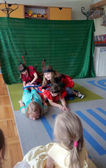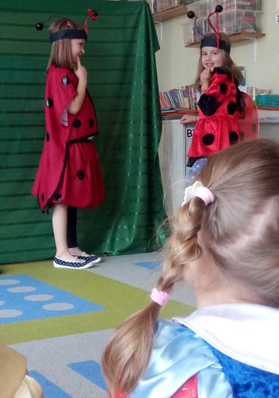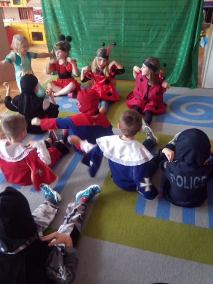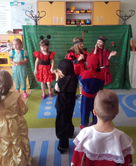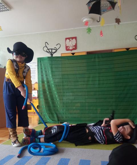 Inspiracją do teatralnych zabaw dla dzieci są książki, bajki czytane wspólnie czy indywidualnie przez niektóre dzieci. Wystarczyło tylko udostępnić stroje, rekwizyty i ….wyobraźnia zadziałała. Dzieci ekspresyjnie wyrażały swoją osobowość, swoją wiedzę, emocje. Odgrywane scenki stworzyły wyjątkową rzeczywistość, w której wszystko mogło się zdarzyć, a dzieci miały okazje realizować swoje marzenia, by stać się kimś innym.