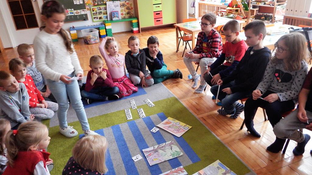 Dzieci ze Szkoły Podstawowej nr 6 regularnie odwiedzają młodszych kolegów i na różne sposoby zachęcają przedszkolaki do czytania. Sześciolatki chętnie biorą udział w takich spotkania uczą się liter, czytania i chcą zaimponować starszym kolegom.